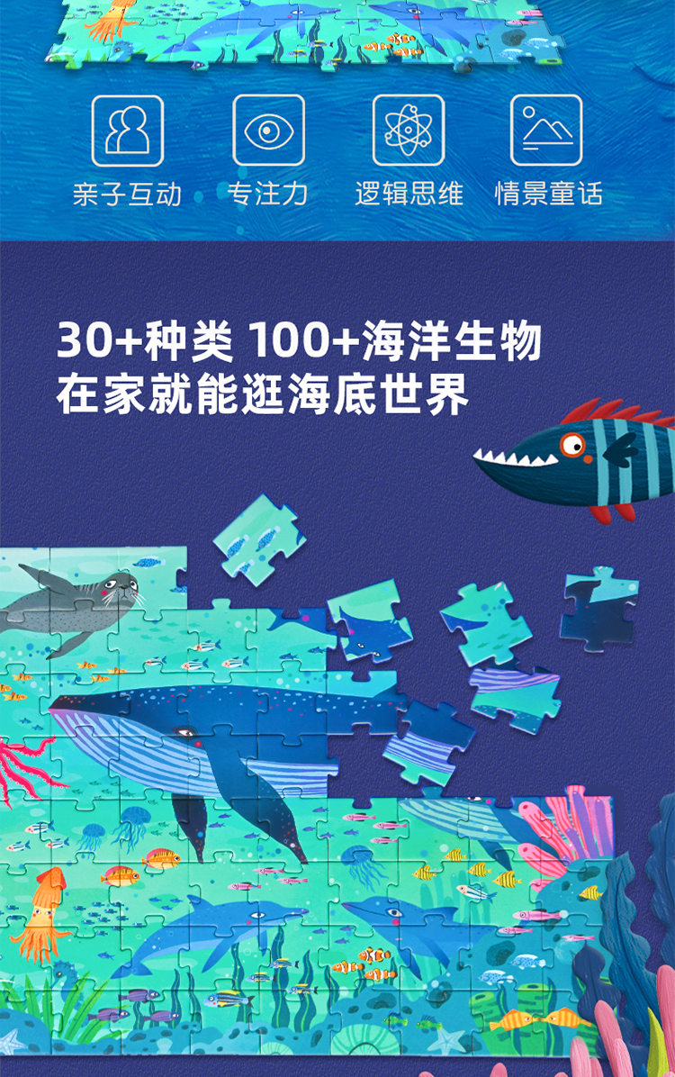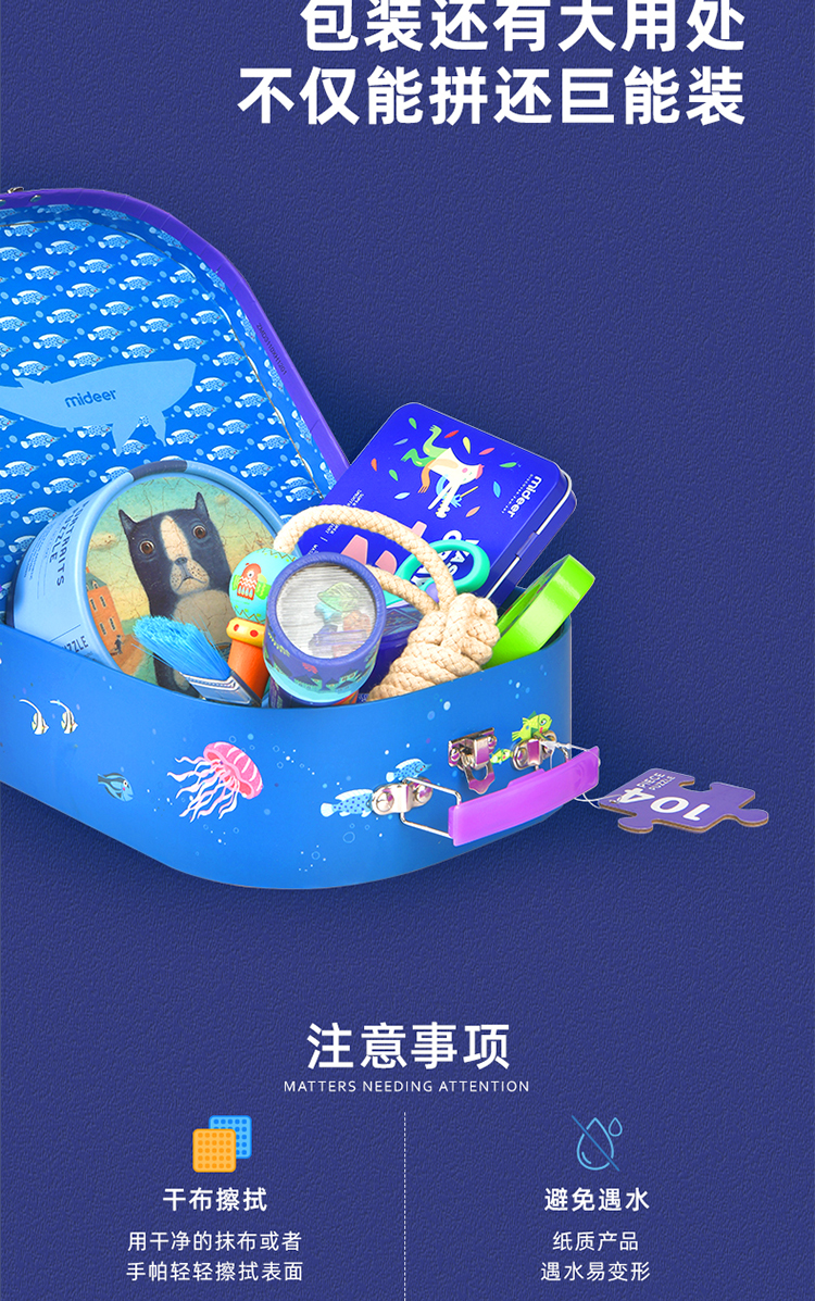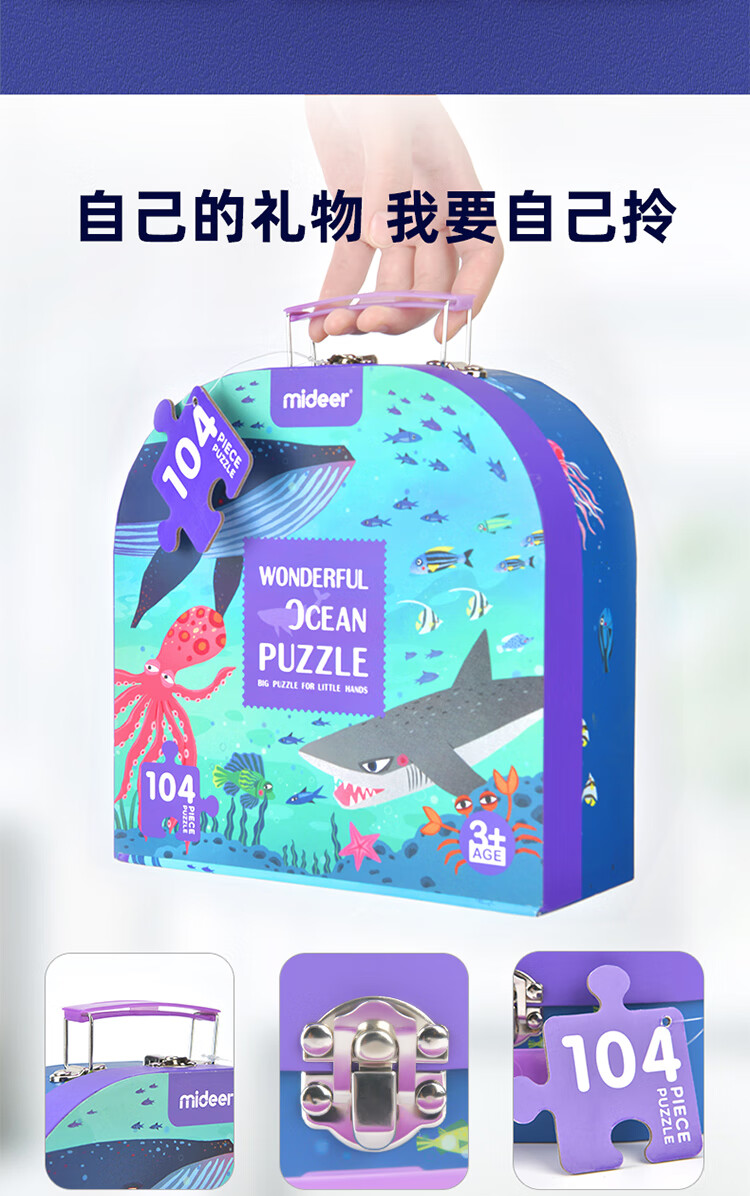 弥鹿(MiDeer)玩具拼图宝宝玩具男女孩礼物3-6岁手提盒拼图-海洋104PCS儿童礼物