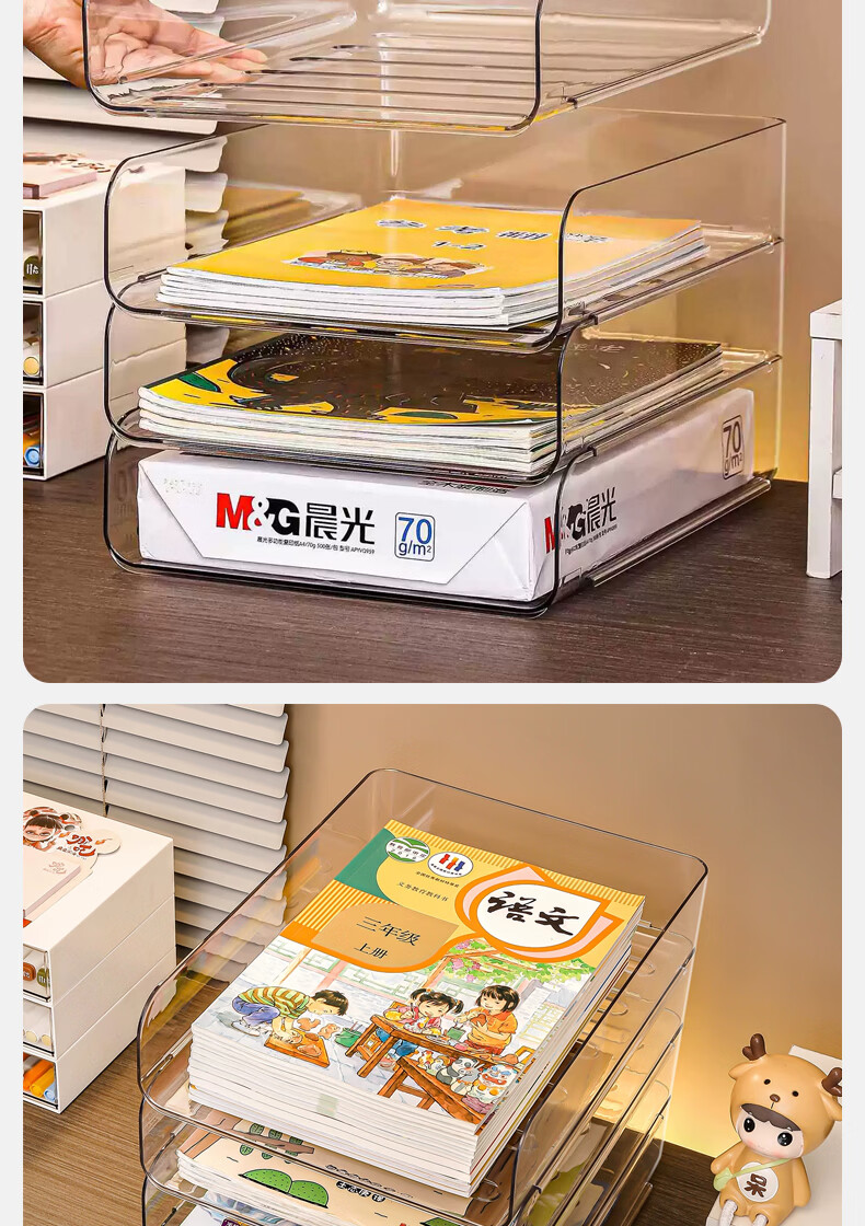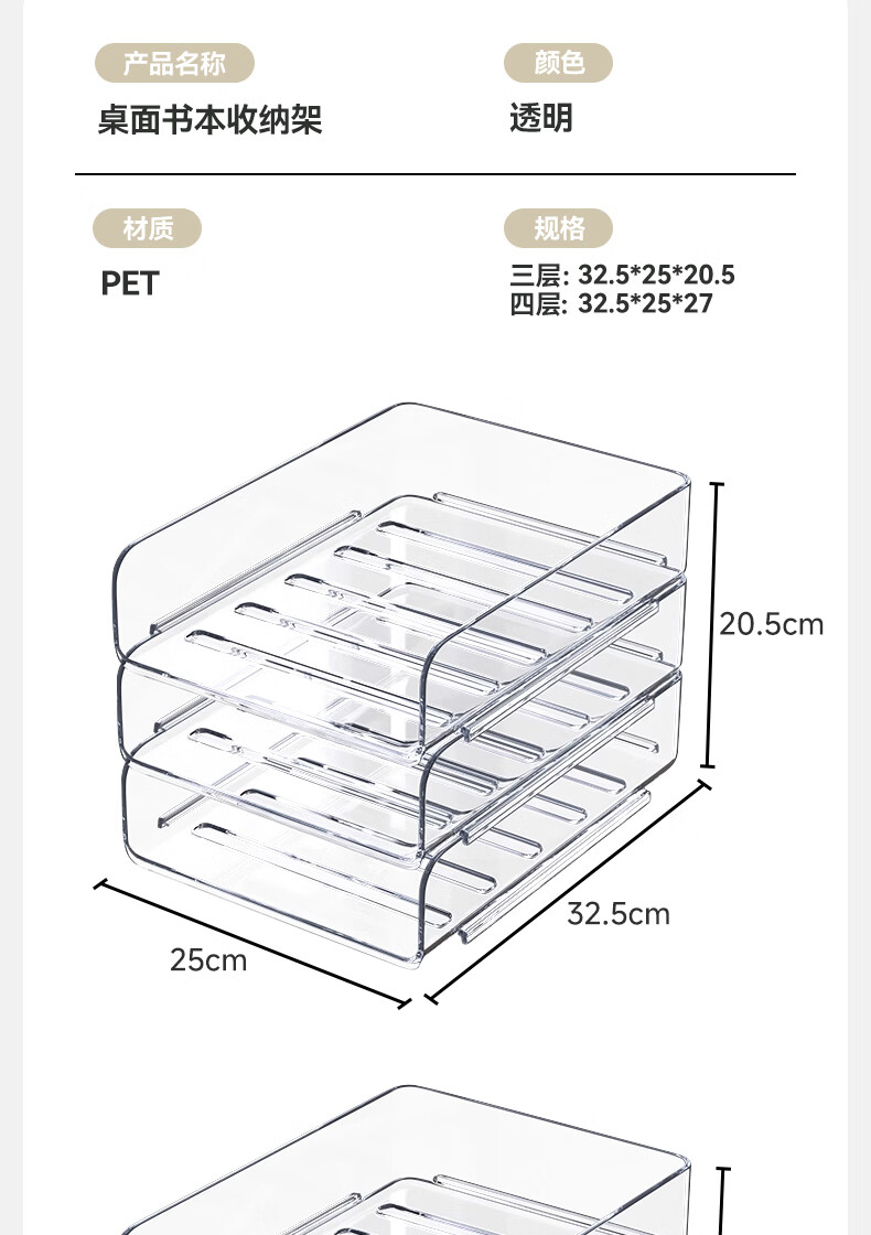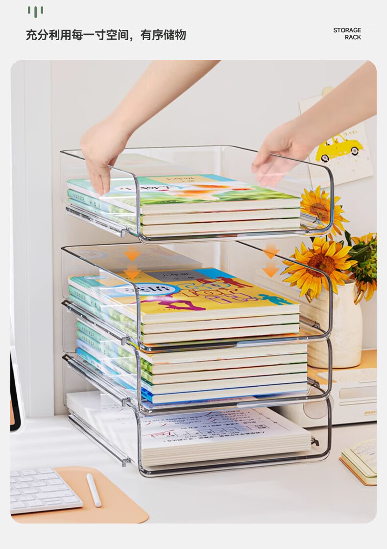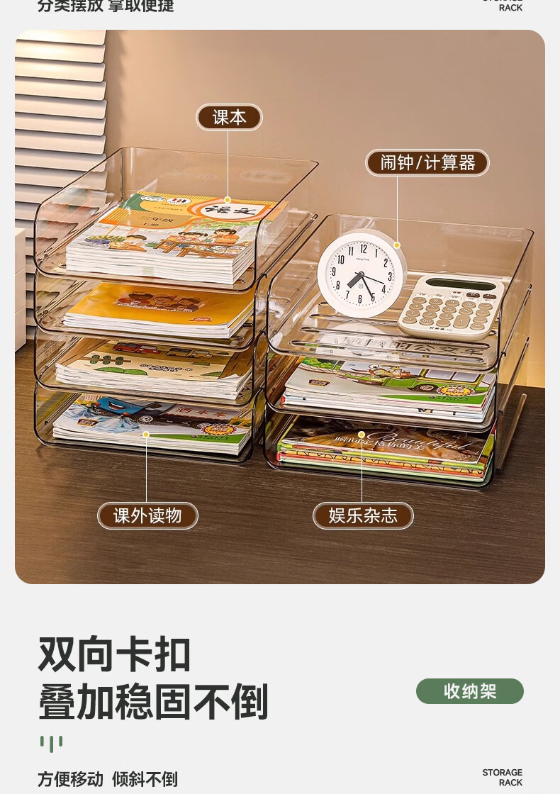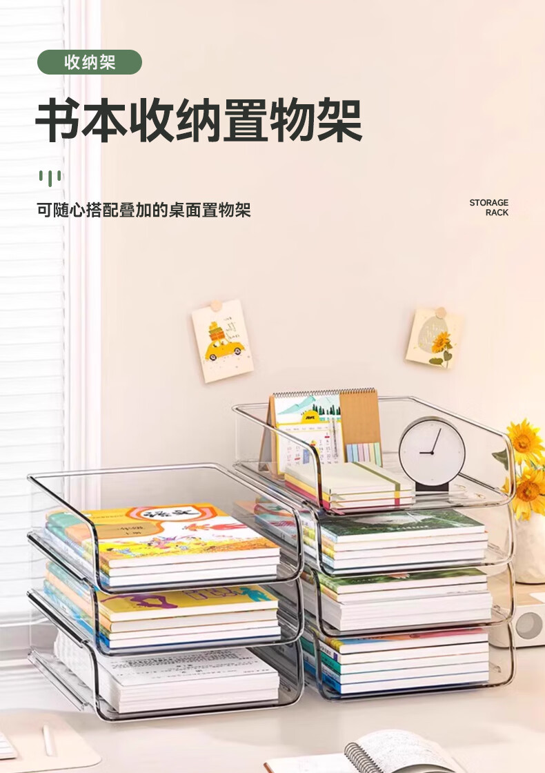 叩素整理师推荐桌面书本收纳架书桌置物架文件书架亚克力空间利用神器 桌面书本收纳架 透明加深 3层