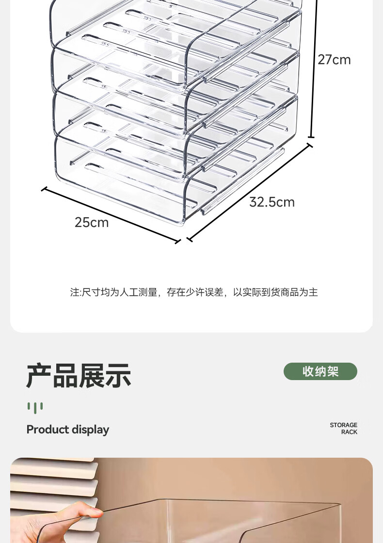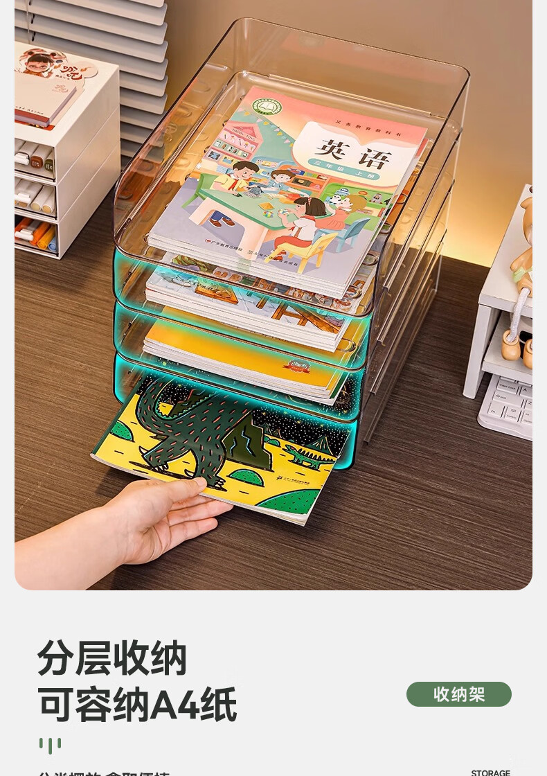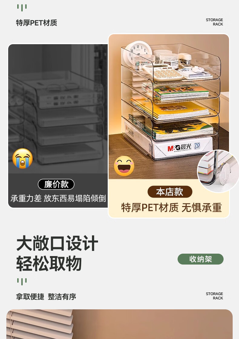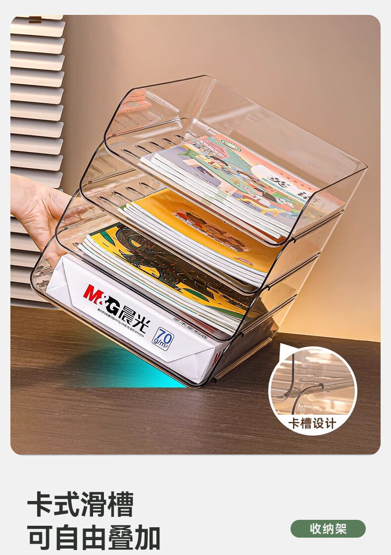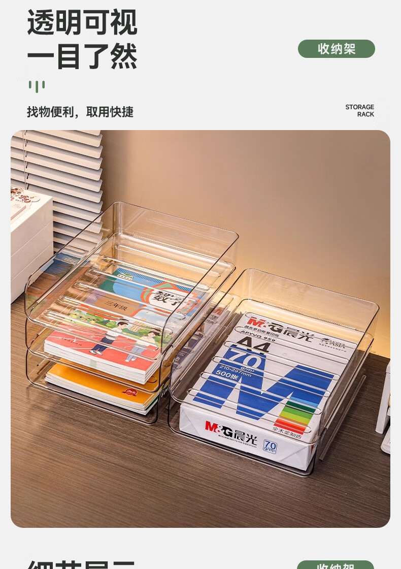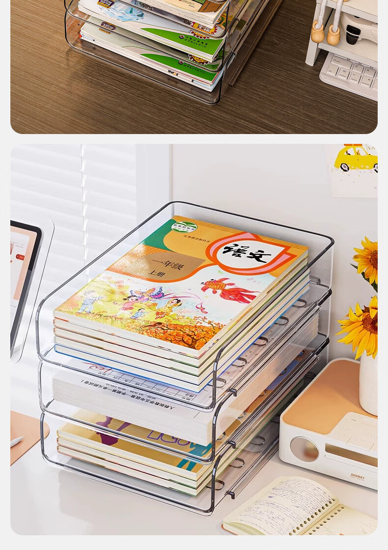 叩素整理师推荐桌面书本收纳架书桌置物架文件书架亚克力空间利用神器 桌面书本收纳架 透明加深 3层