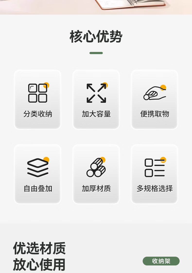 吱凡日本深柜厨房收纳盒长方形零食橱柜杂物整理盒桌面直角储物收纳筐 【中号】2个装【特厚】