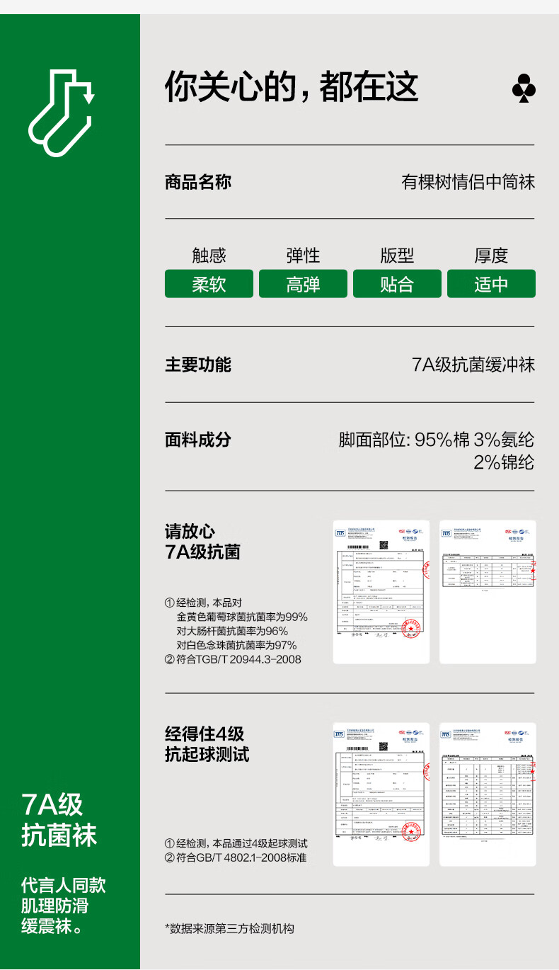 有棵树【肌理按摩】女士袜子女纯棉10A抗菌中筒袜吸汗透气防臭抗休闲袜