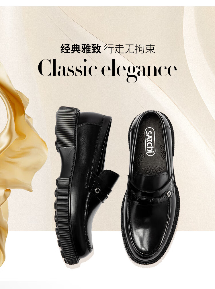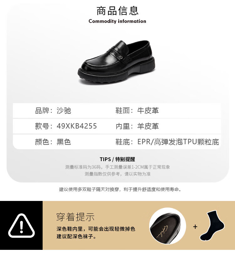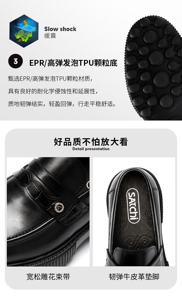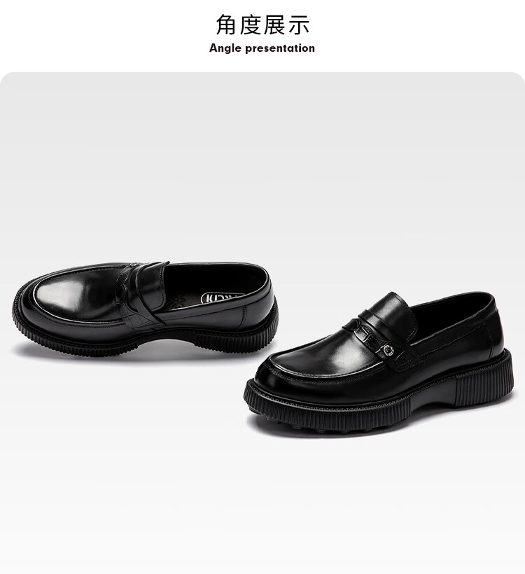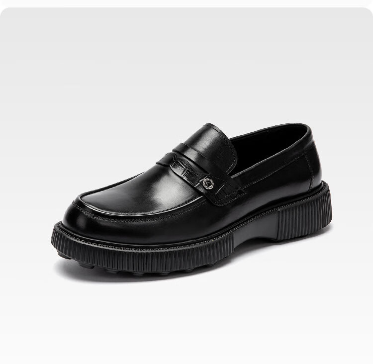沙驰(SATCHI)男鞋【胎牛皮】新款缓震舒适商务皮鞋通勤百搭轻底正装皮鞋乐福鞋 黑色(49XKB4255) 37