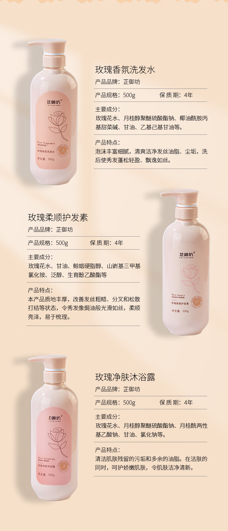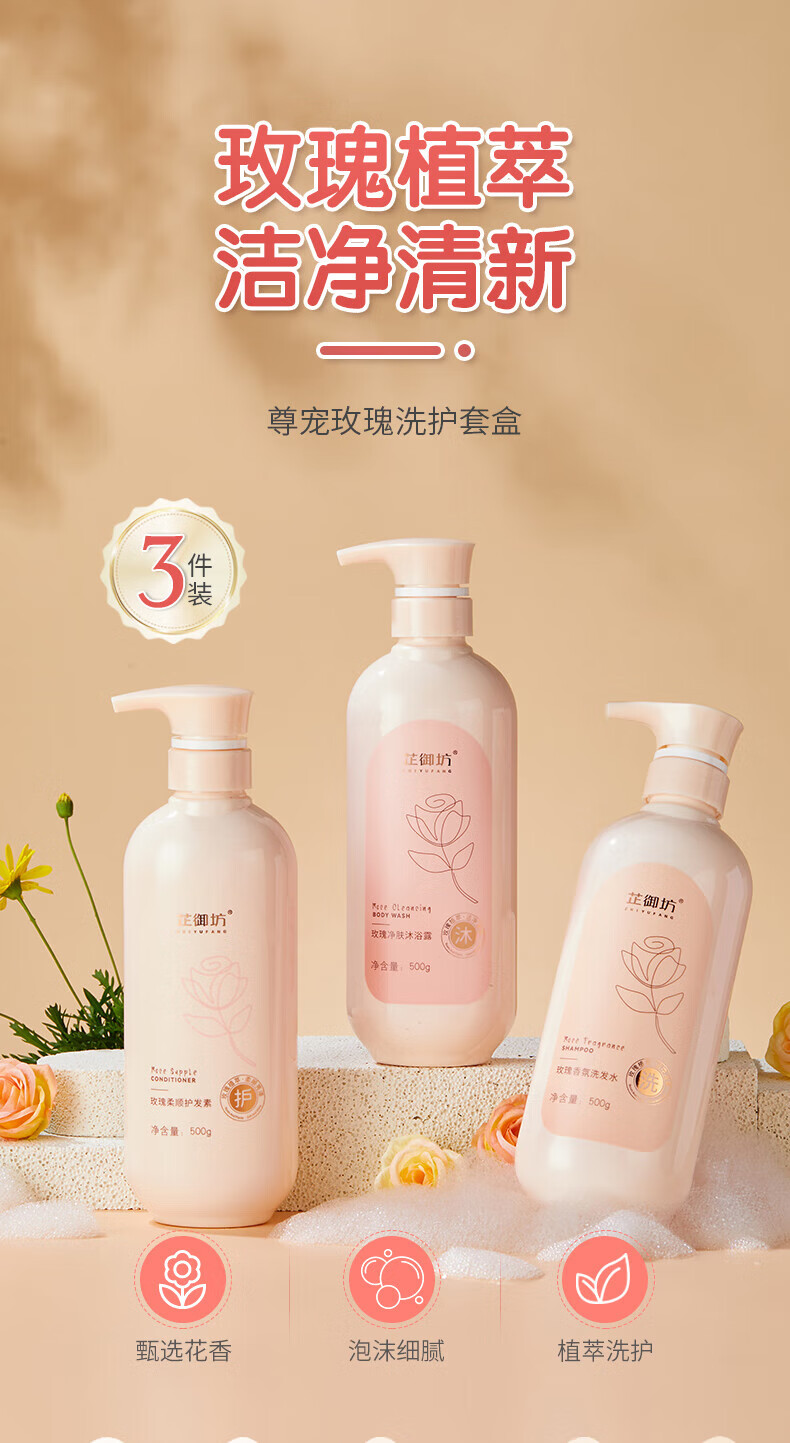 芷御坊尊宠玫瑰洗护套盒洗发水沐浴露护发素三件套男女士通用
