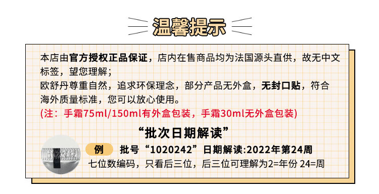 欧舒丹甜扁桃护手霜150ml紧致肌肤滋润不黏腻保湿法国进口男女士礼物