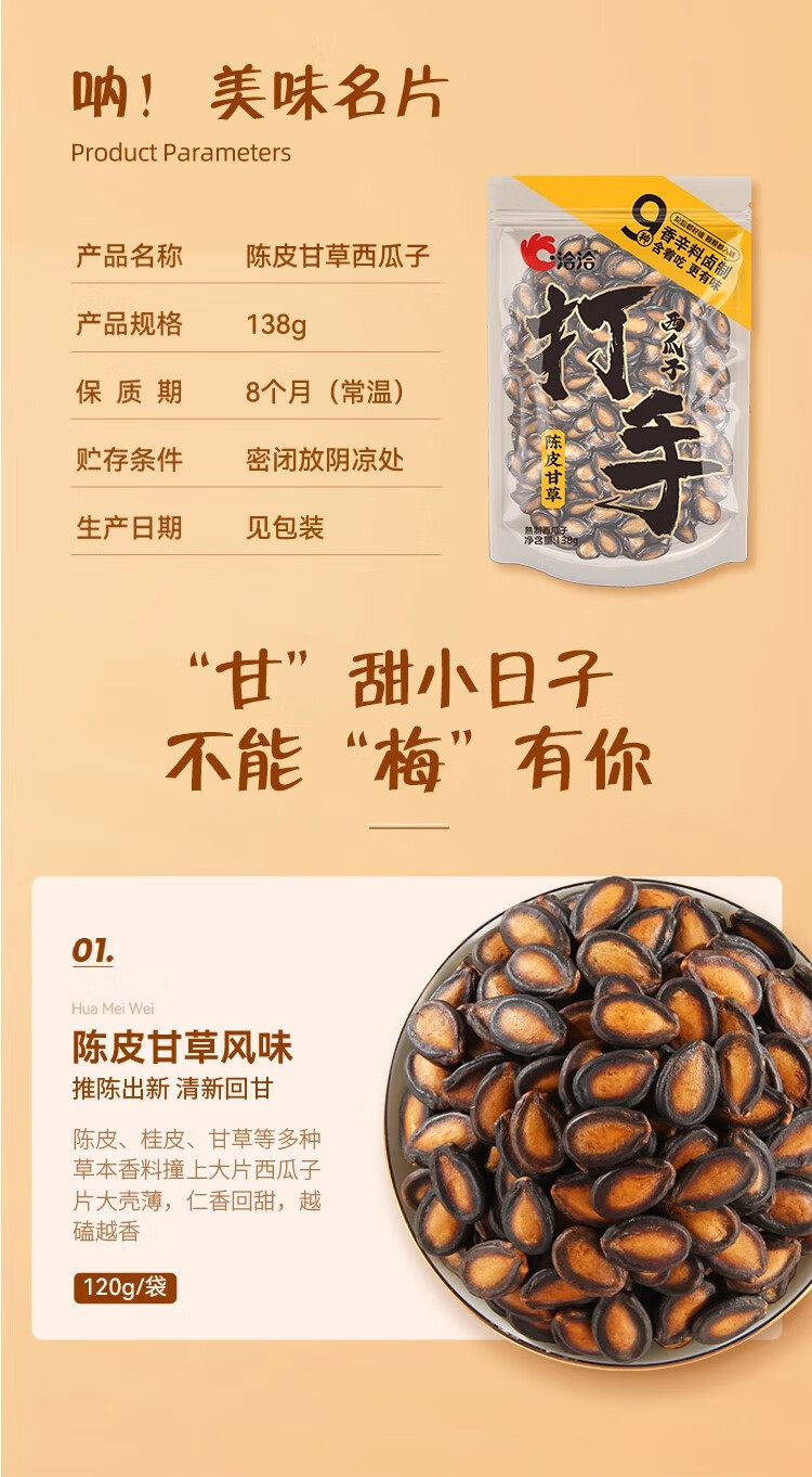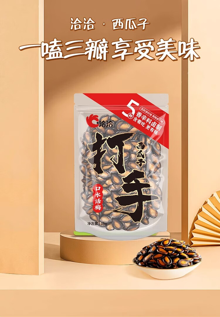 洽洽小而香大片打手西瓜子138g口水话梅陈皮甘草味黑瓜子休闲零食年货节 口水话梅味138g*2袋