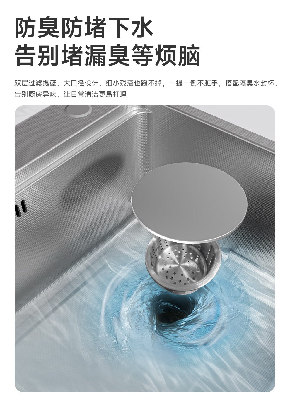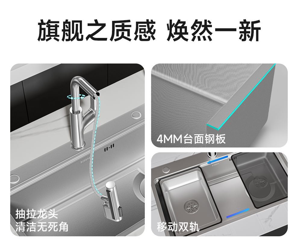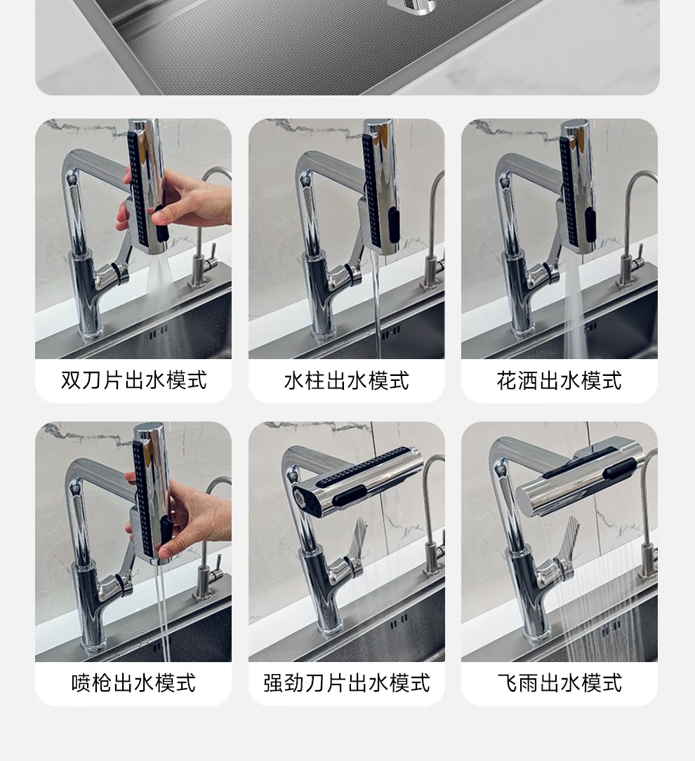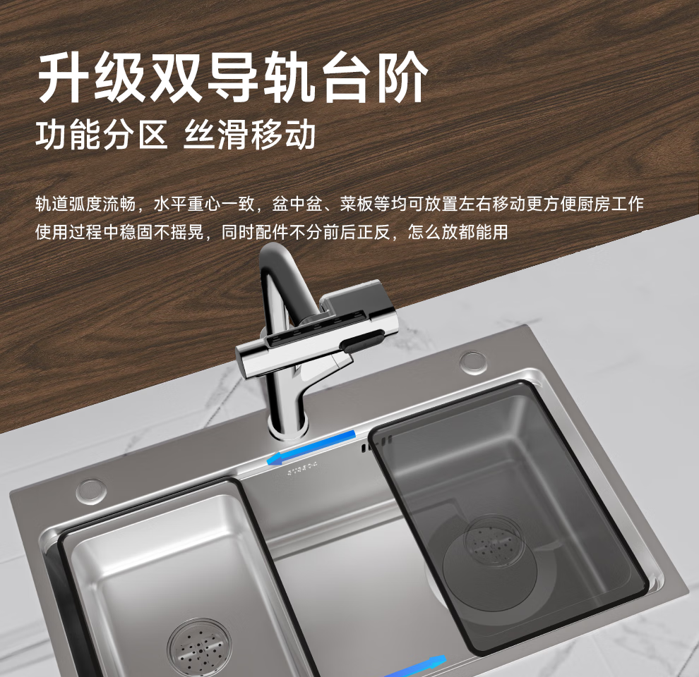 日丰集渣水槽厨房洗菜盆单槽 304不锈钢洗菜池 压纹台下盆洗碗槽 68*46【双轨集渣|4mm面板】+亮银冰柱水抽拉