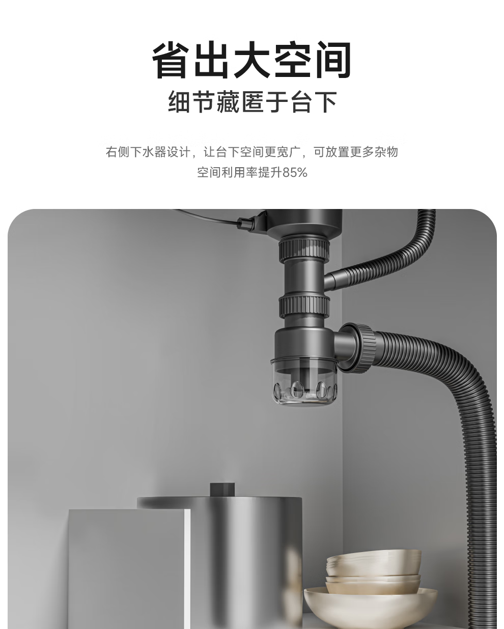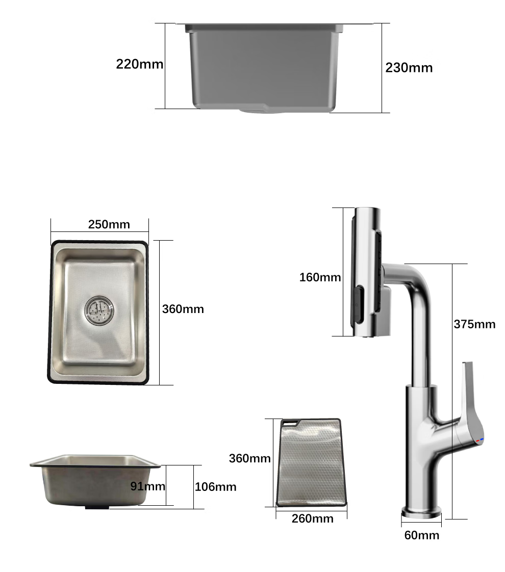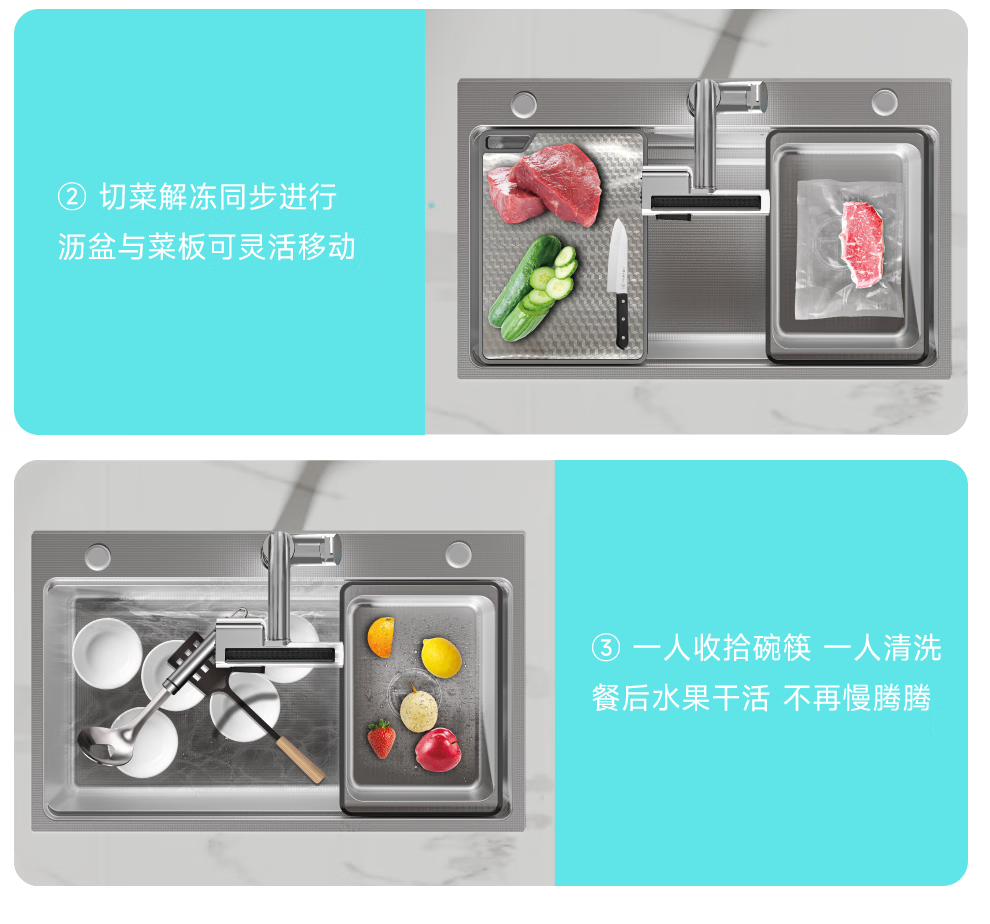 日丰集渣水槽厨房洗菜盆单槽 304不锈钢洗菜池 压纹台下盆洗碗槽 68*46【双轨集渣|4mm面板】+亮银冰柱水抽拉