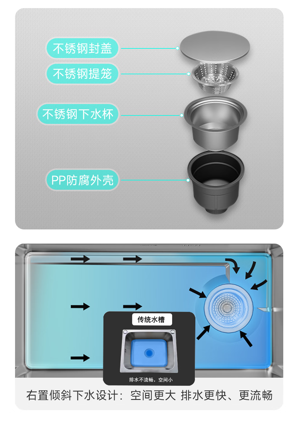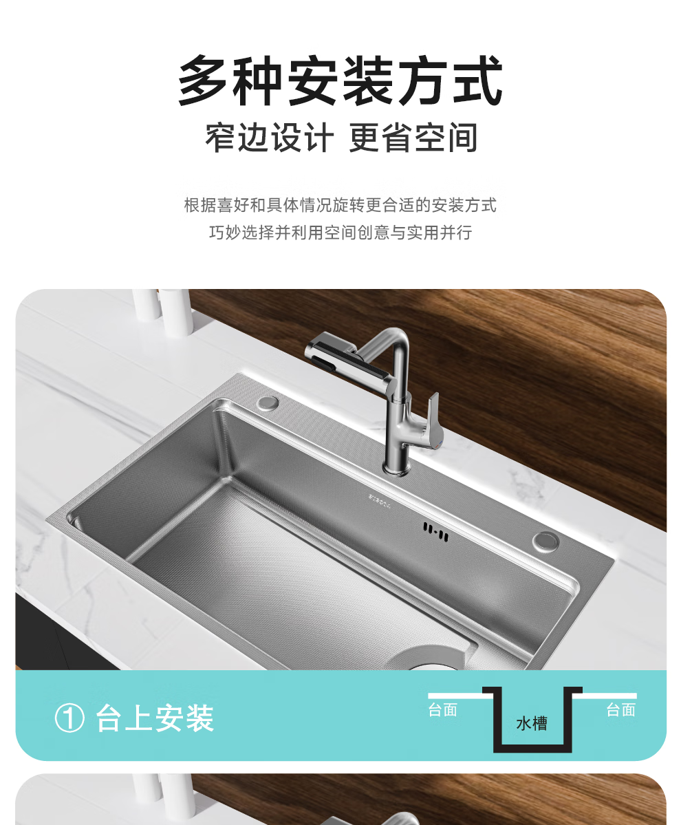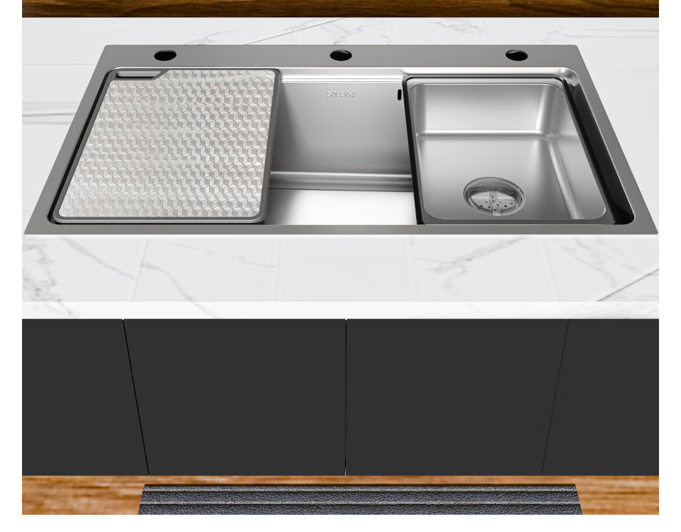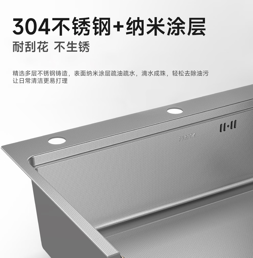 日丰集渣水槽厨房洗菜盆单槽 304不锈钢洗菜池 压纹台下盆洗碗槽 76*46【双轨集渣|4mm面板】+不含龙头