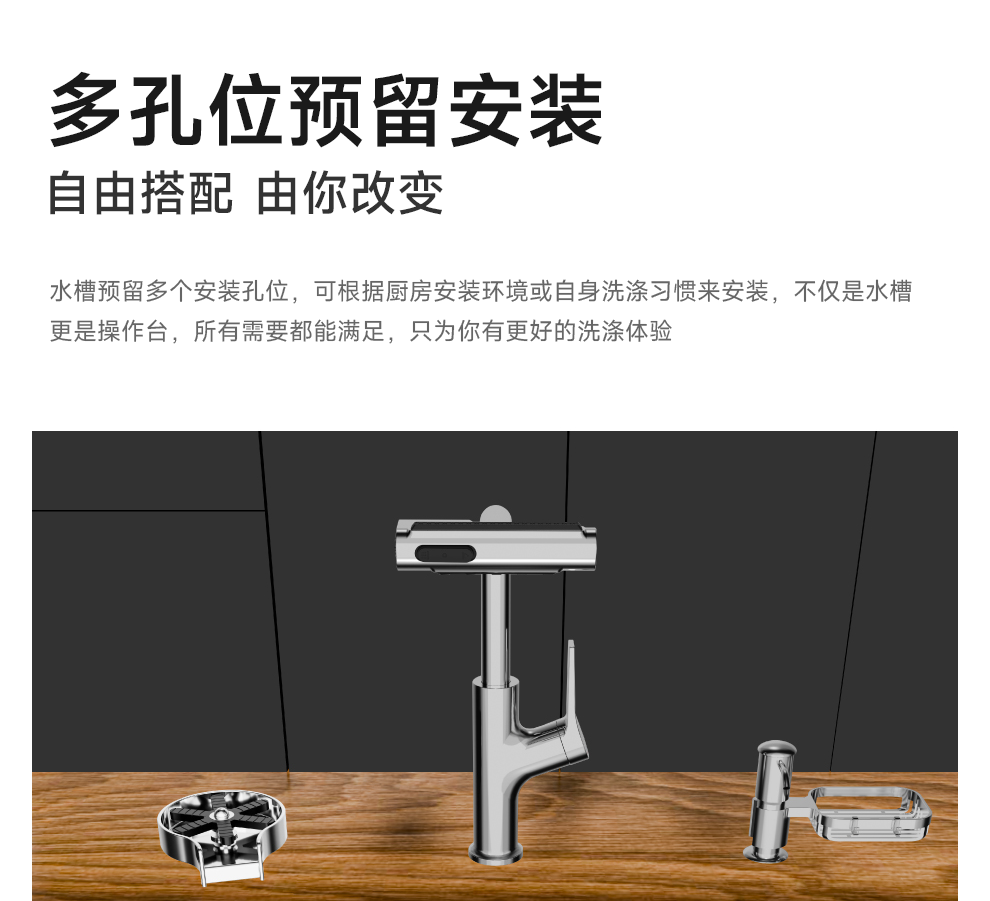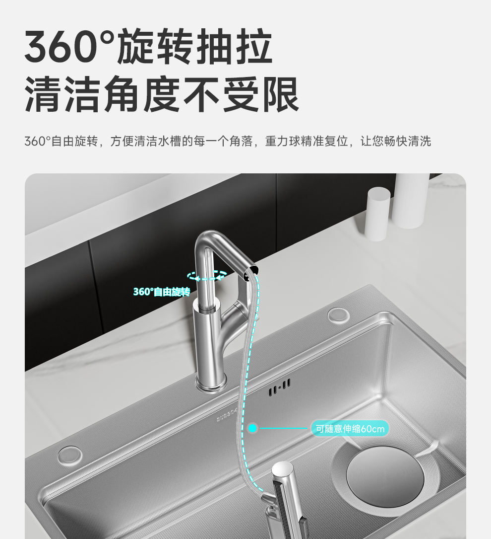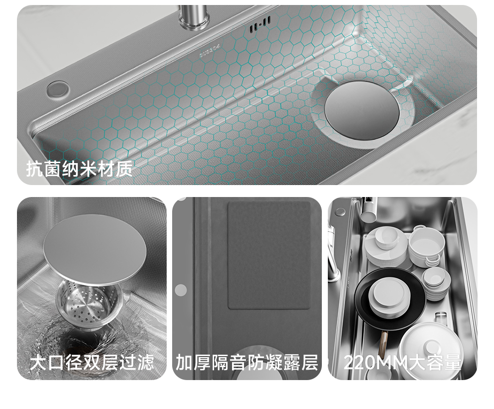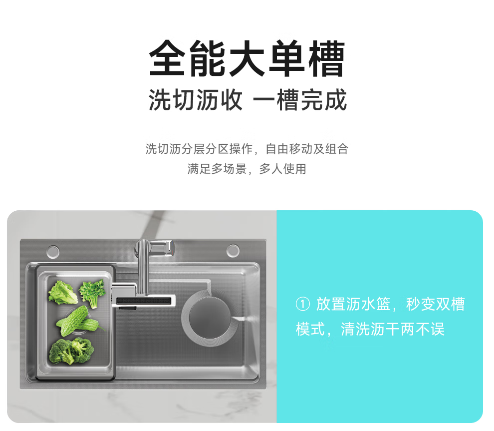 NOEO厨房洗菜盆大单槽 加厚多功能304不锈钢水槽洗碗槽水池一体盆套装 B套餐|65x46cm抽拉全套配置【含抽拉龙头+皂液器】