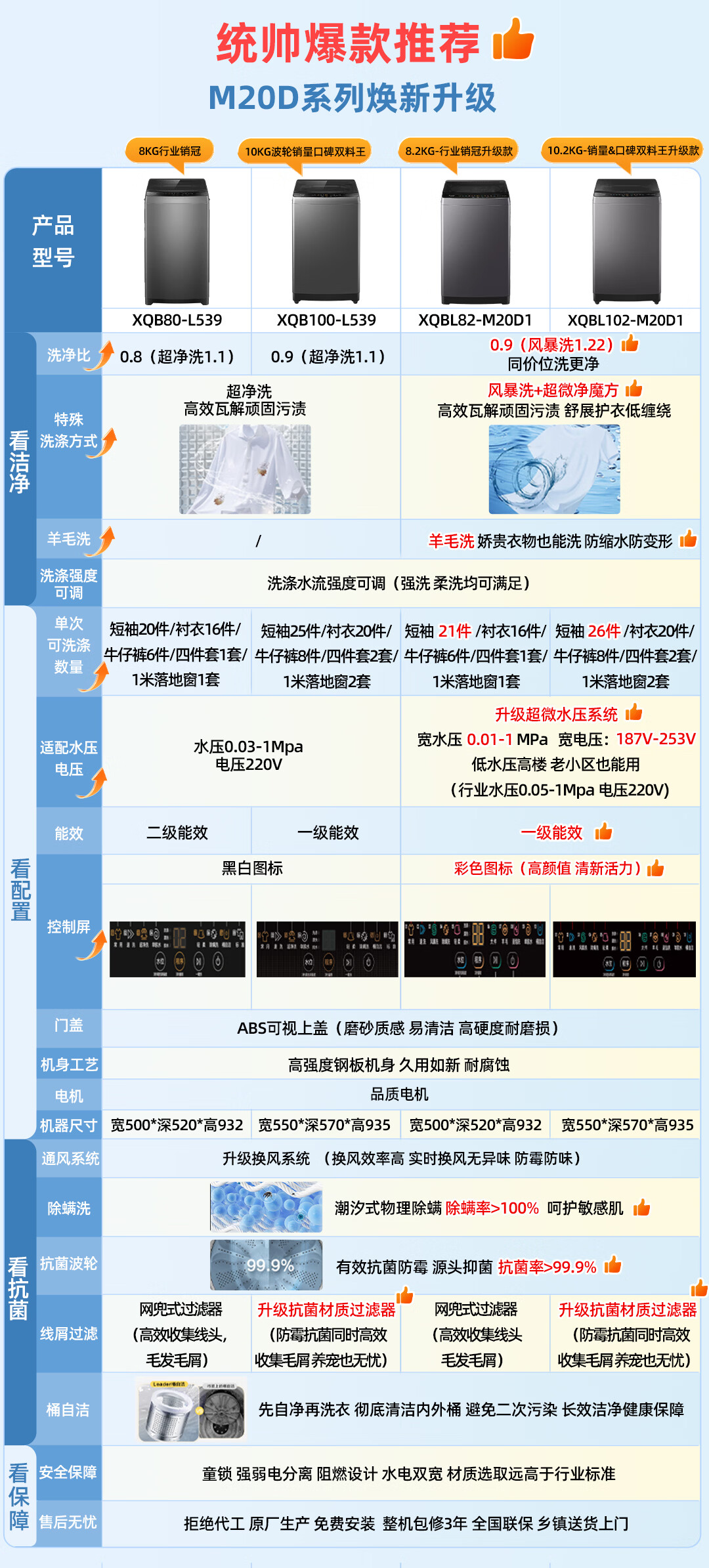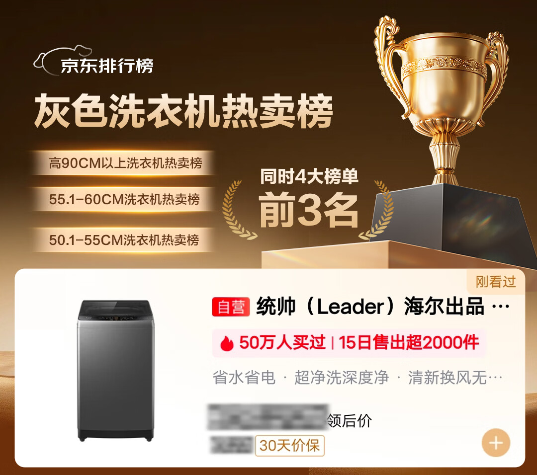 海尔(Haier)出品 统帅波轮洗衣机 全自动家用 10公斤一级能效 京东自营以旧换新家电补贴 XQB100-L539