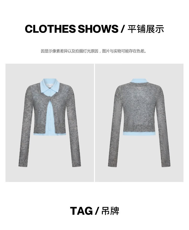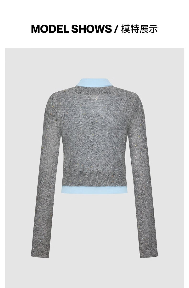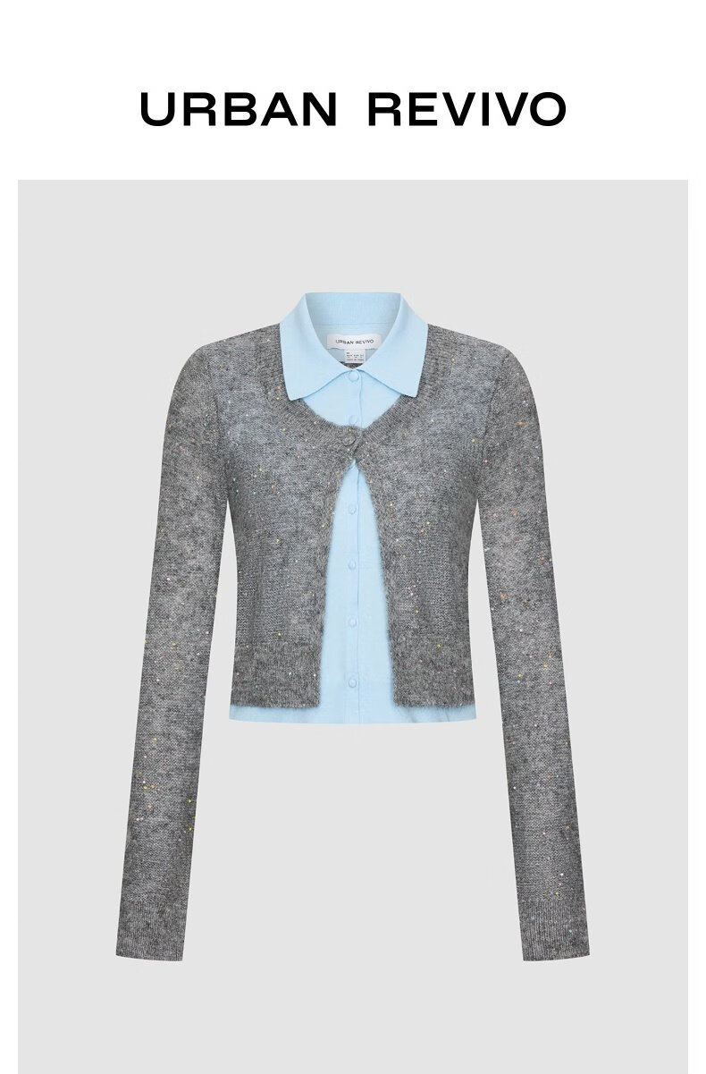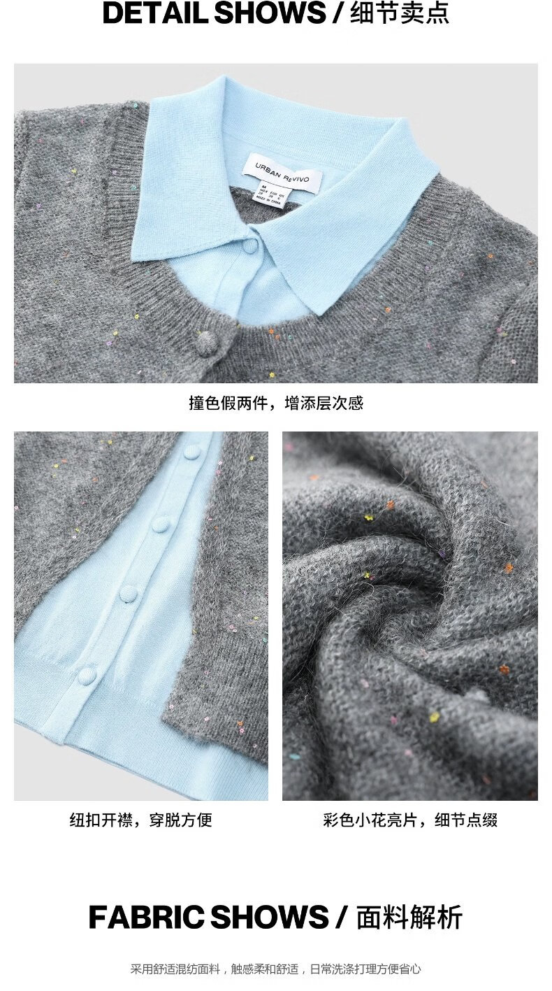 UR2025秋季新款女休闲彩色花朵亮片假两件针织开衫UYL950157
