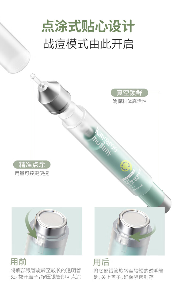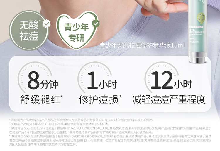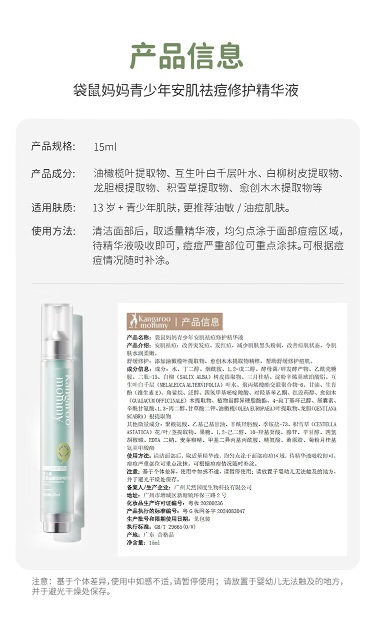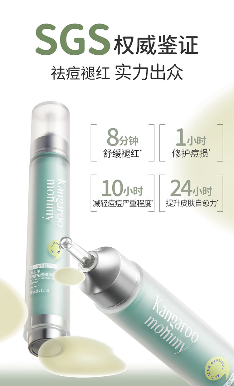 袋鼠妈妈青少年祛痘精华液 12-18岁青春期学生瘪痘舒缓褪红修护精华15ml