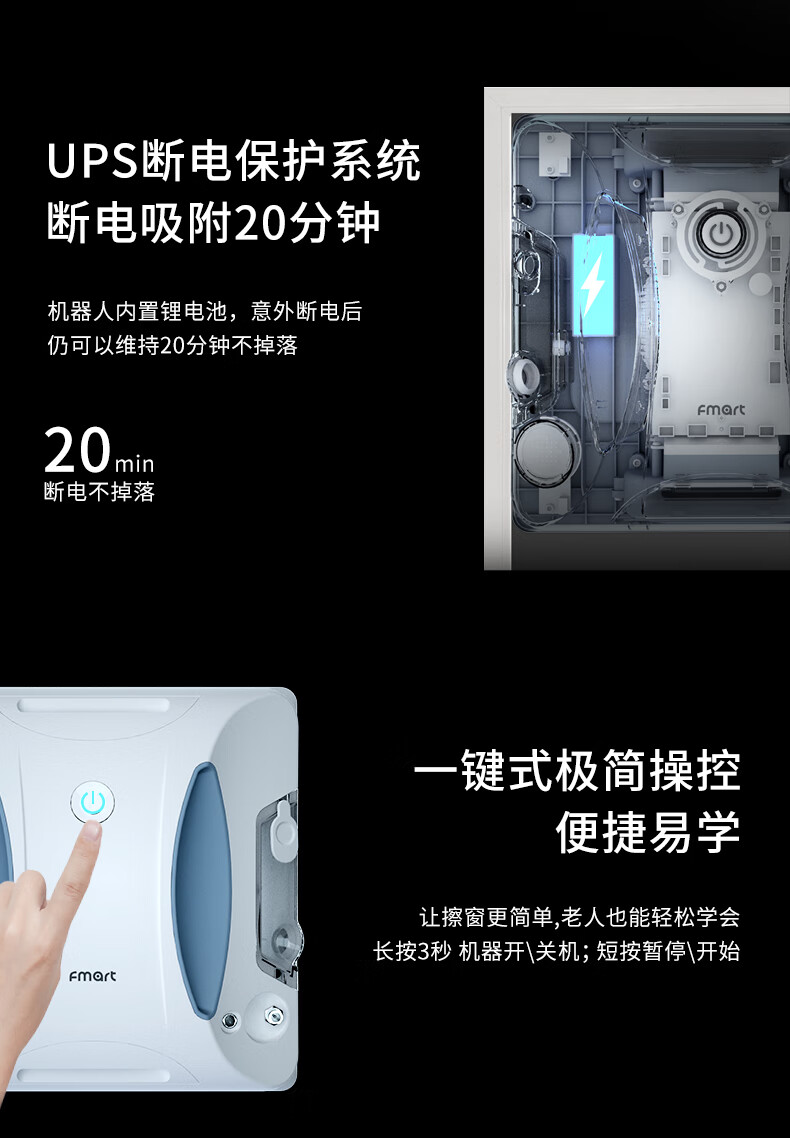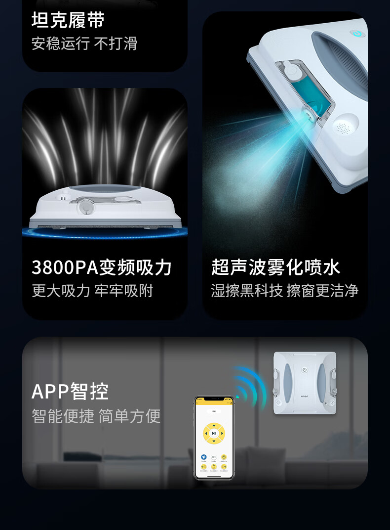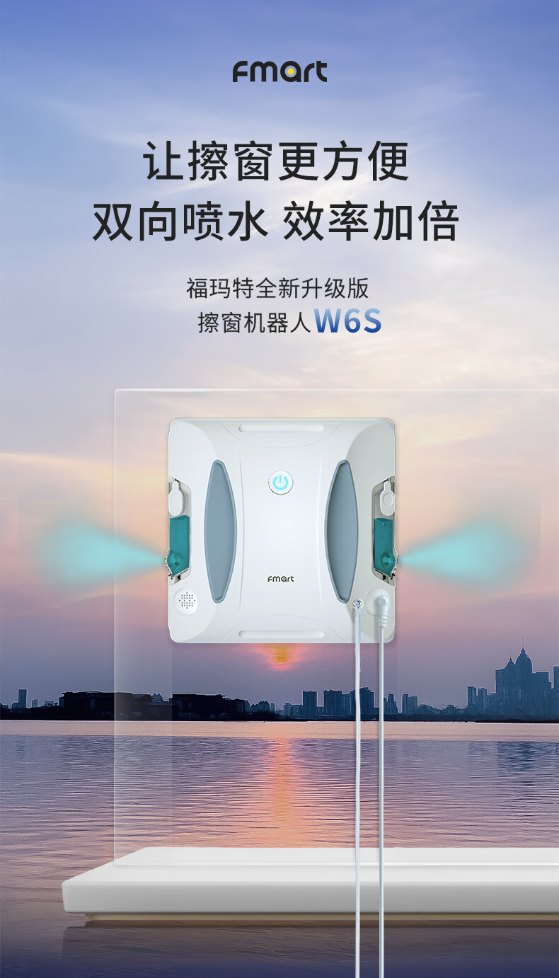 FMART福玛特擦玻璃机器人【新年礼物】智能变频遥控+App控制高层好选择 年货节 擦玻璃神器W6S