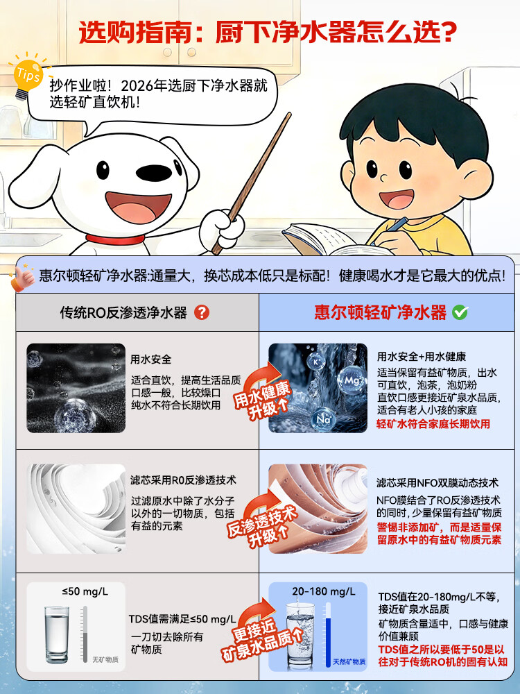 惠尔顿(WHEELTON)轻矿净水器母婴级直饮矿物质1800G大通量 0阻垢剂0陈水8年RO反渗透 厨房台下家用净水机轻矿水Q16 【1800G 8年长效】轻矿好水 健康直饮