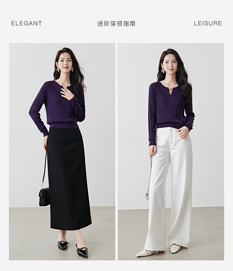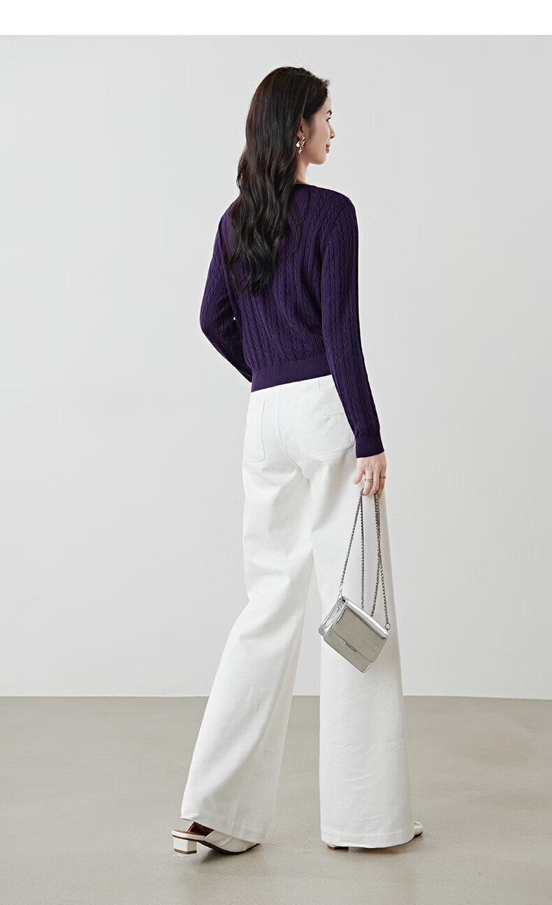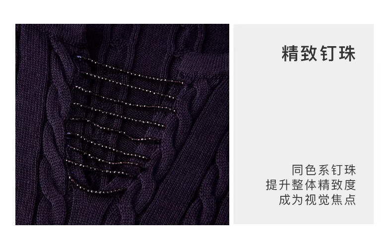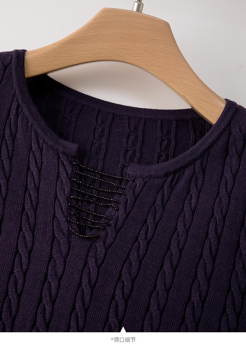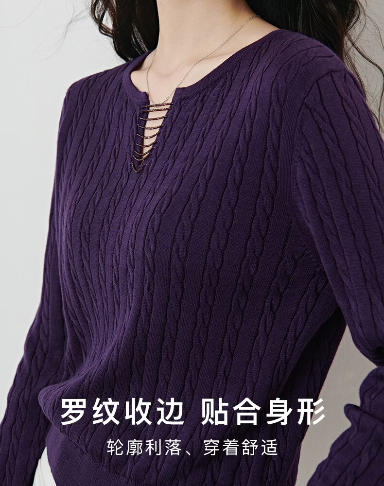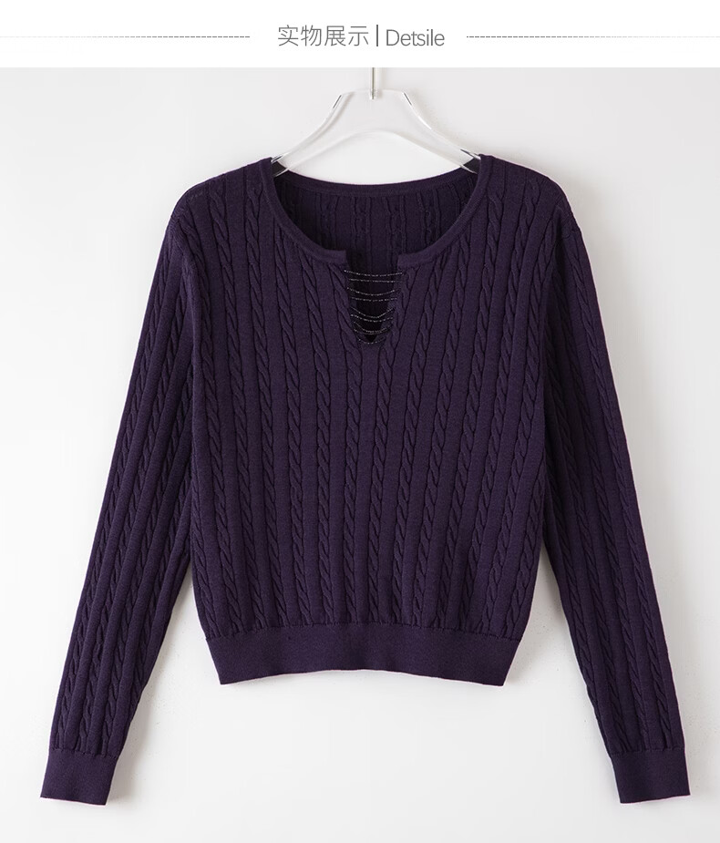 晚白2026年春款串珠小V领莱赛尔天丝棉亲肤宽松绞花针织衫女 紫色 L