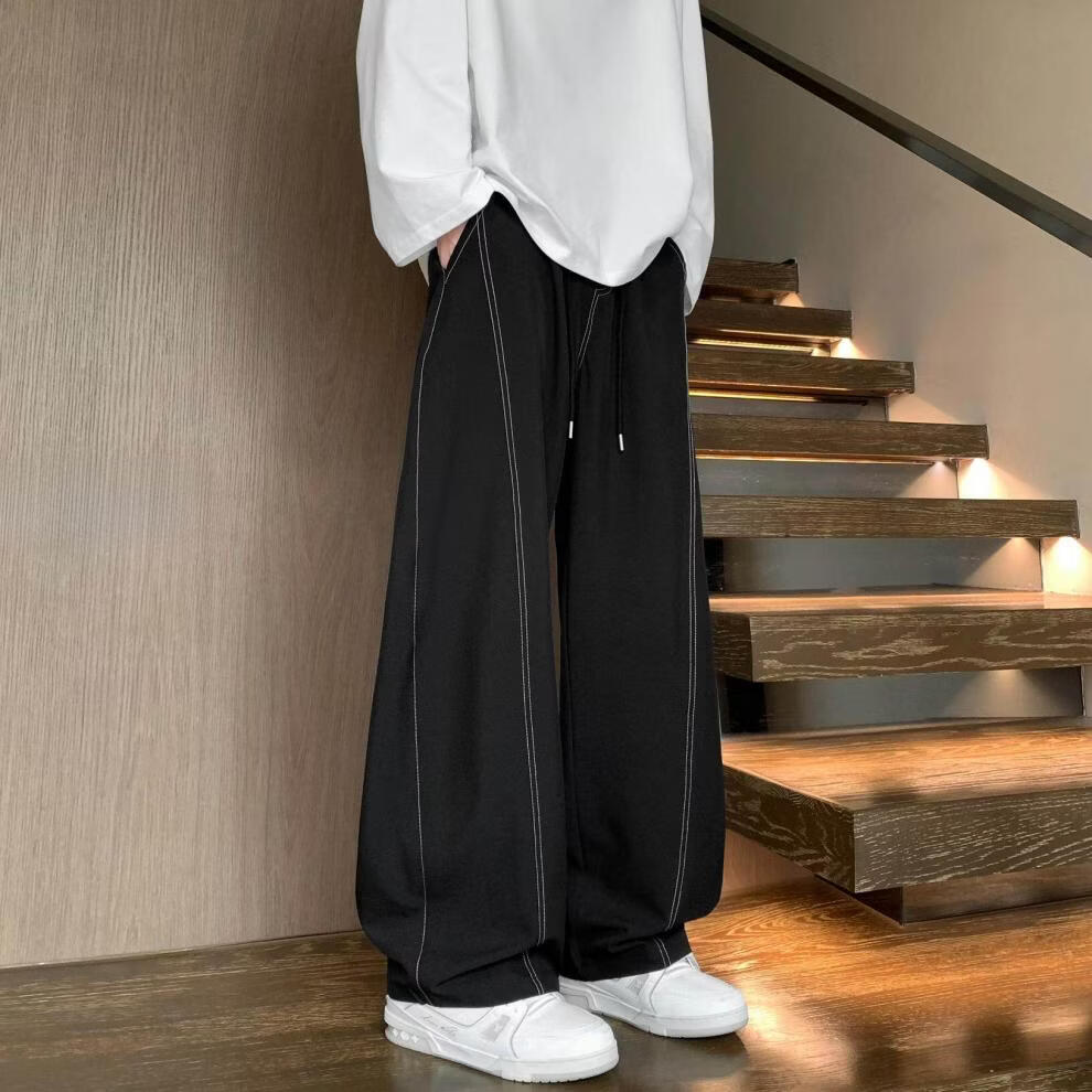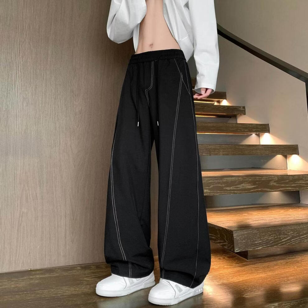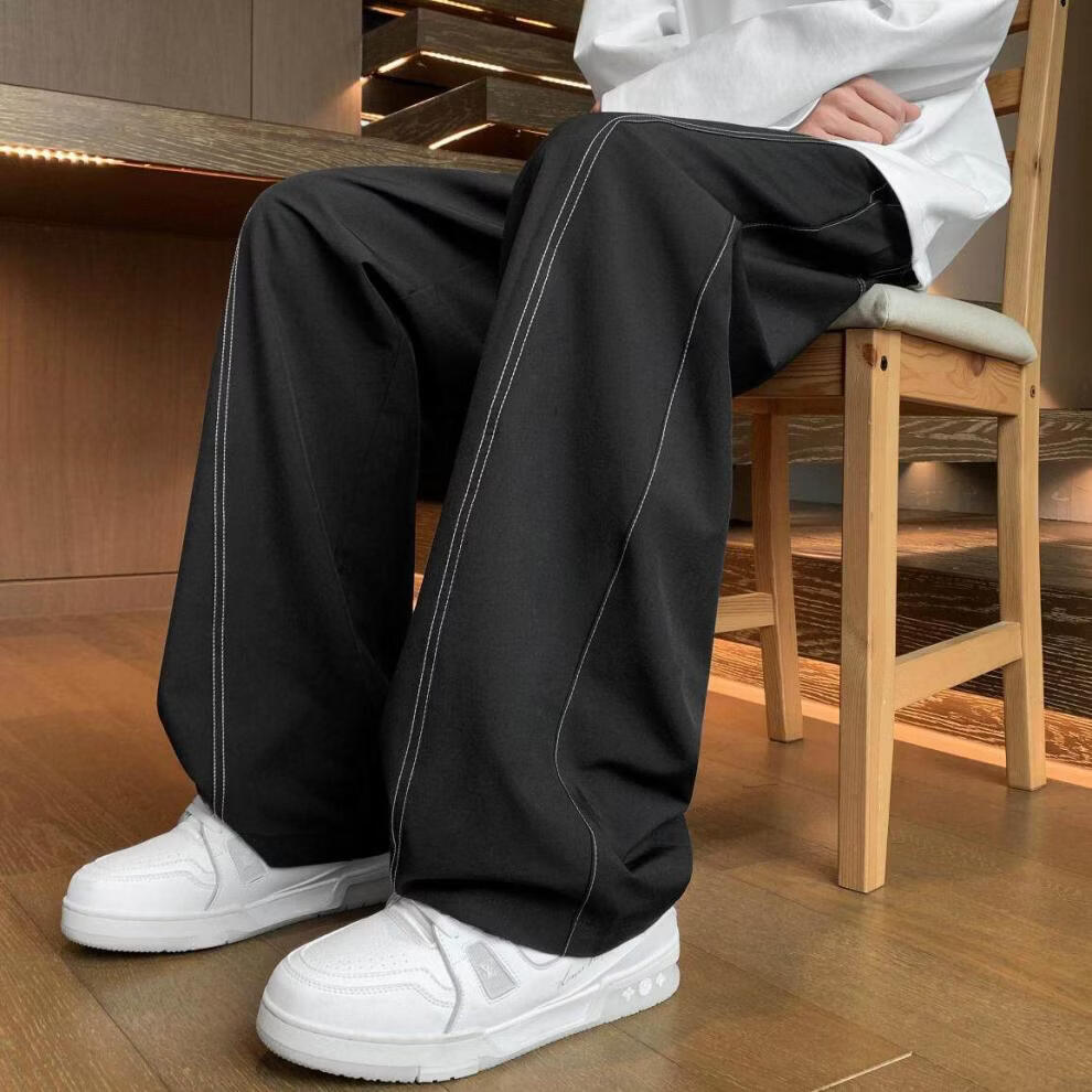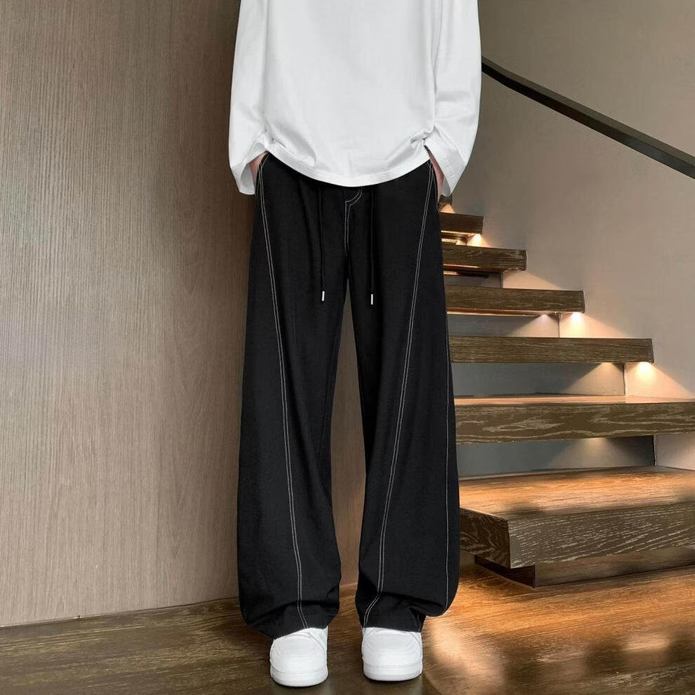 MODX2025夏季薄款凉感冰丝裤明线弯刀设计感男女百搭宽松显瘦休闲裤潮 黑色 M 80-120斤