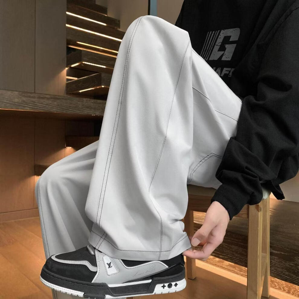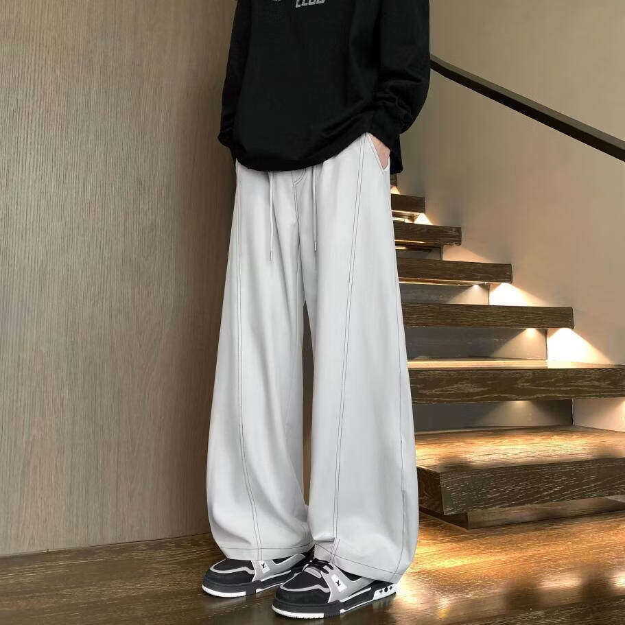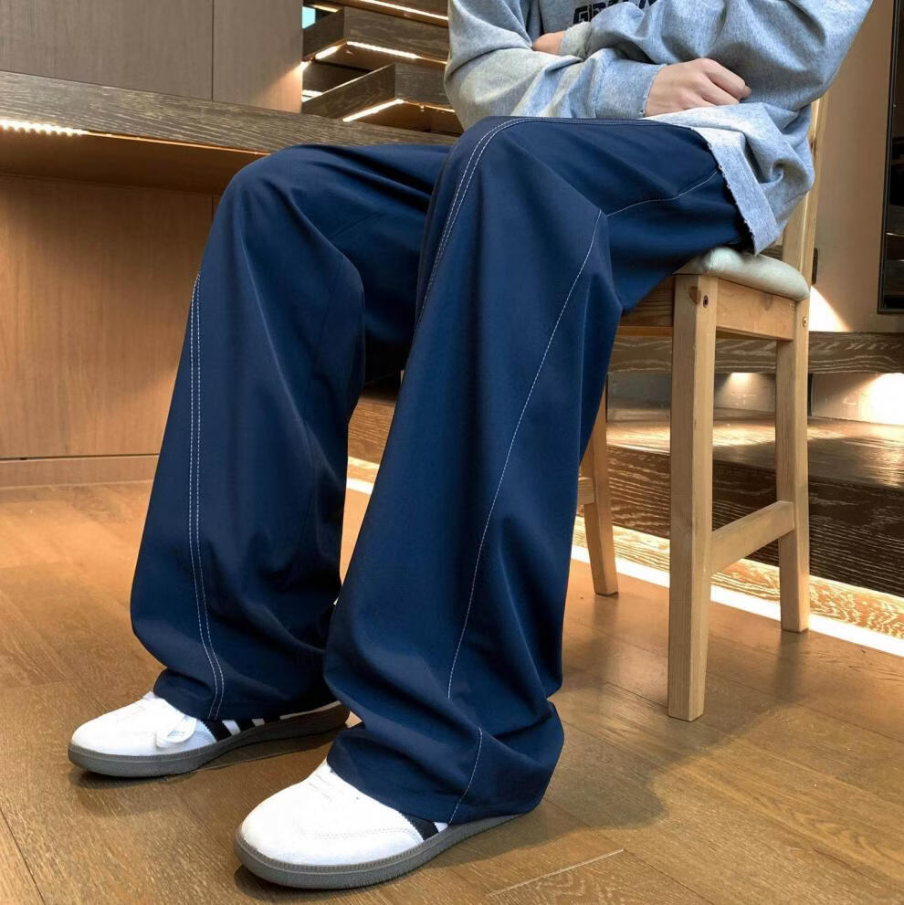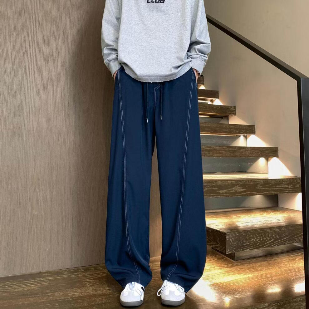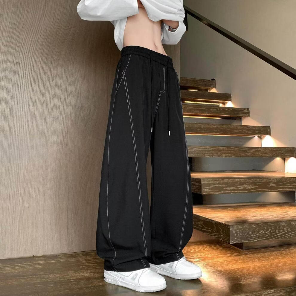 MODX2025夏季薄款凉感冰丝裤明线弯刀设计感男女百搭宽松显瘦休闲裤潮 黑色 M 80-120斤