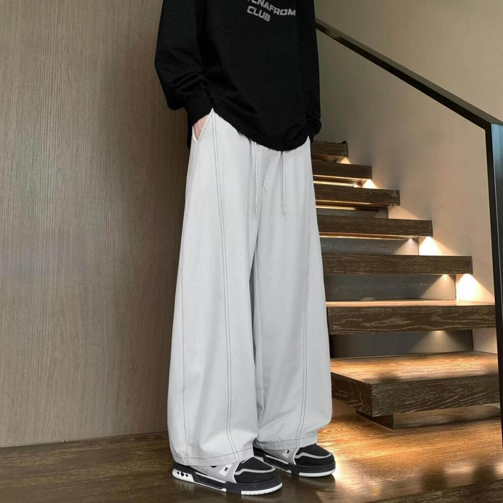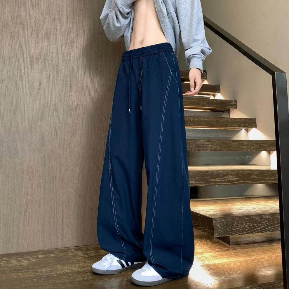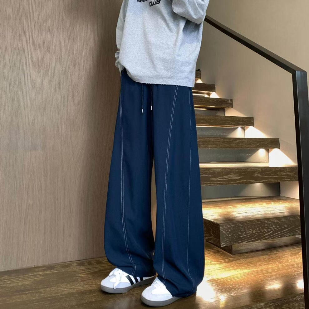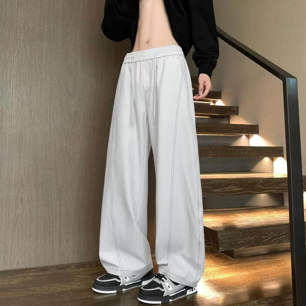 MODX2025夏季薄款凉感冰丝裤明线弯刀设计感男女百搭宽松显瘦休闲裤潮 黑色 M 80-120斤
