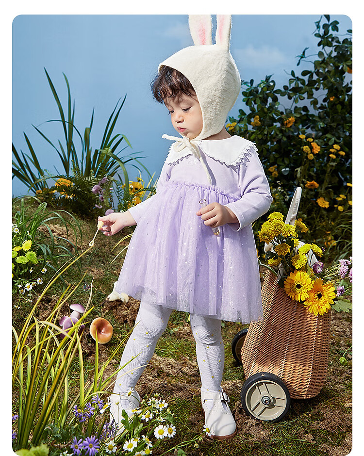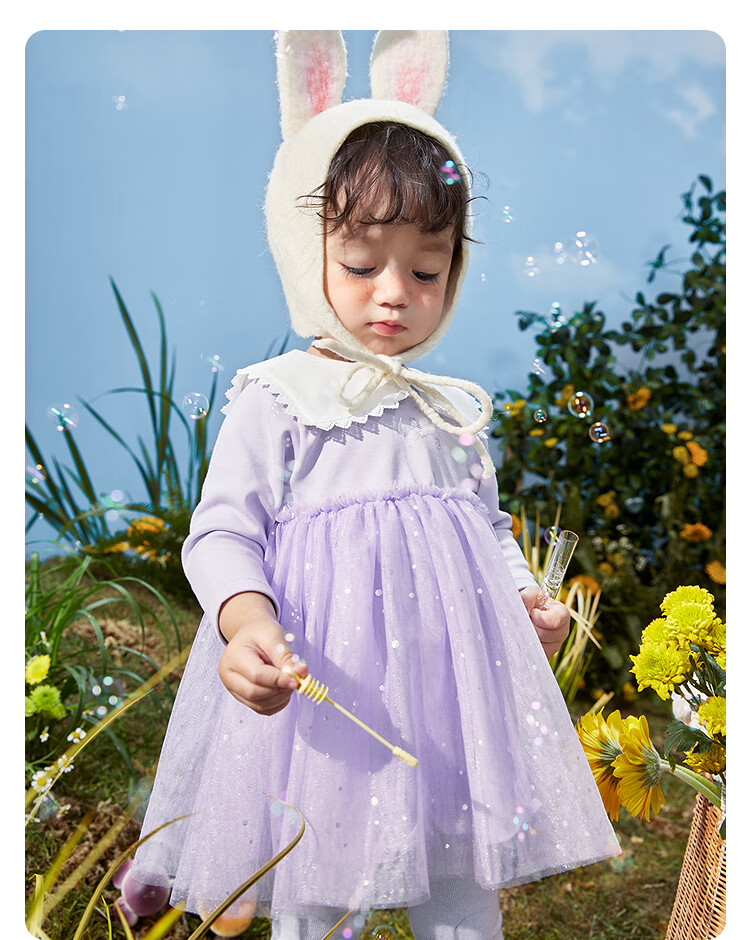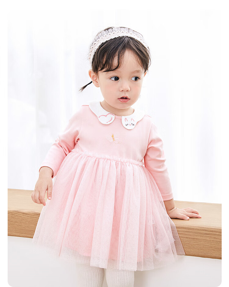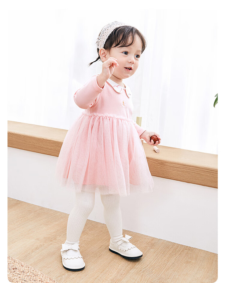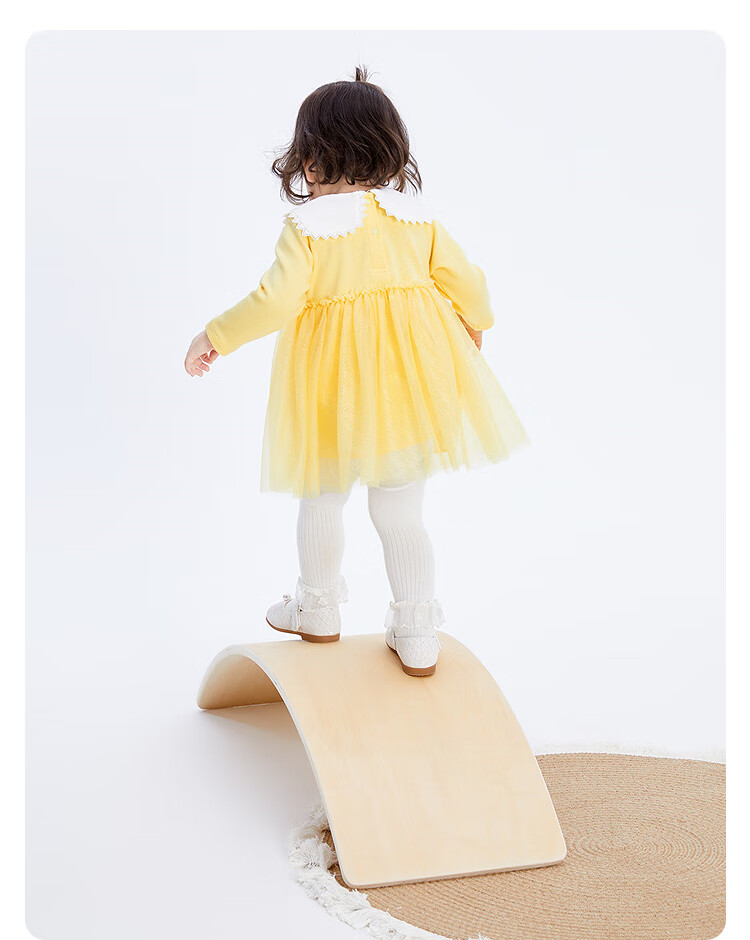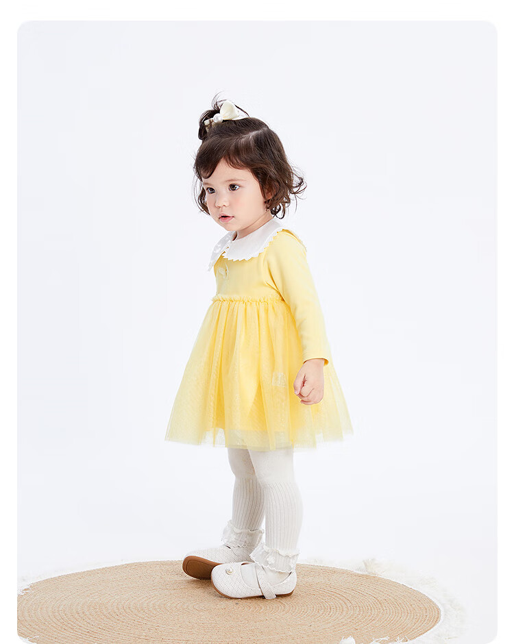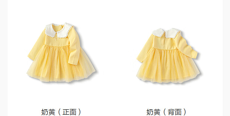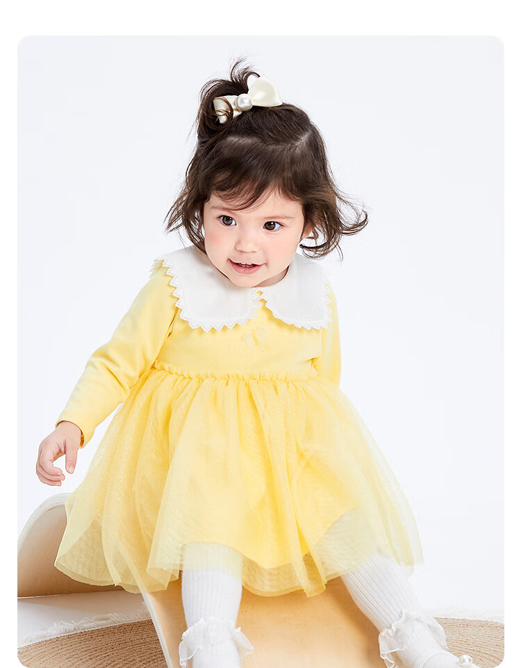 巴拉巴拉宝宝连衣裙蓬蓬网纱裙A字裙女童装秋季新款裙子儿童 奶黄30183 90