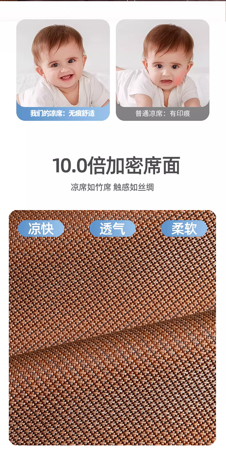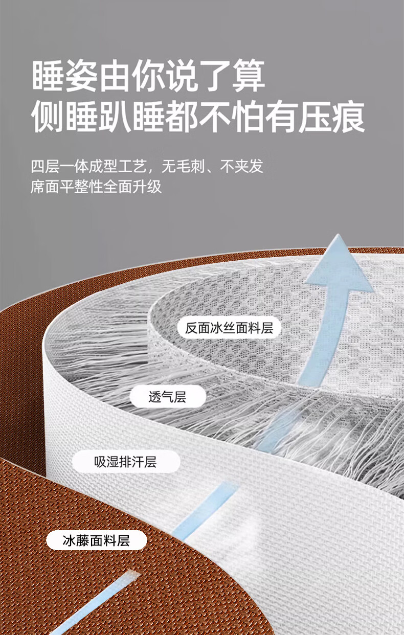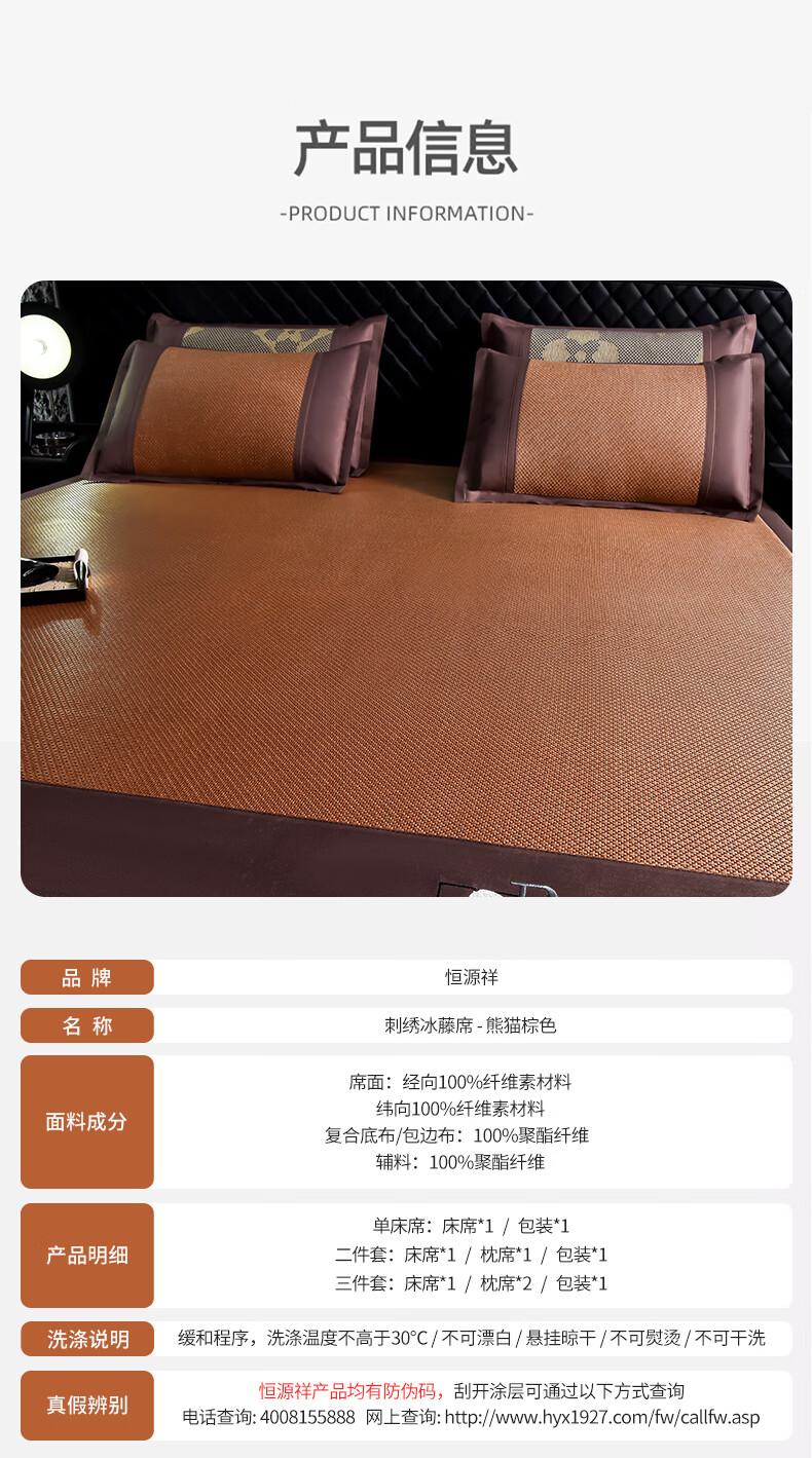 恒源祥刺绣冰藤席 夏季冰丝空调凉席10倍加密无毛刺不黏腻清爽透气藤席 熊猫灰色【10倍加密无毛刺】 90*190cm【单席】