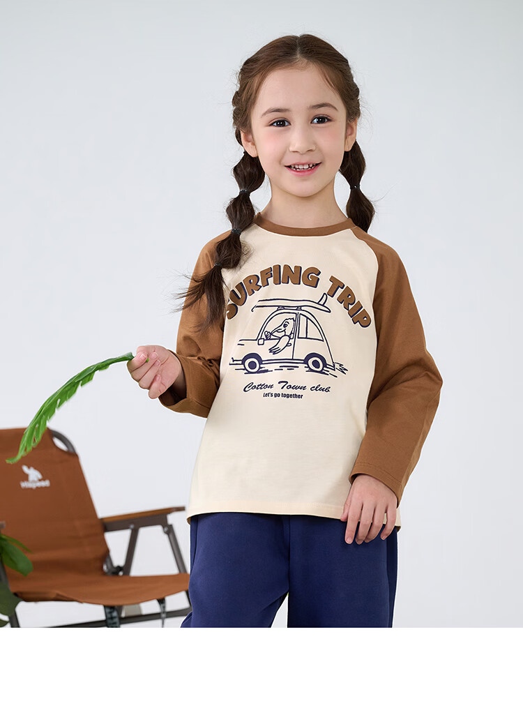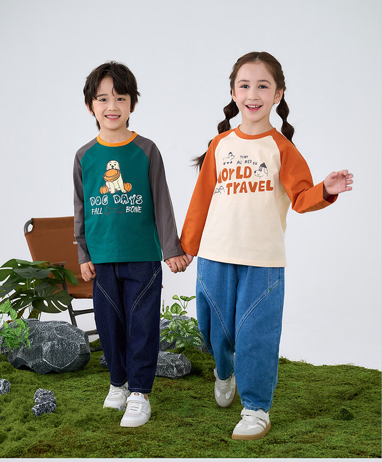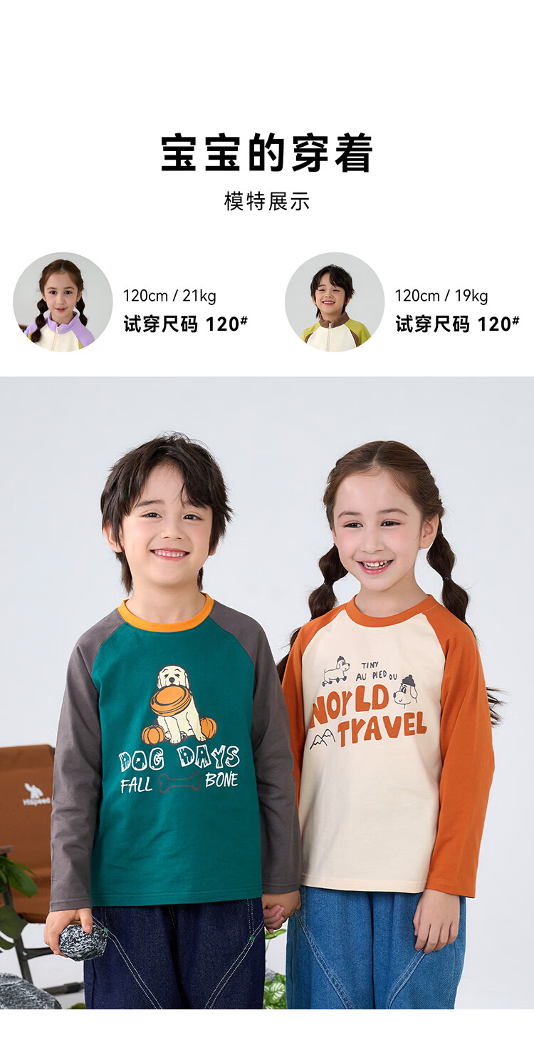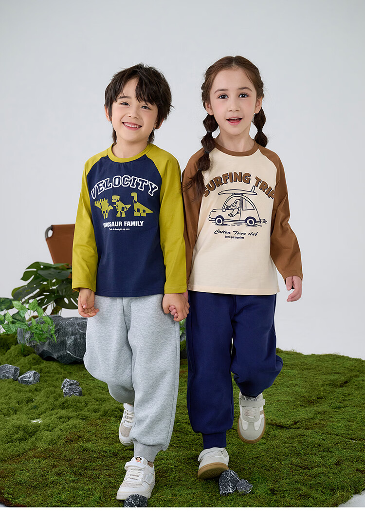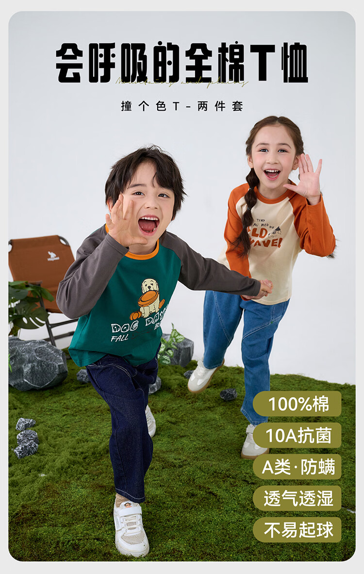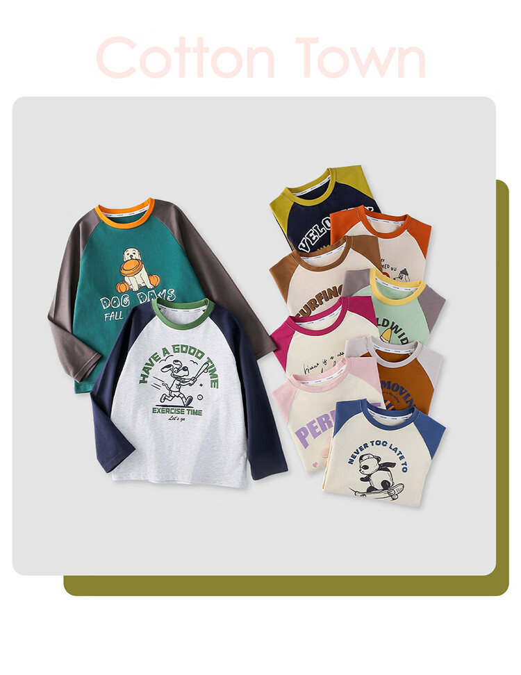 棉花堂【100%棉】棉花堂儿童长袖T恤纯棉男童打底衫女童上衣春秋2件装T 组合四:果绿、灰桔 130