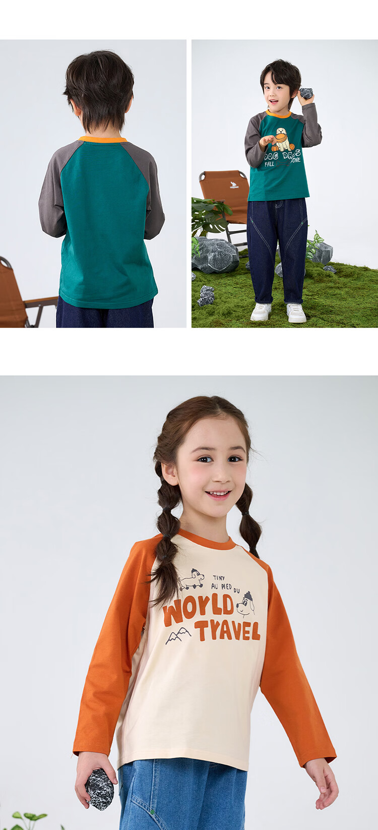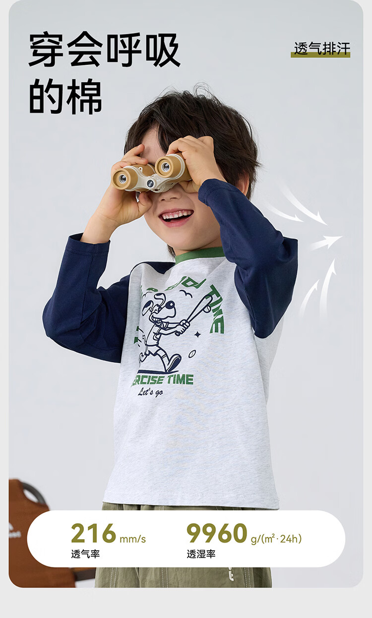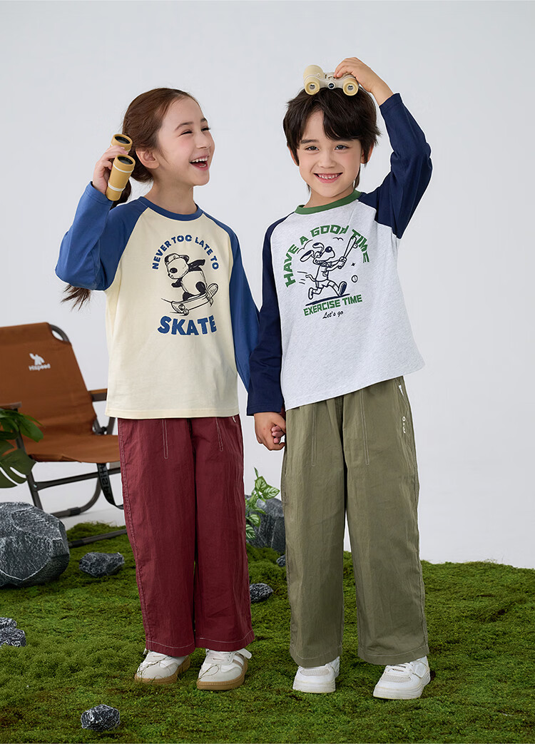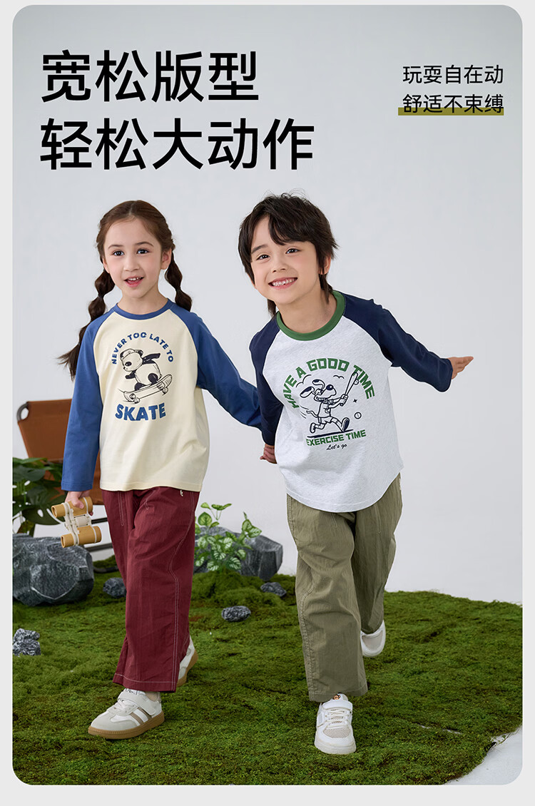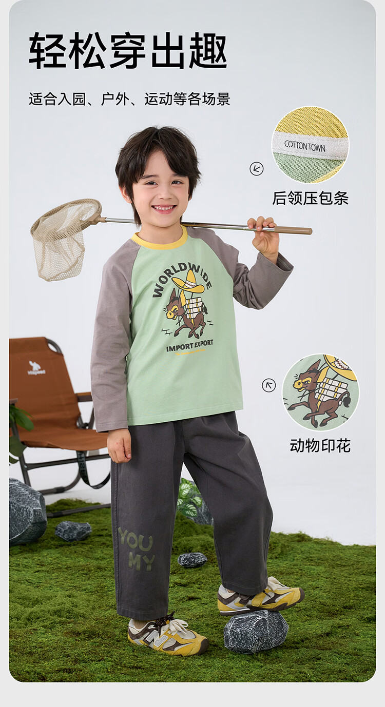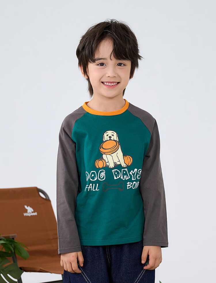 棉花堂【100%棉】棉花堂儿童长袖T恤纯棉男童打底衫女童上衣春秋2件装T 组合四:果绿、灰桔 130