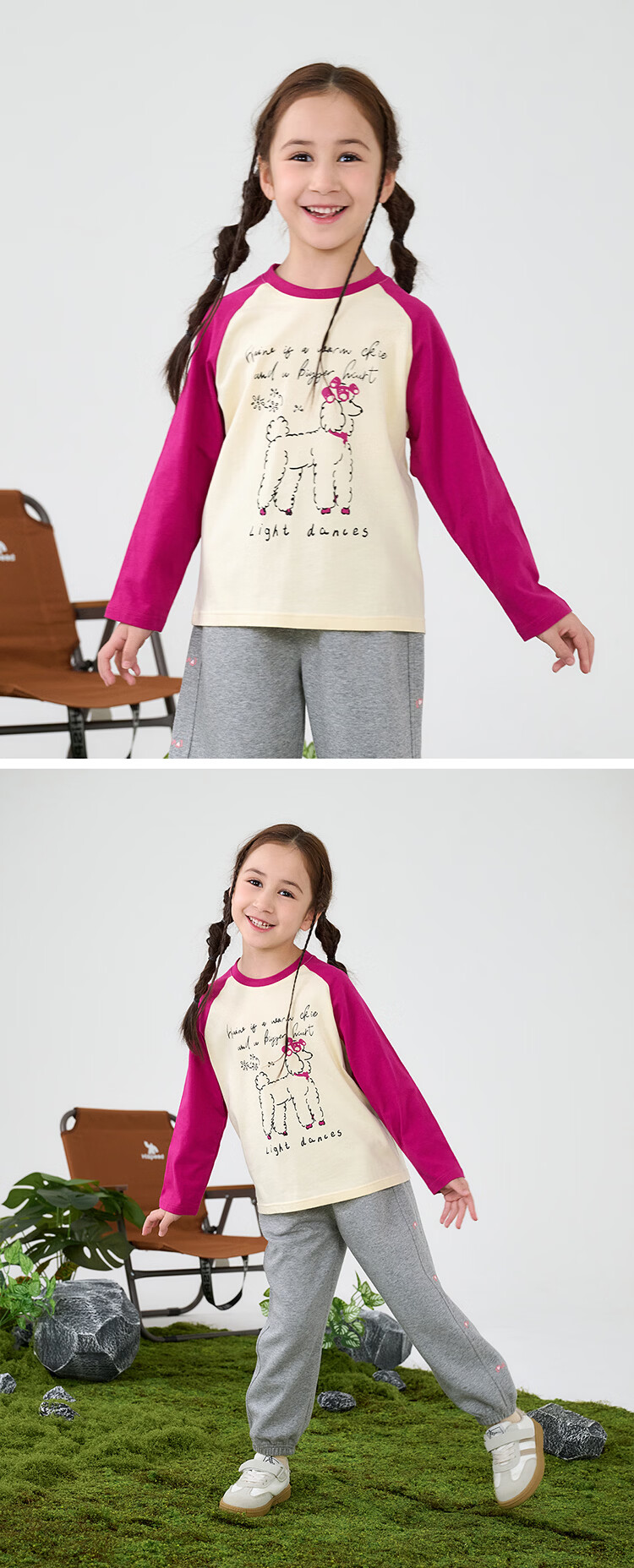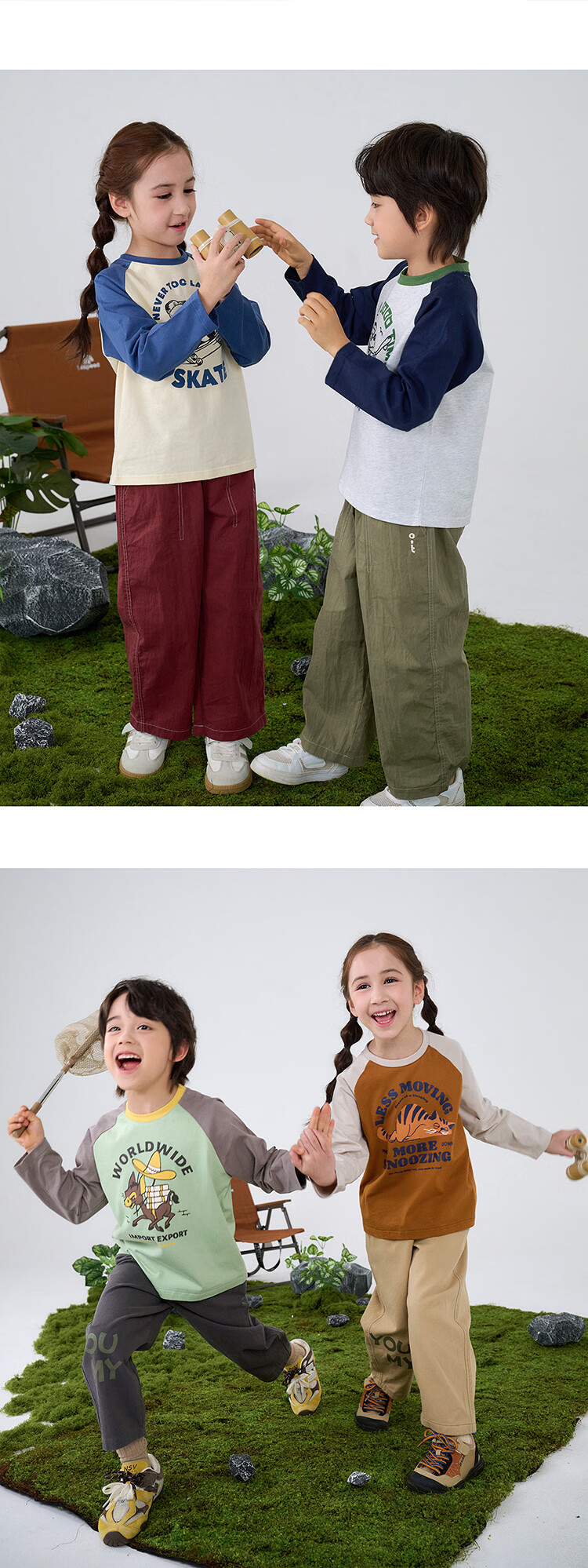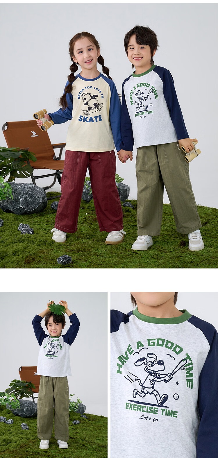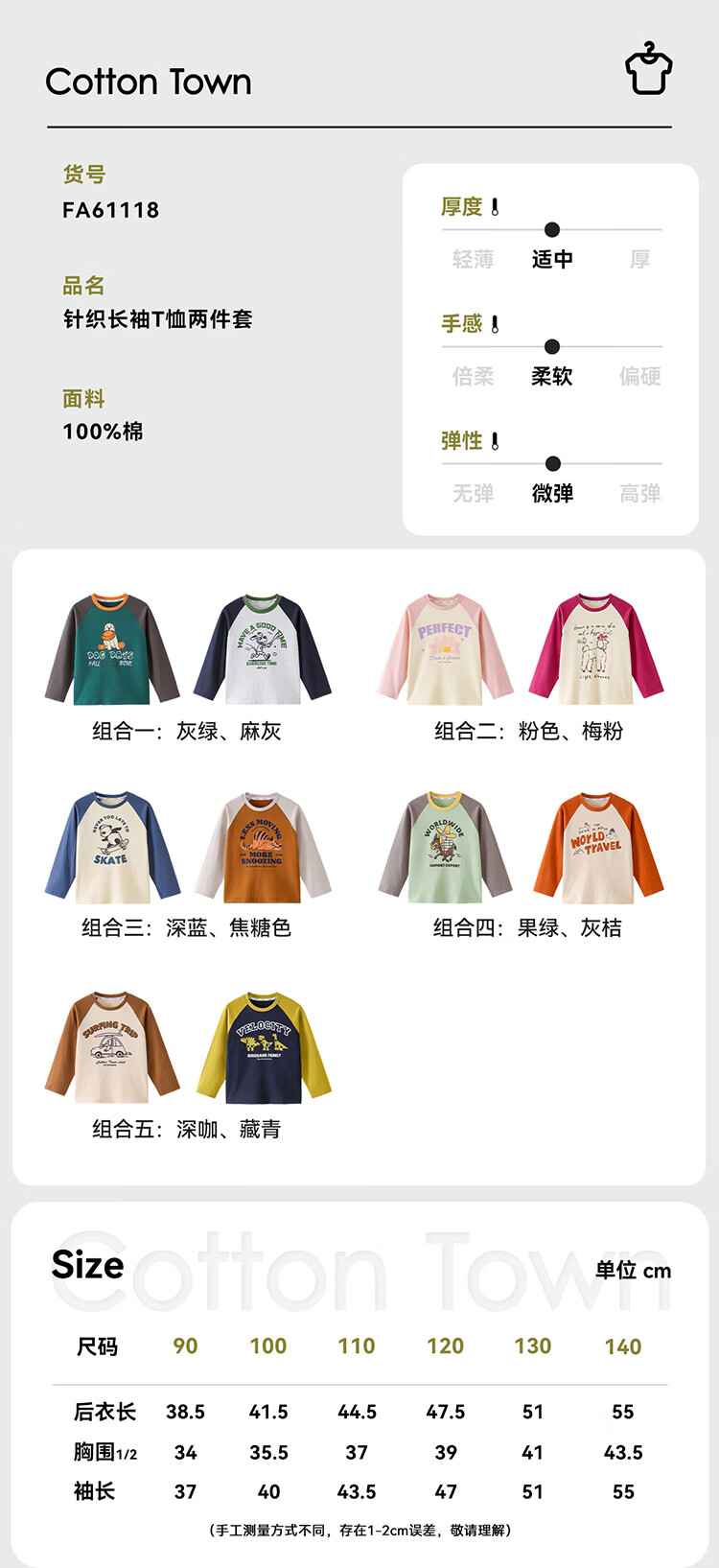 棉花堂【100%棉】棉花堂儿童长袖T恤纯棉男童打底衫女童上衣春秋2件装T 组合四:果绿、灰桔 130