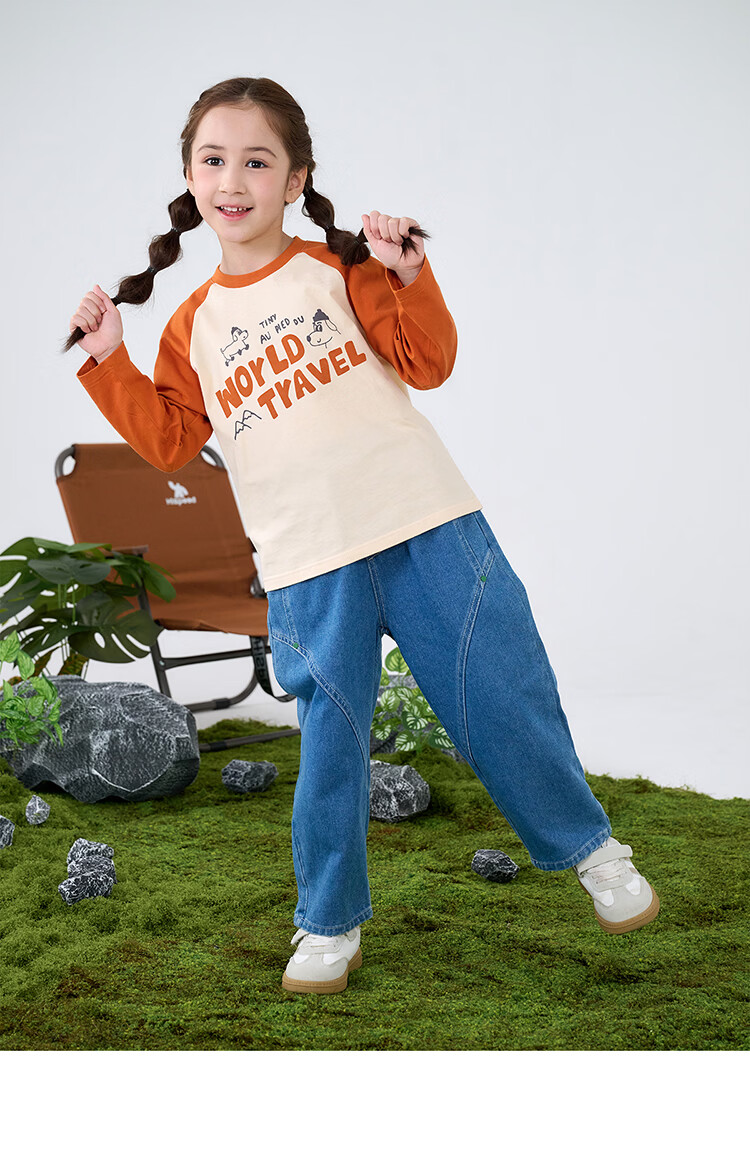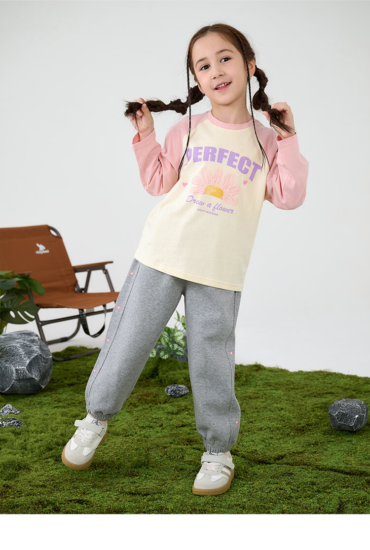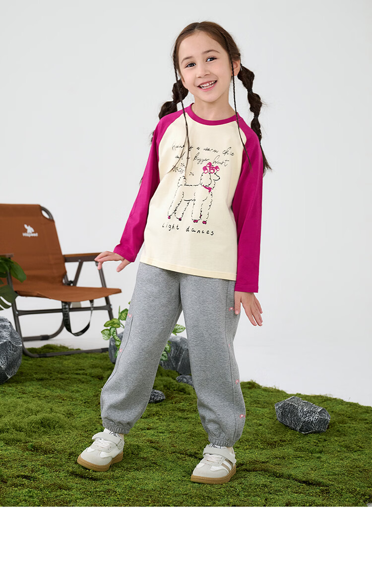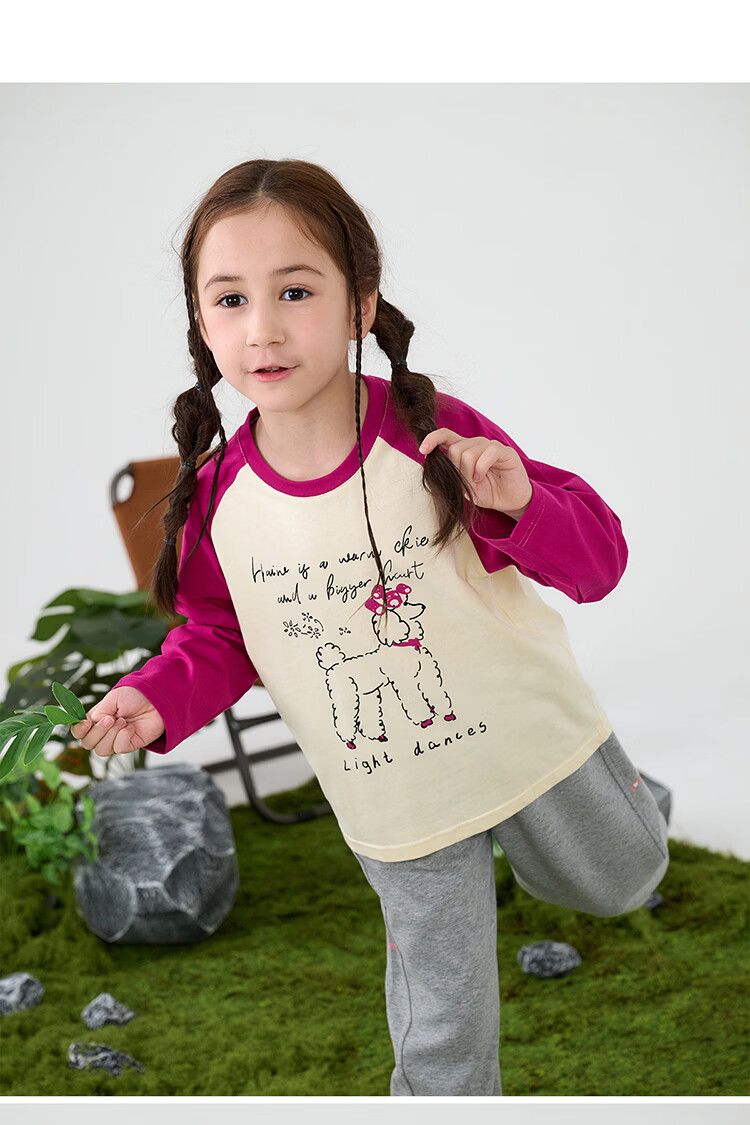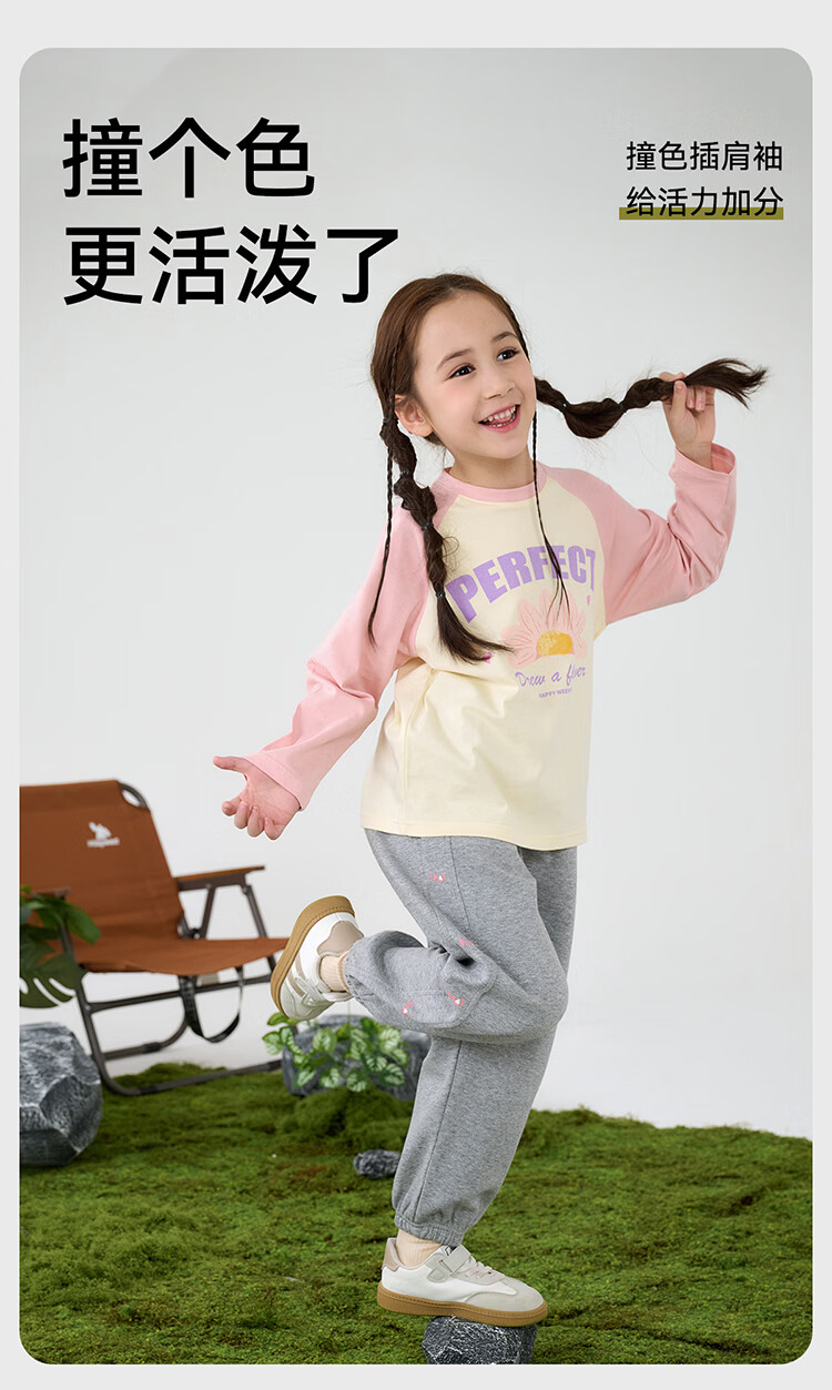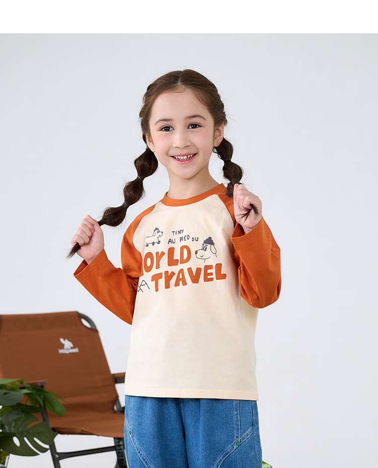 摩芭米mobami春秋女童T恤200g棉婴儿衣服纯棉T恤儿童宝宝插肩袖T恤 白色 130cm
