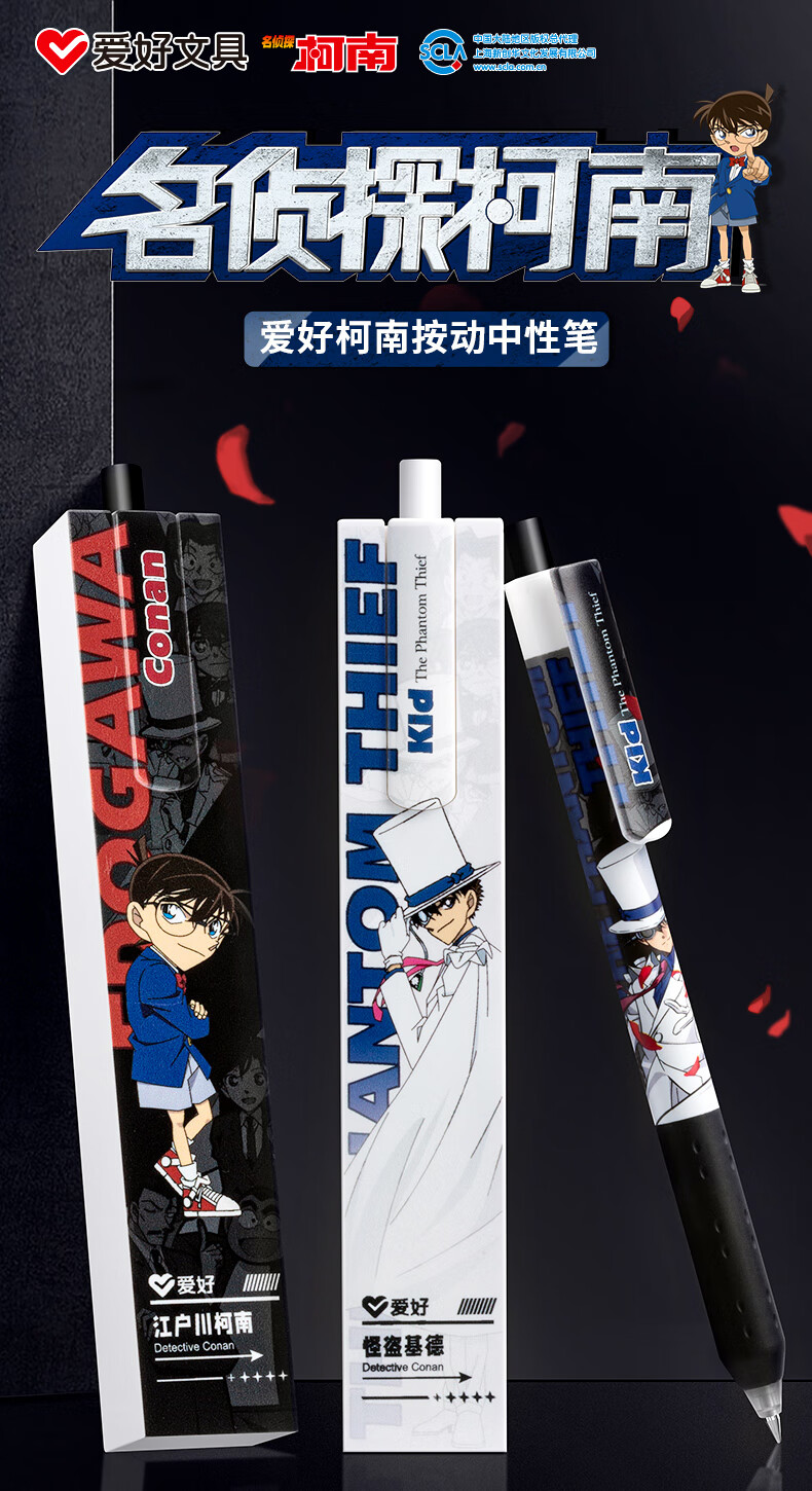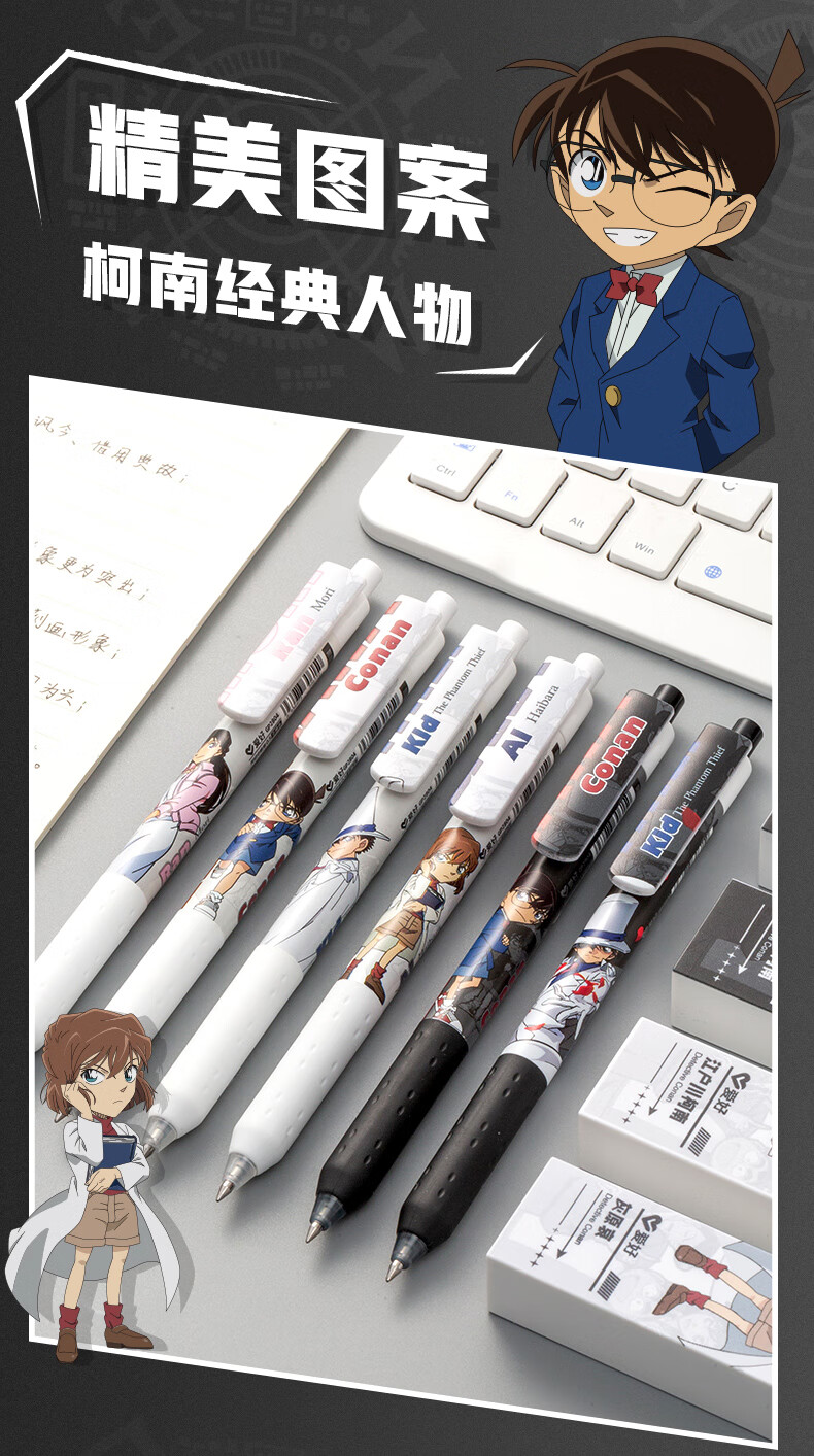爱好(AIHAO) 名侦探柯南IP联名限定笔按动中性笔子弹头0.5黑色拼图笔刷题笔签字笔GP2804 新款柯南+新款基德【后盖打开有惊喜】