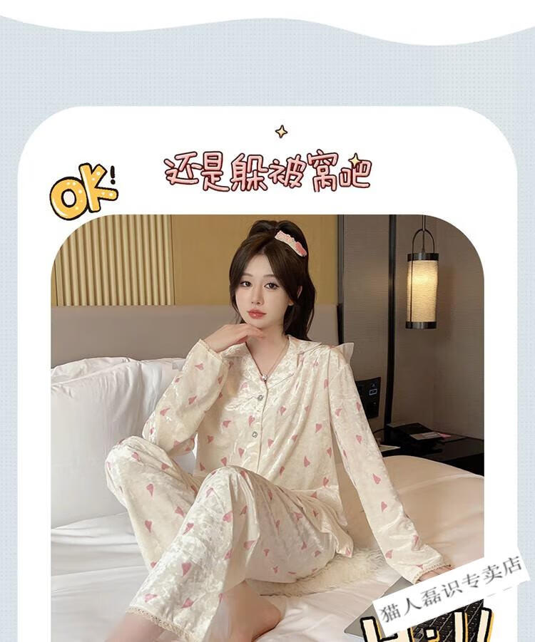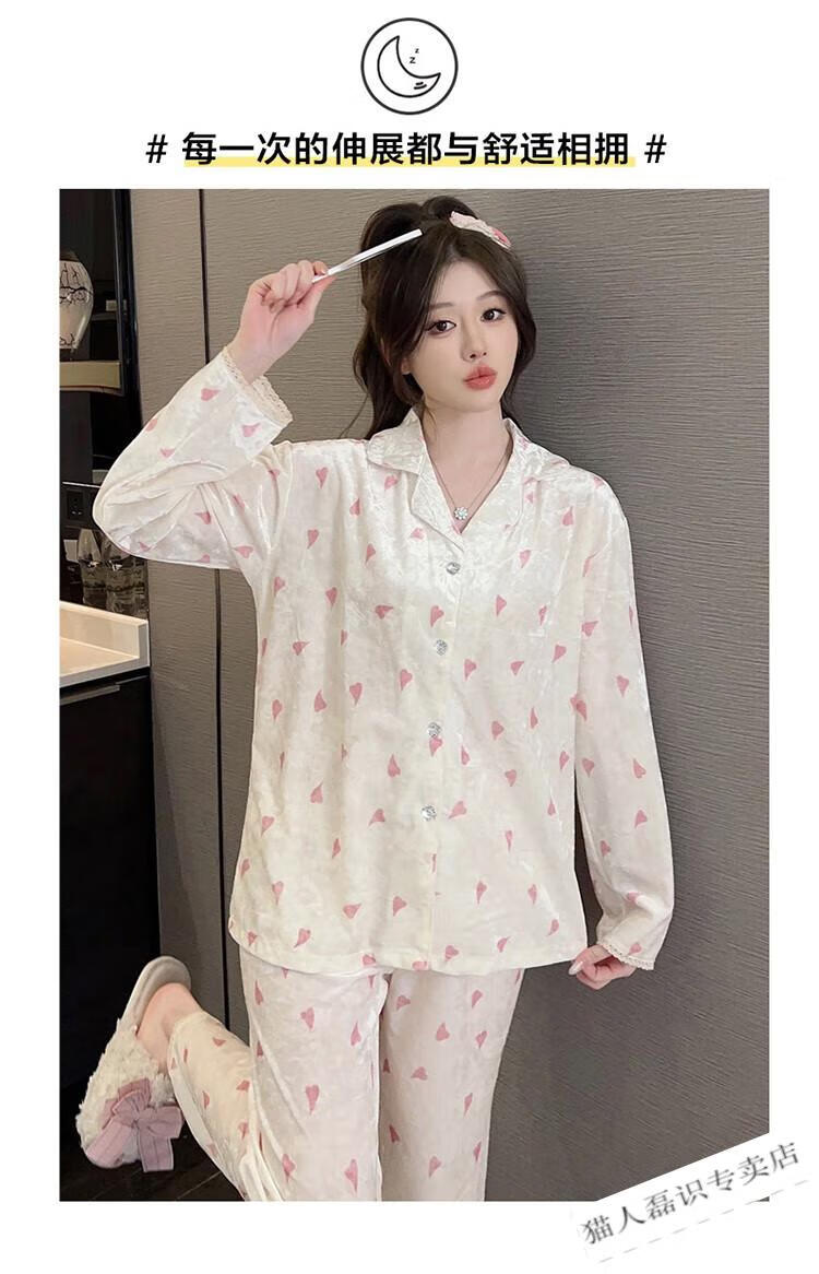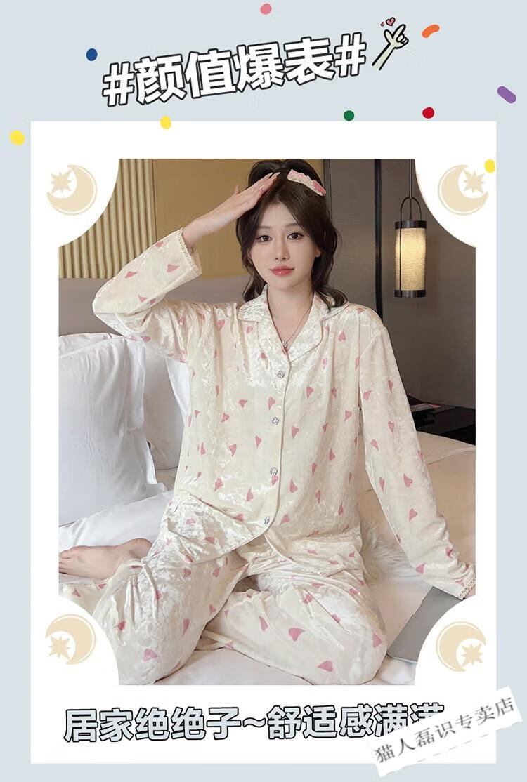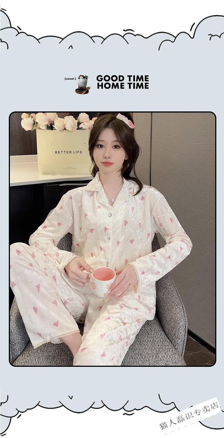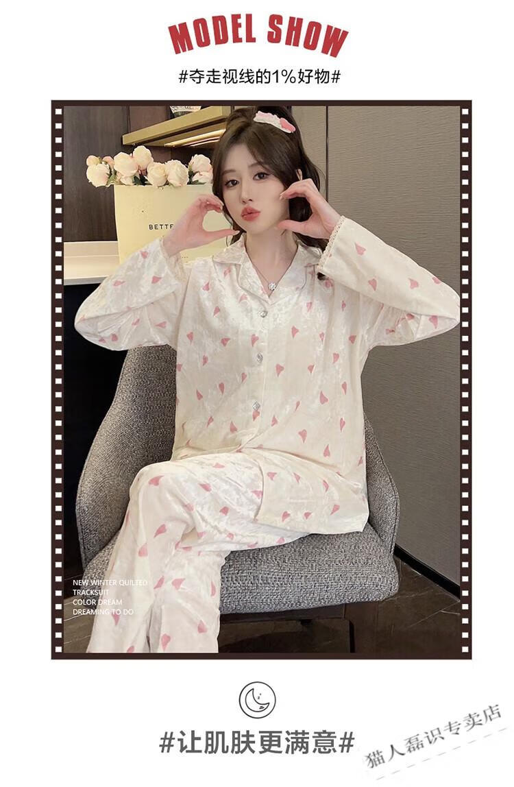 猫人(MiiOW)秋冬季长袖金丝绒睡衣女2026年新款可爱印花钻石绒家居服ins套装 HH-8906#爱心套装绒 M