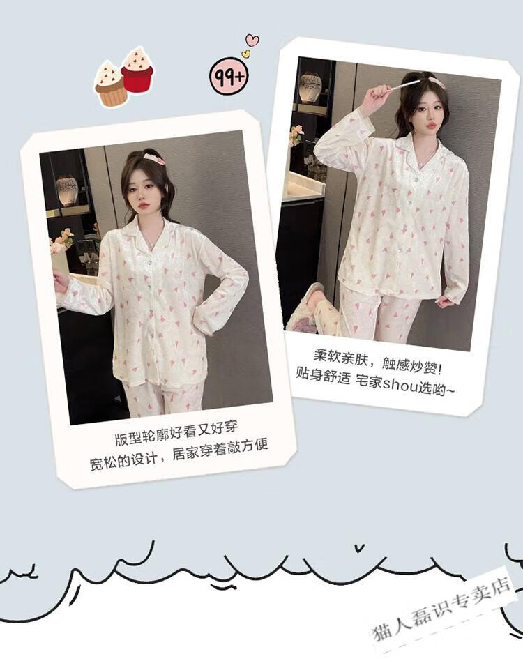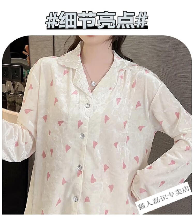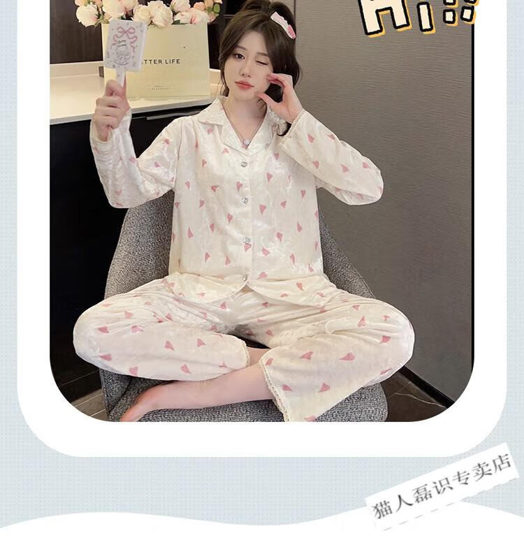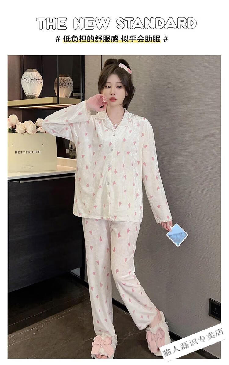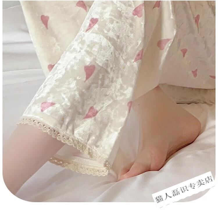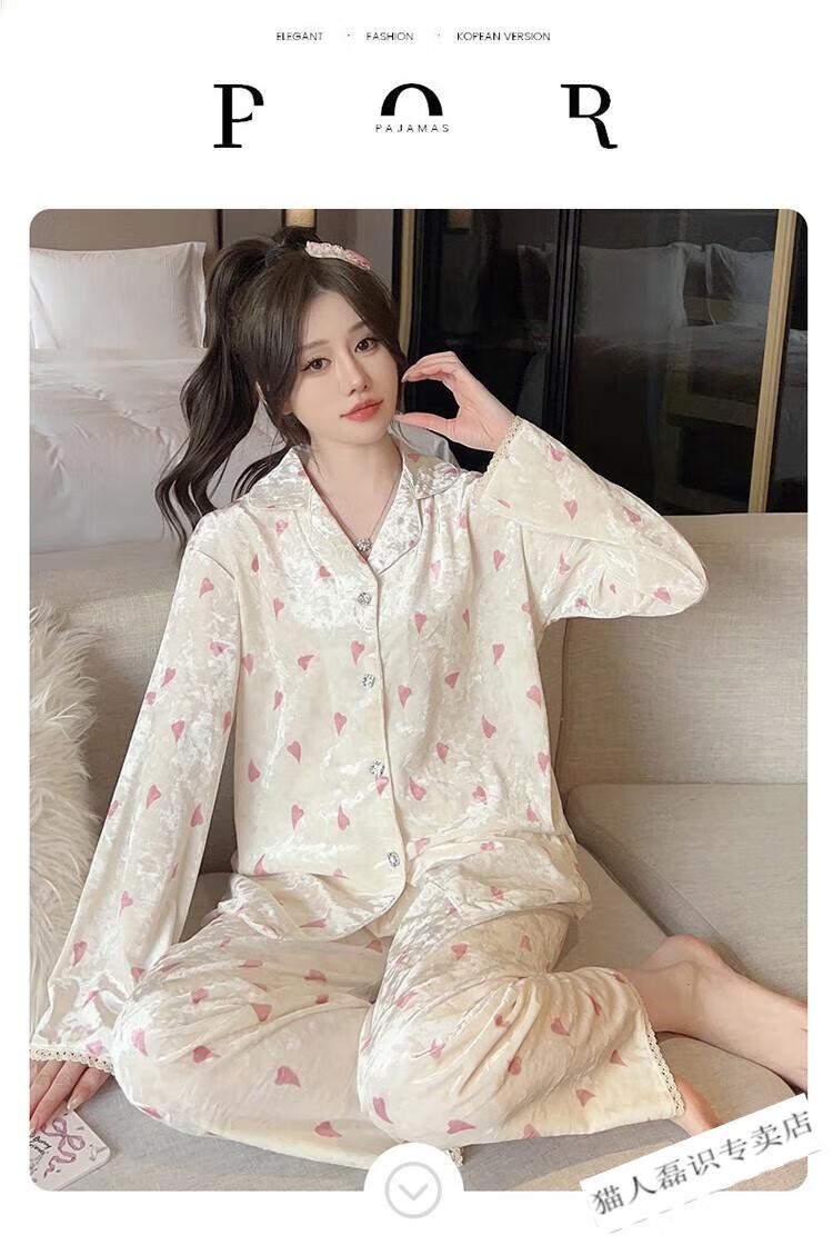 猫人(MiiOW)秋冬季长袖金丝绒睡衣女2026年新款可爱印花钻石绒家居服ins套装 HH-8906#爱心套装绒 M