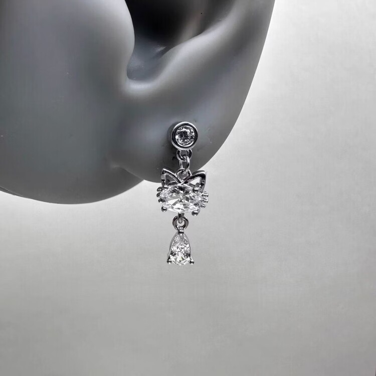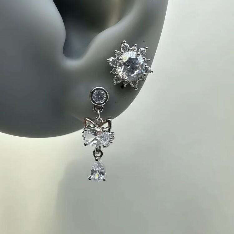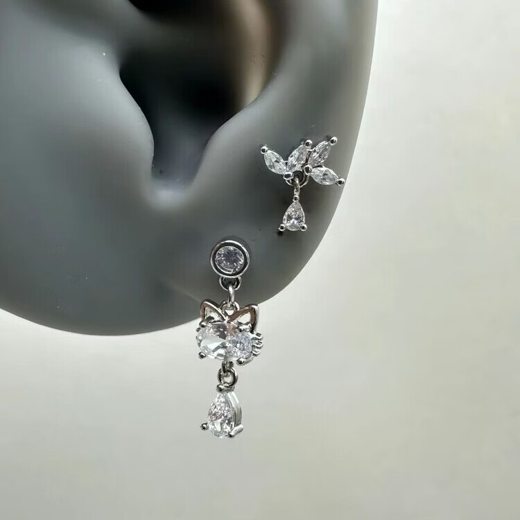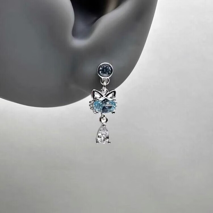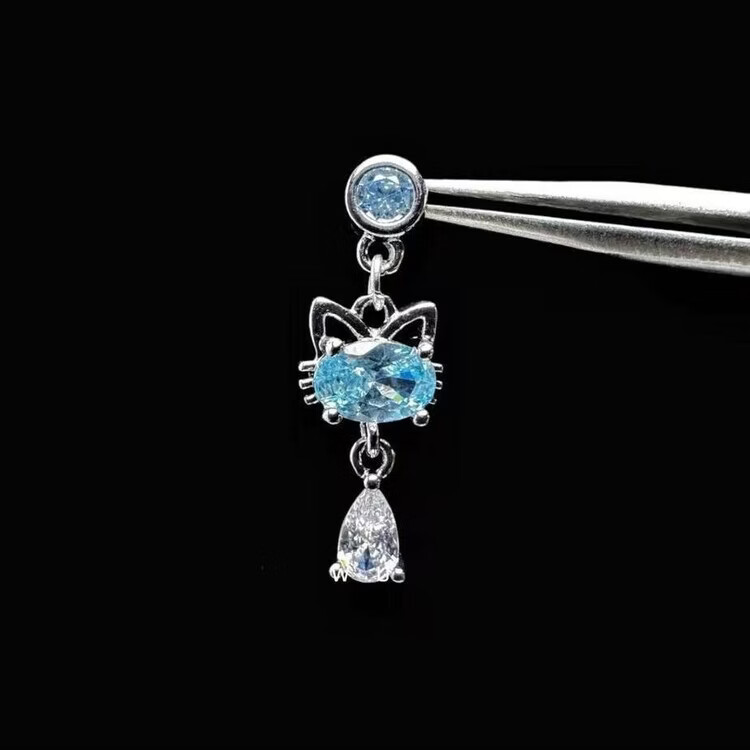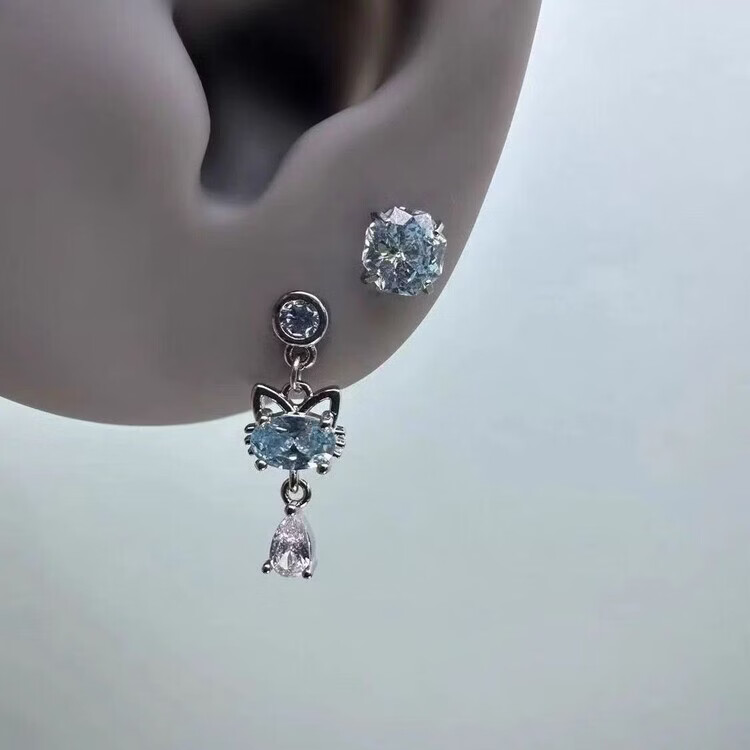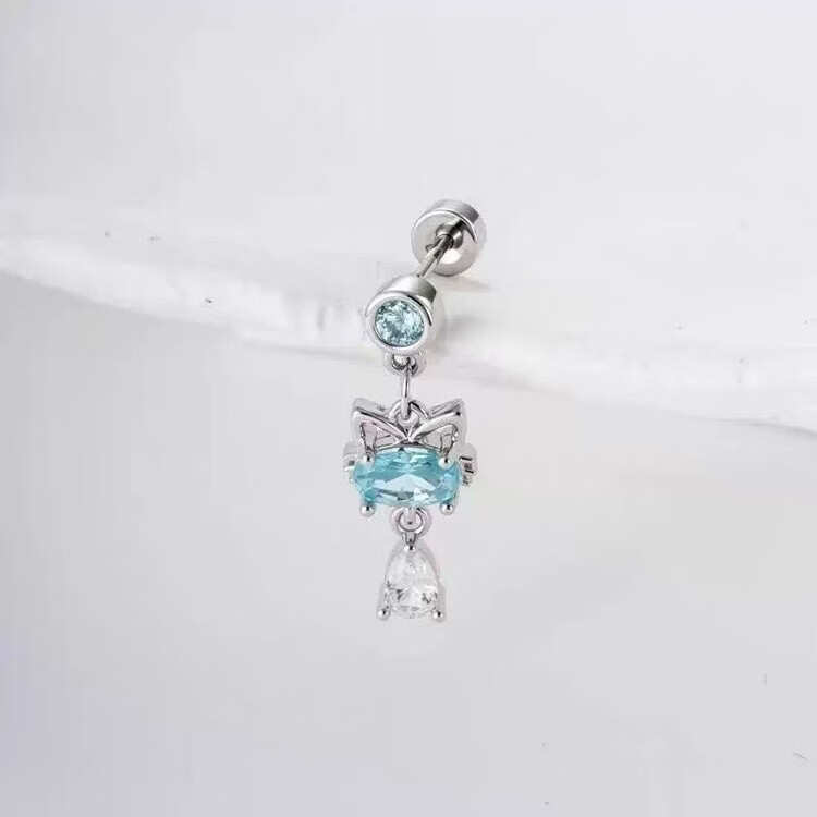KZD老凤凰Vintage古着灵猫钛钢耳骨钉小众设计独特ins风猫咪吊坠耳饰 灵猫钛钢螺旋钉【一对】蓝色