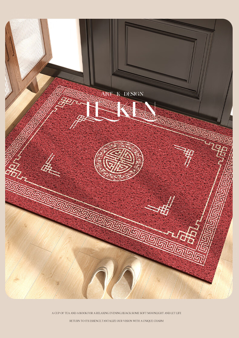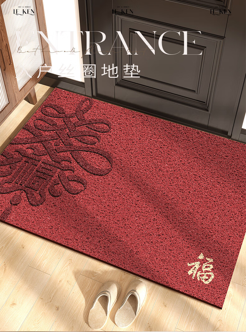 迎菲高档入户门地垫脚垫2026年新款门垫进门口地垫红色喜庆玄关地垫 四季有时-丝圈地垫 120cm*120cm