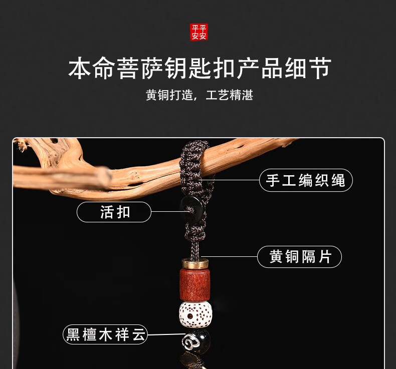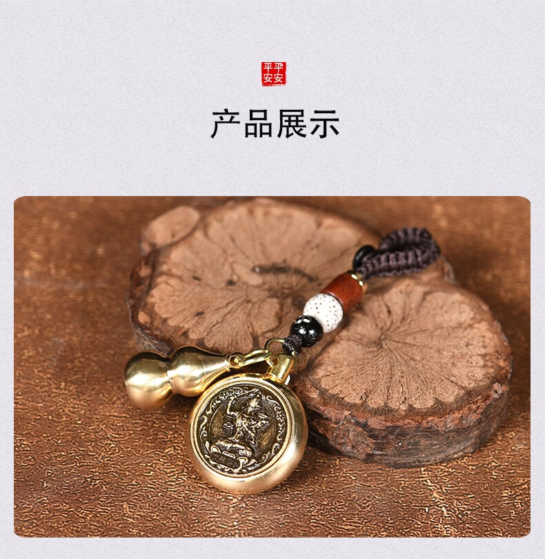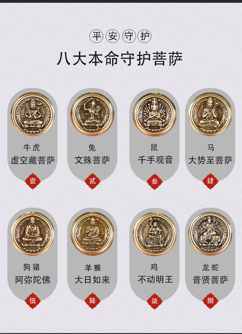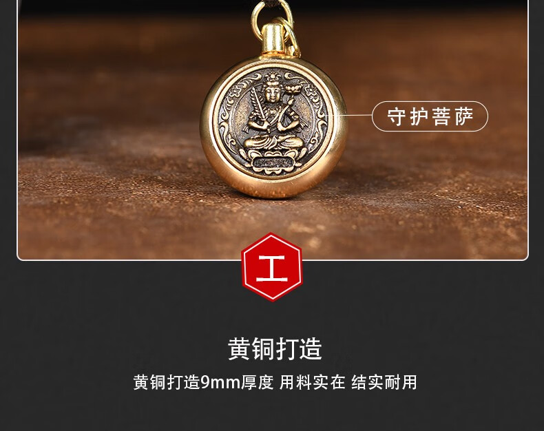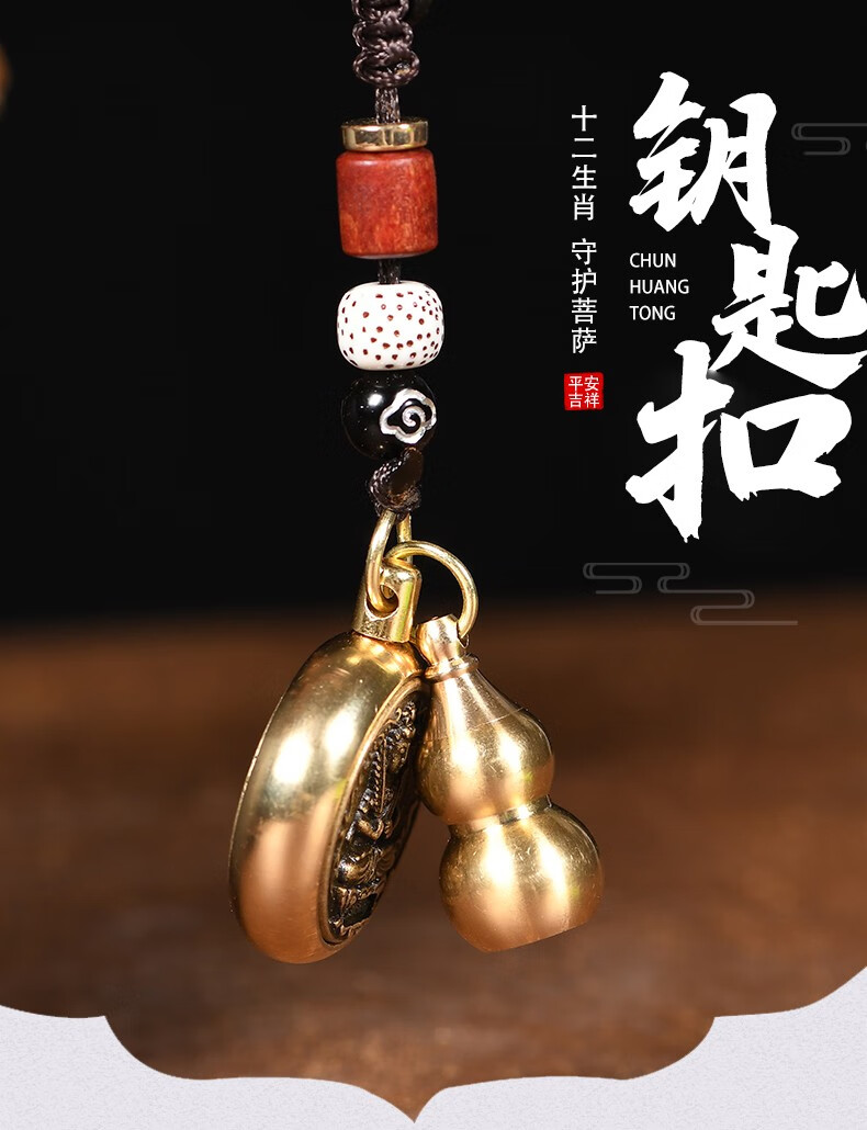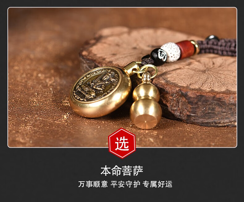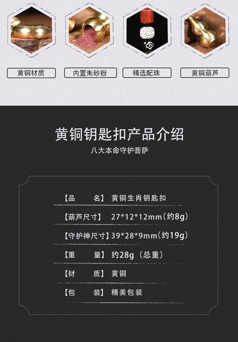 京莹朱砂粉本命佛十二生肖守护神黄铜转转钥匙扣本命年生日礼物男女友 【生肖狗猪-阿弥陀佛菩萨】 本命年守护+葫芦【内含朱砂粉】