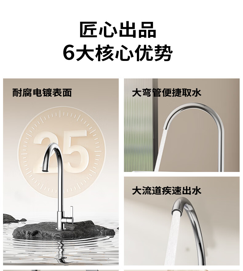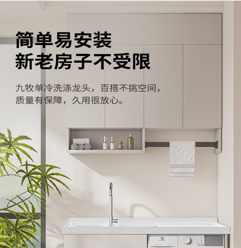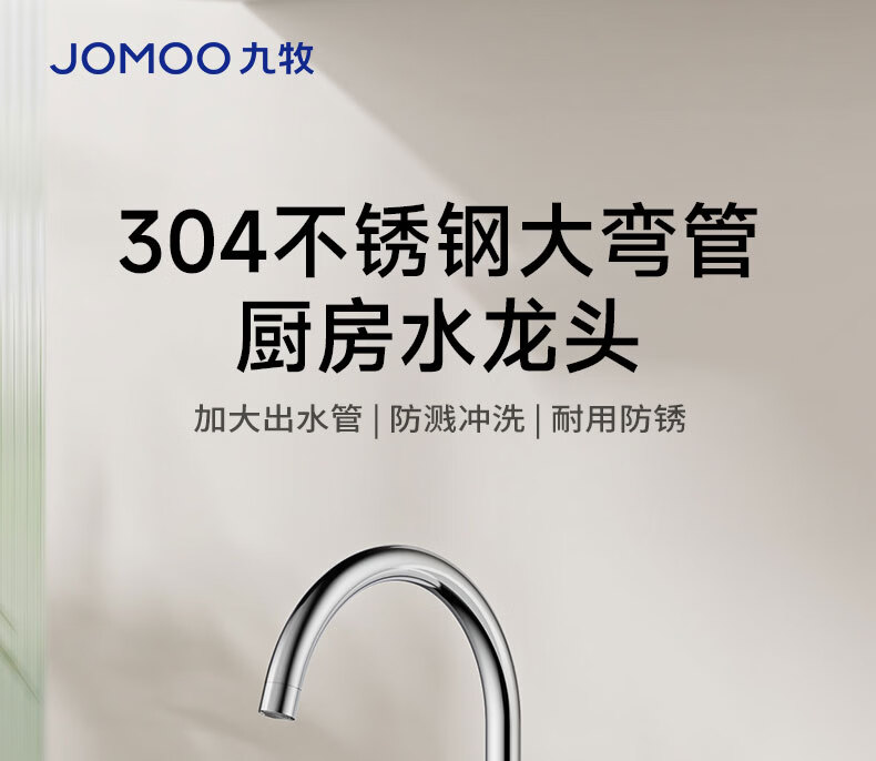 九牧龙头厨房水槽龙头洗菜盆单冷快开万向旋转加高弯管单冷龙头77038