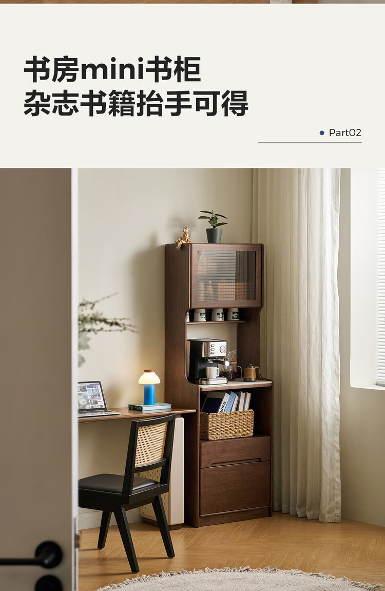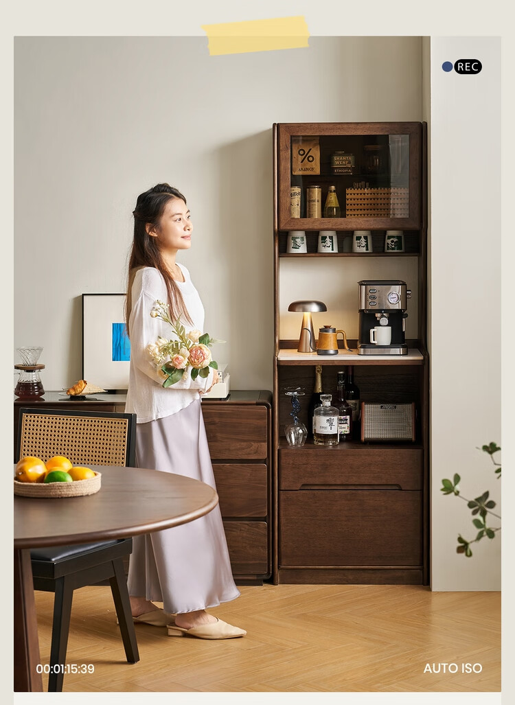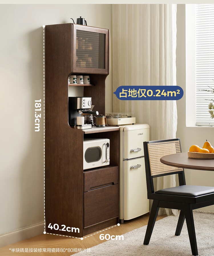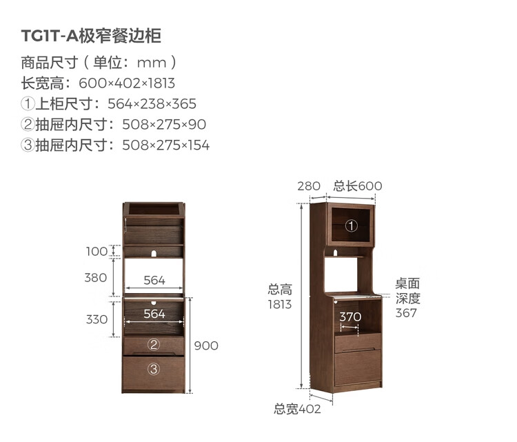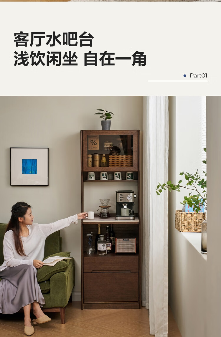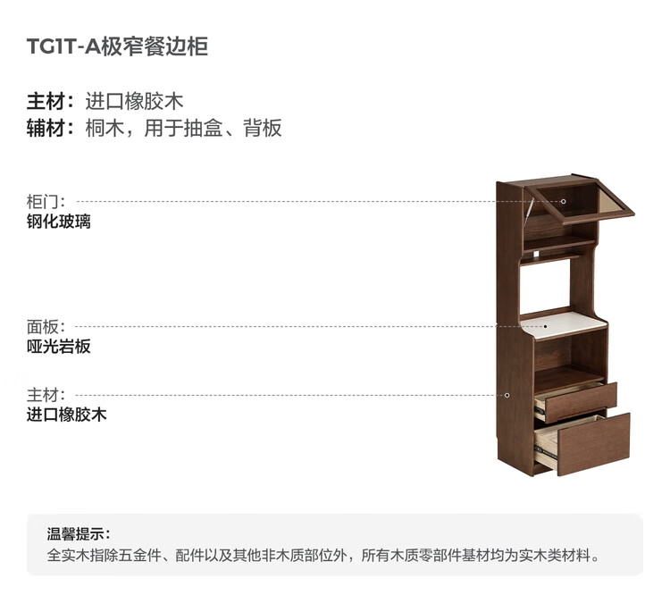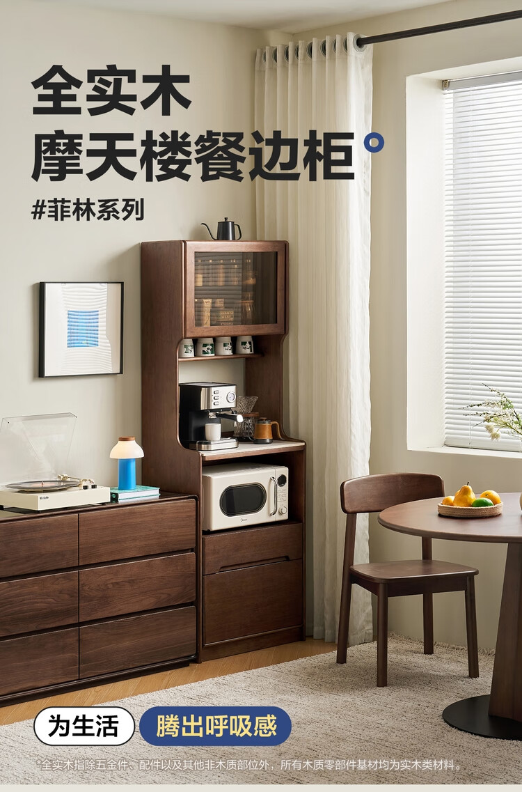 林氏家居实木餐边柜靠墙一体置物柜窄茶水柜客厅收纳木业菲林系列TG1T 【0.6m|胡桃色】极窄实木餐边柜