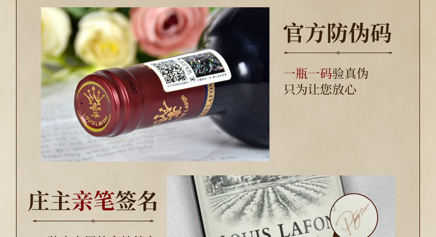 LAYLA【法国蕾拉】进口红酒14度AOP级老藤干红葡萄酒750mlX6支礼盒装