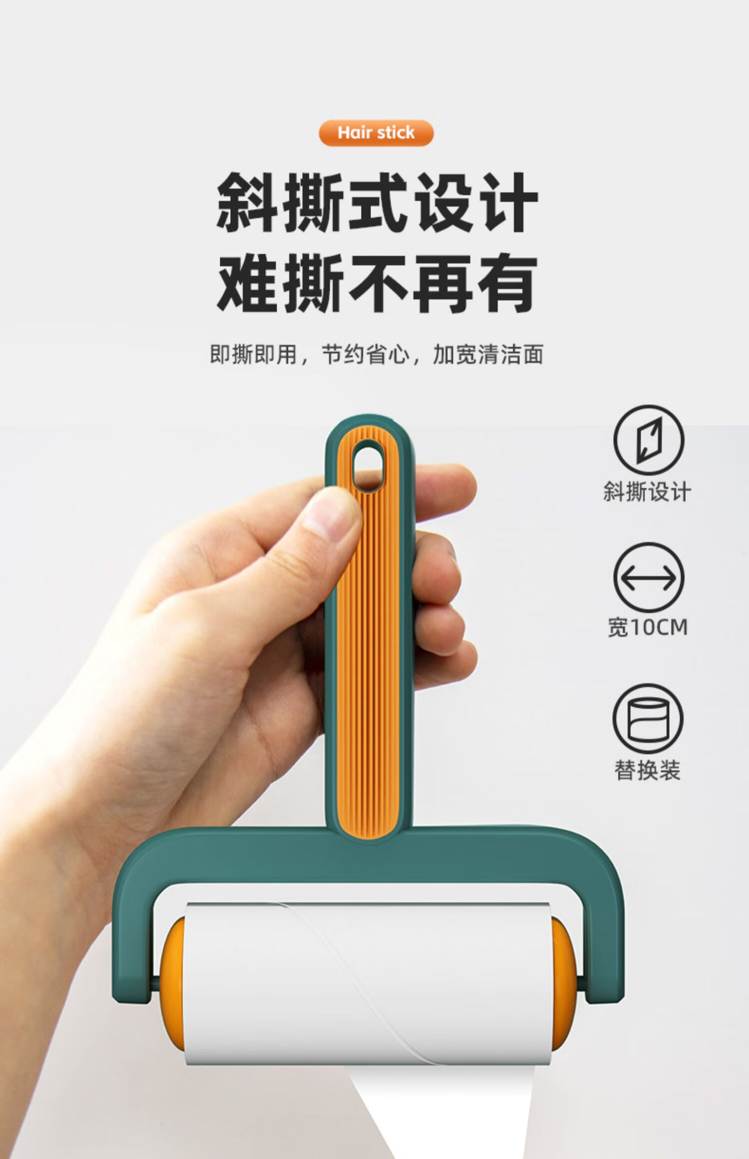 初舍(CHUSHE)粘毛器10cm滚筒10卷纸600撕粘纸衣服沾毛神器毛刷宠物猫毛清理器