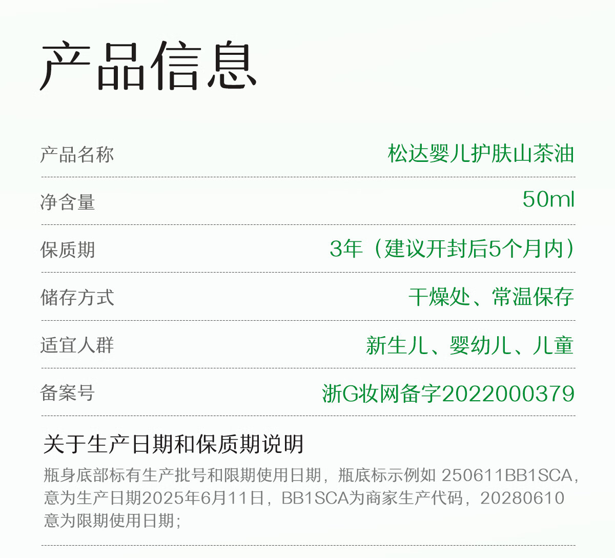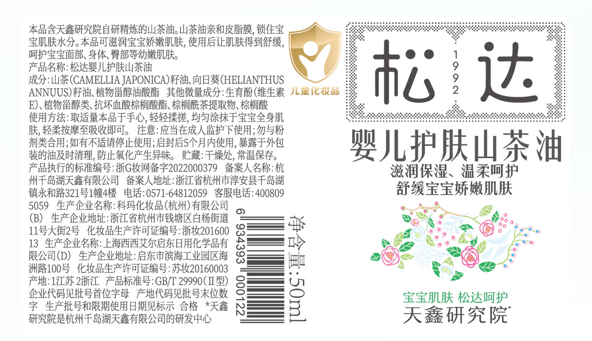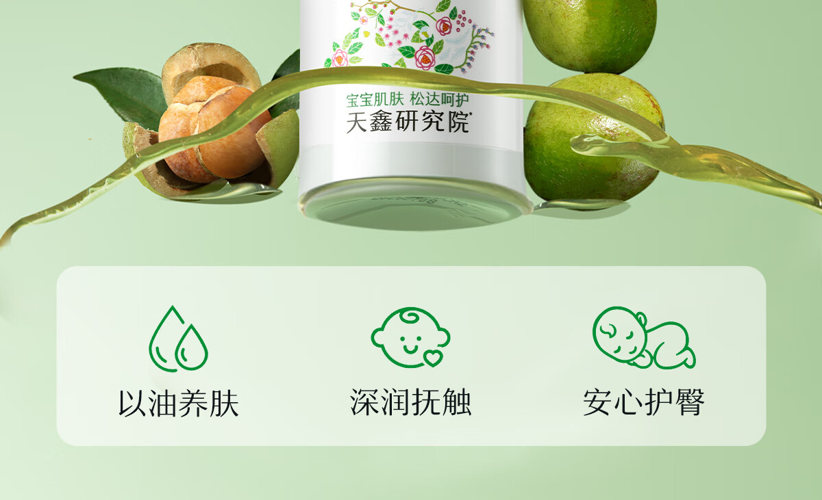 松达婴儿山茶油宝宝抚触油新生儿按摩润肤身体油护臀膏50ml