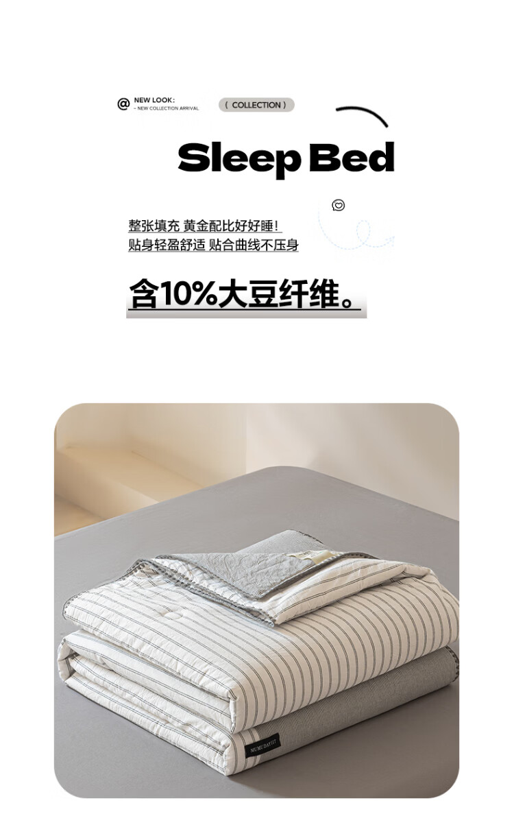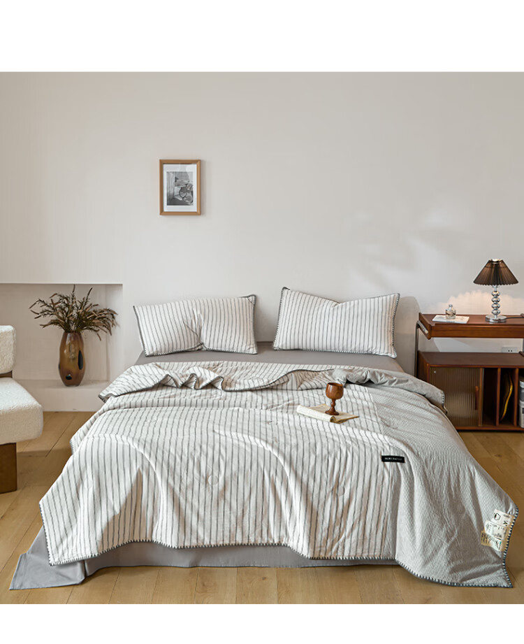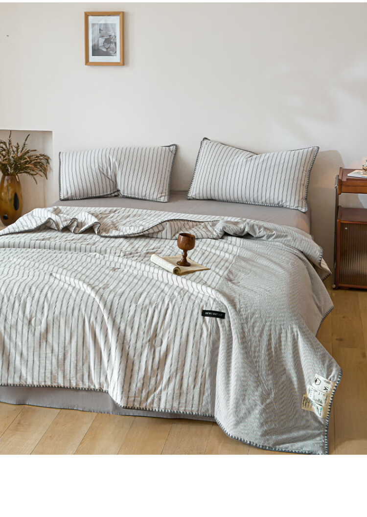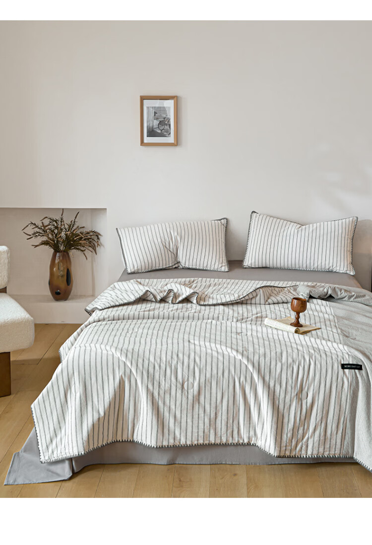 ROLAND LIVE夏被全棉色织水洗棉大豆被亲肤透气夏季薄被子A类空调被四件套 LH全棉水洗棉大豆夏被-条纹双拼木棉 单夏被150*200cm