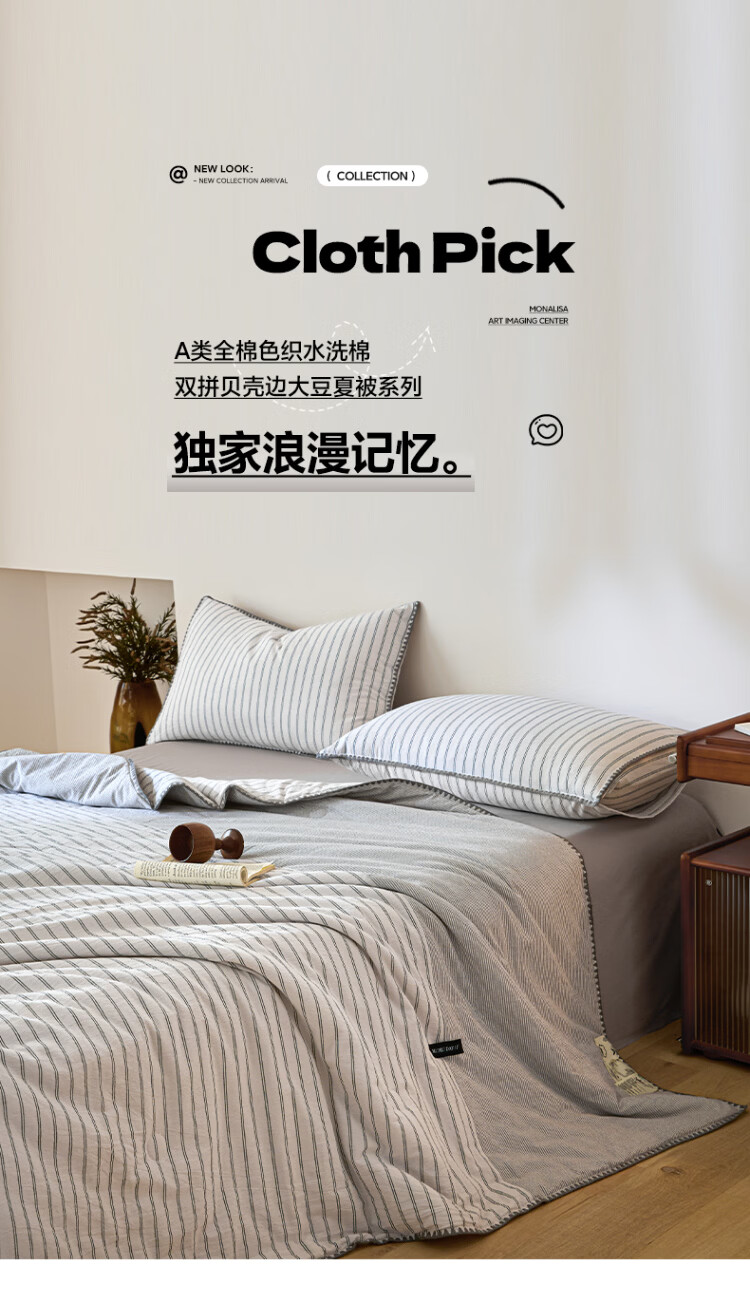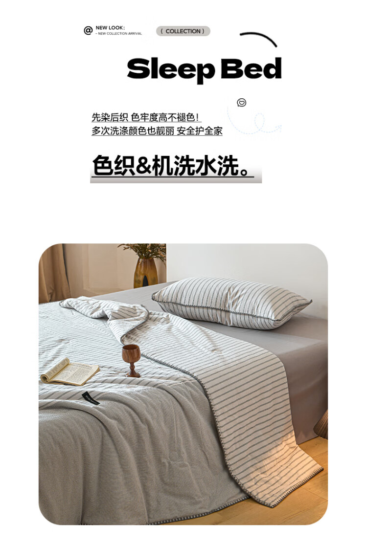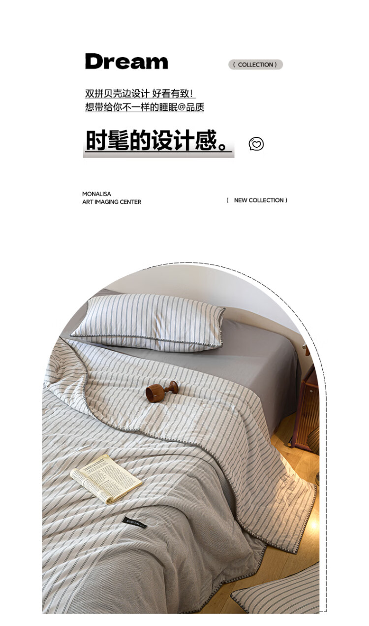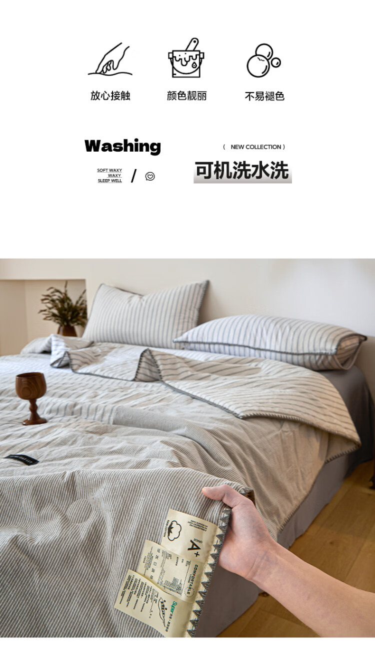 ROLAND LIVE夏被全棉色织水洗棉大豆被亲肤透气夏季薄被子A类空调被四件套 LH全棉水洗棉大豆夏被-条纹双拼木棉 单夏被150*200cm
