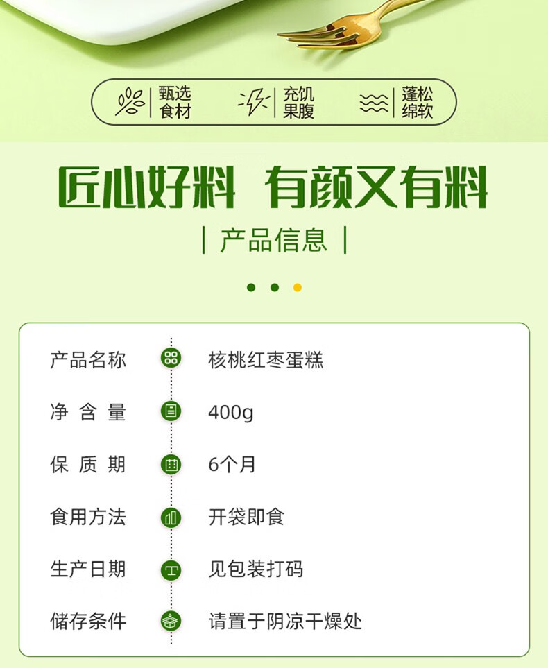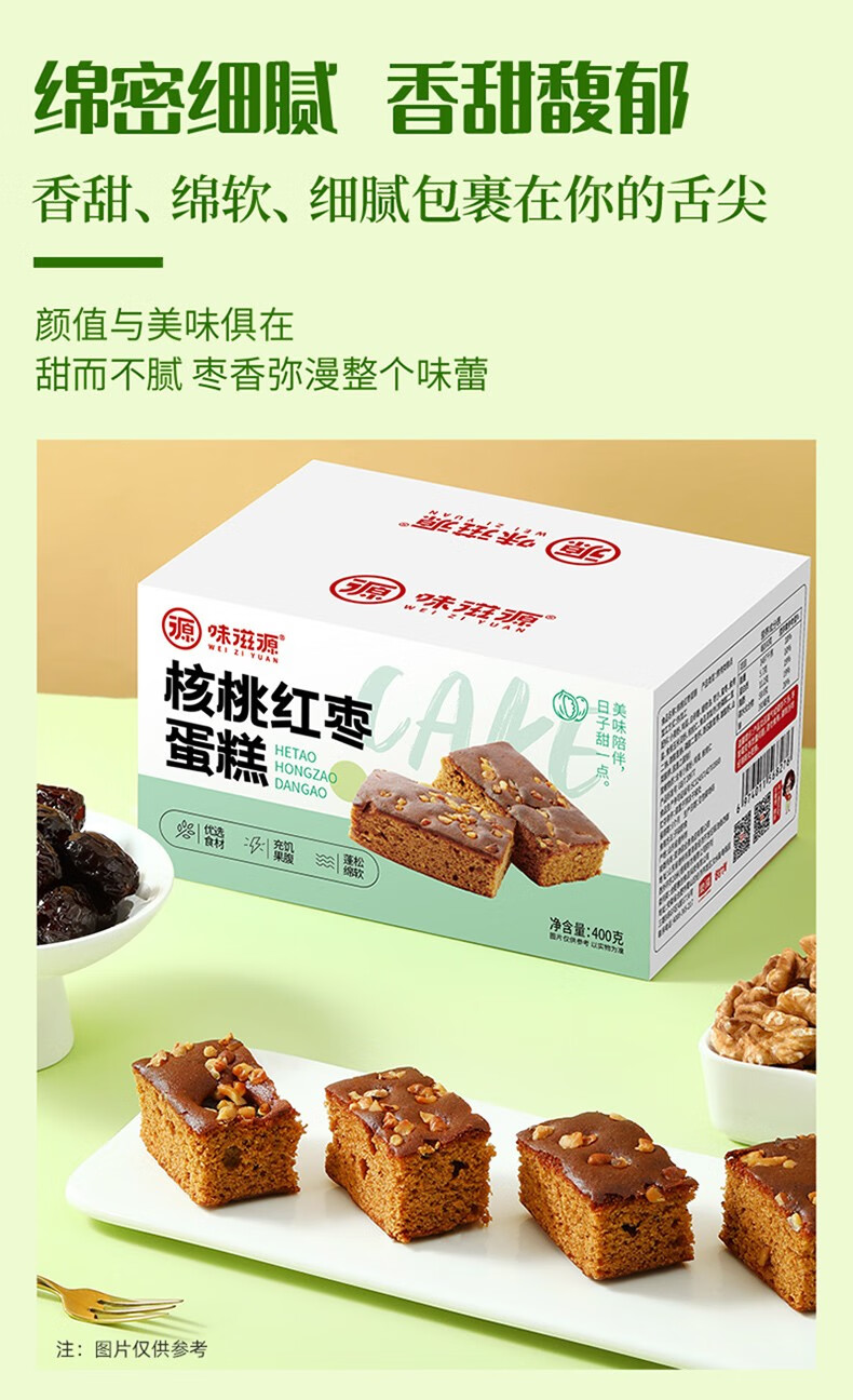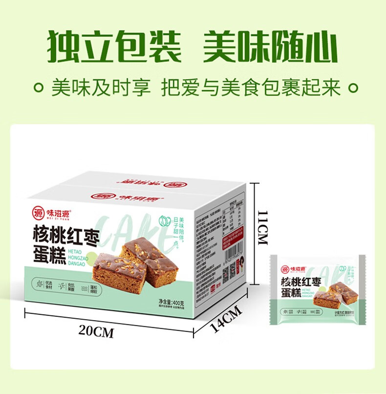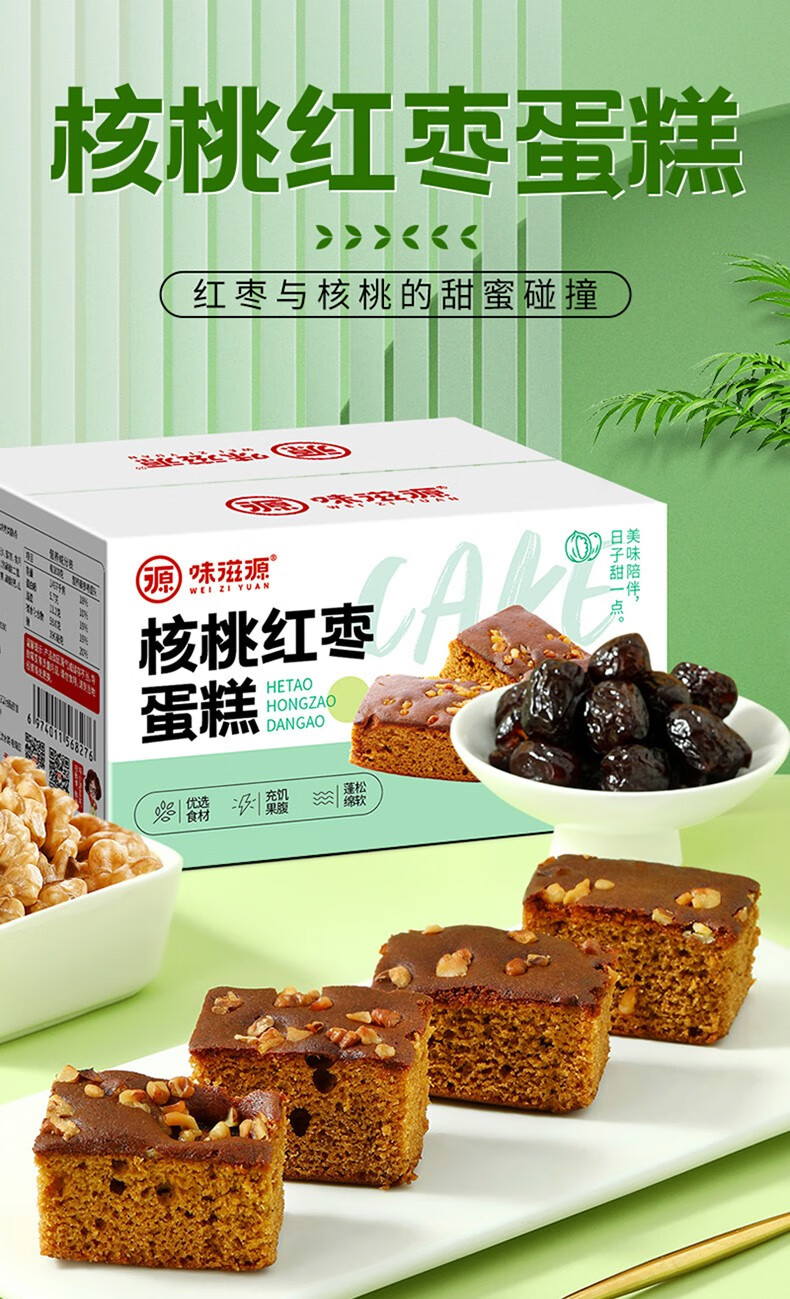 味滋源 核桃红枣蛋糕 红枣面包 营养早餐 传统糕点 手工枣糕 核桃红枣蛋糕400g/箱 2件