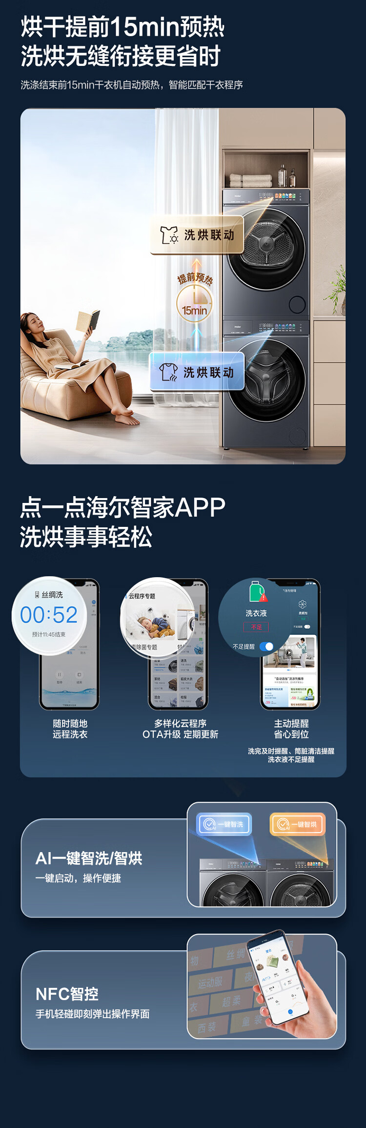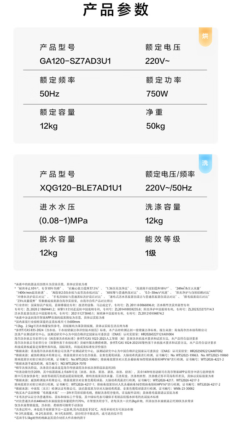 海尔(Haier)云溪5.0滚筒洗烘套装洗干套 全自动滚筒洗衣机+双擎热泵烘干机A直驱变频精华洗双效除菌 D1 王炸新品 云溪5.0 7AD1+7AD3 10公斤