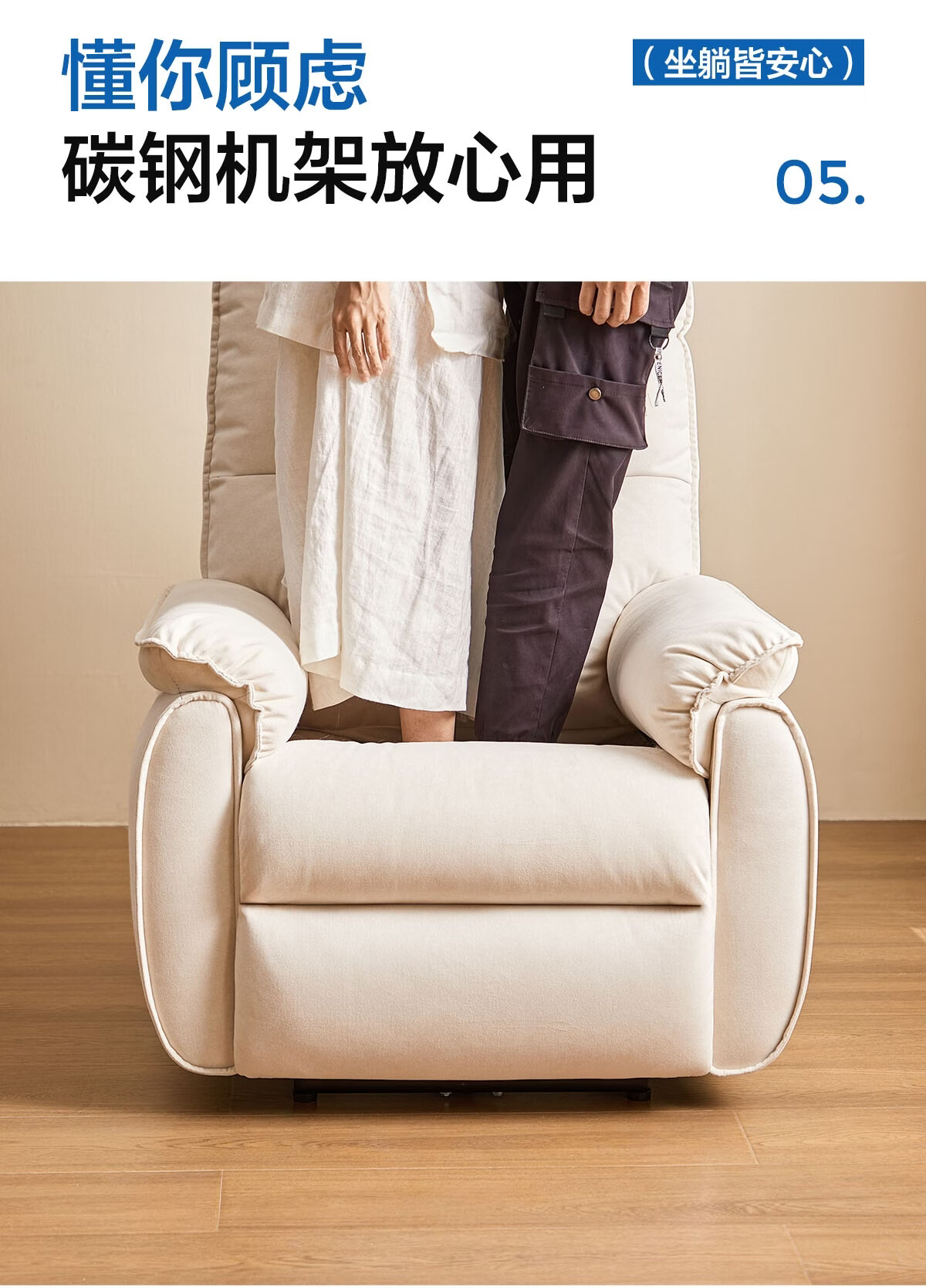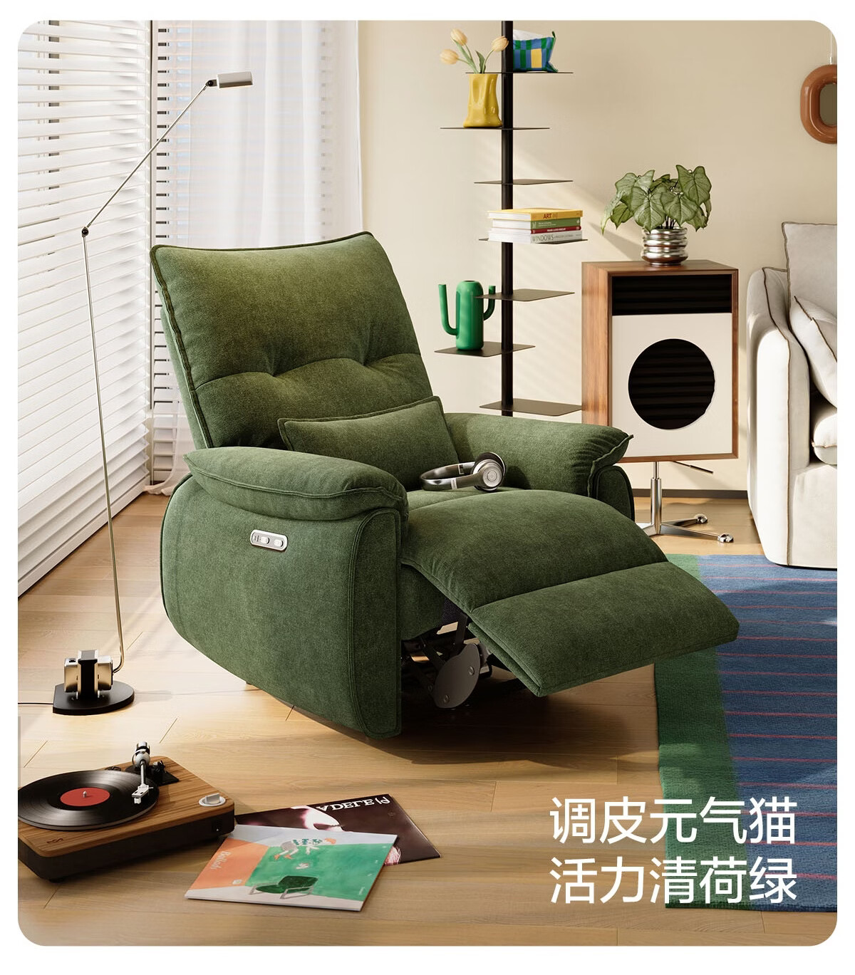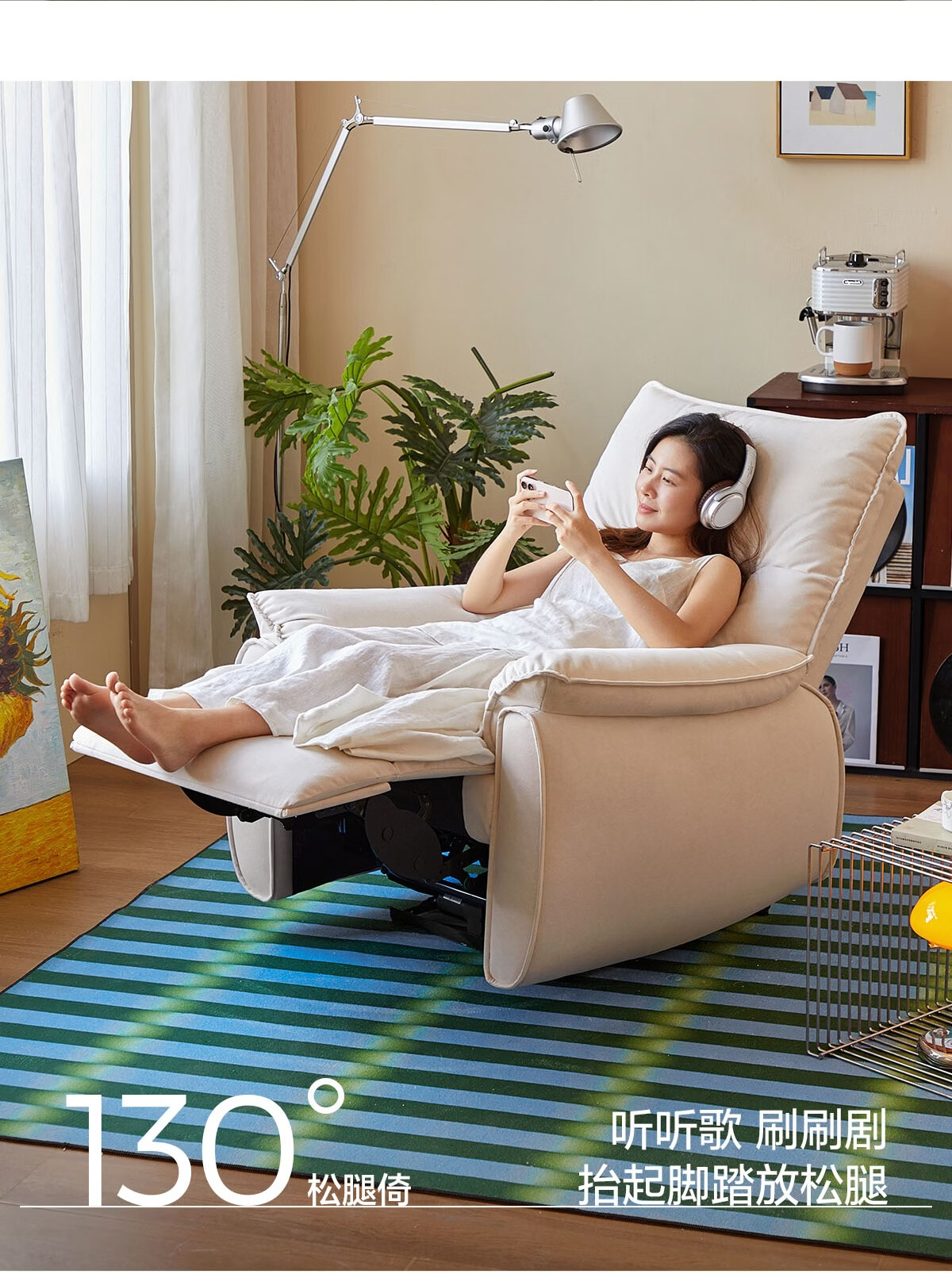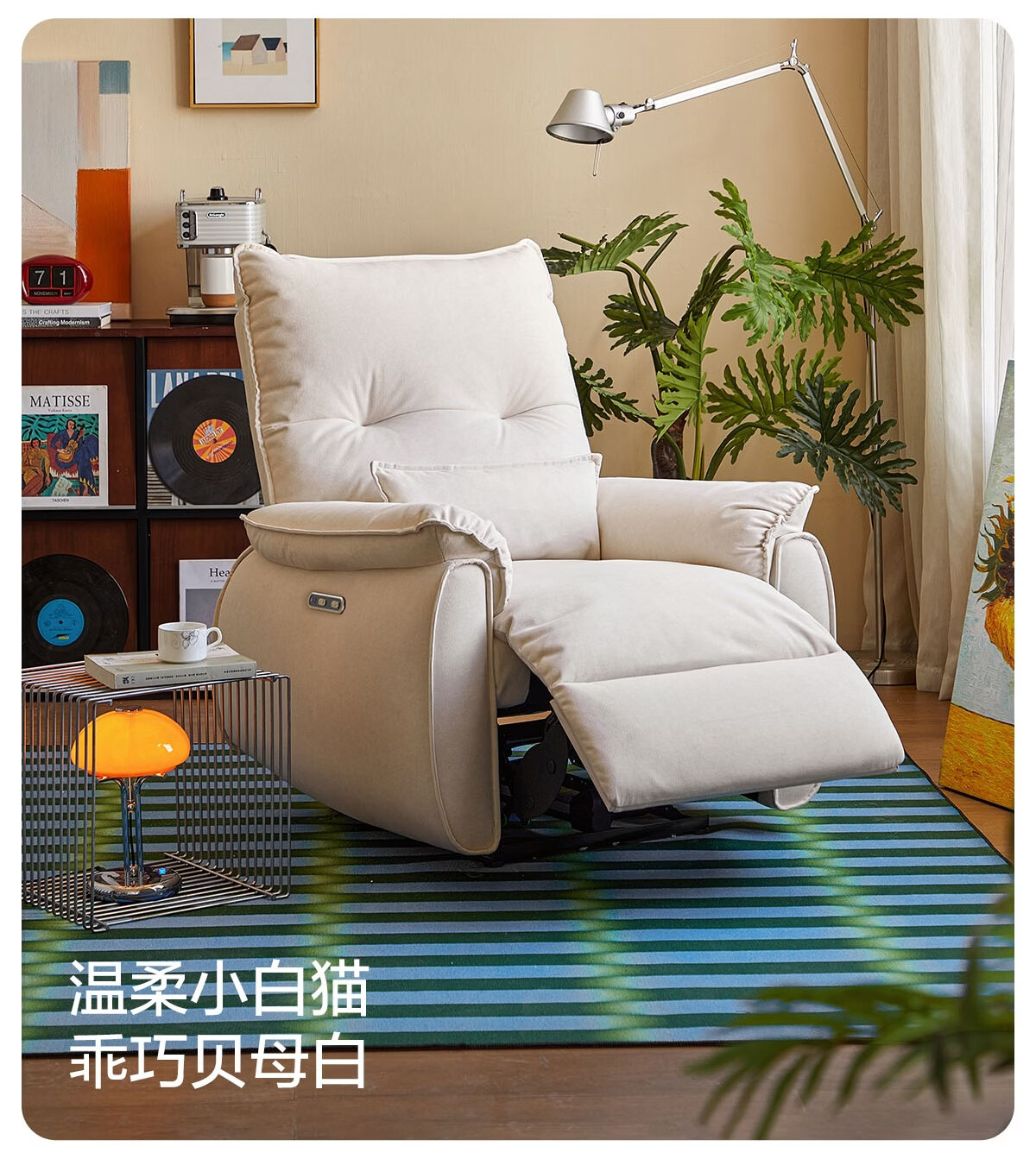 LINSY KIDS林氏家居布艺单人沙发电动多功能客厅摇摇椅懒人沙发椅可躺睡G164 (1)【12防猫抓布|手动躺+手动摇】贝母白
