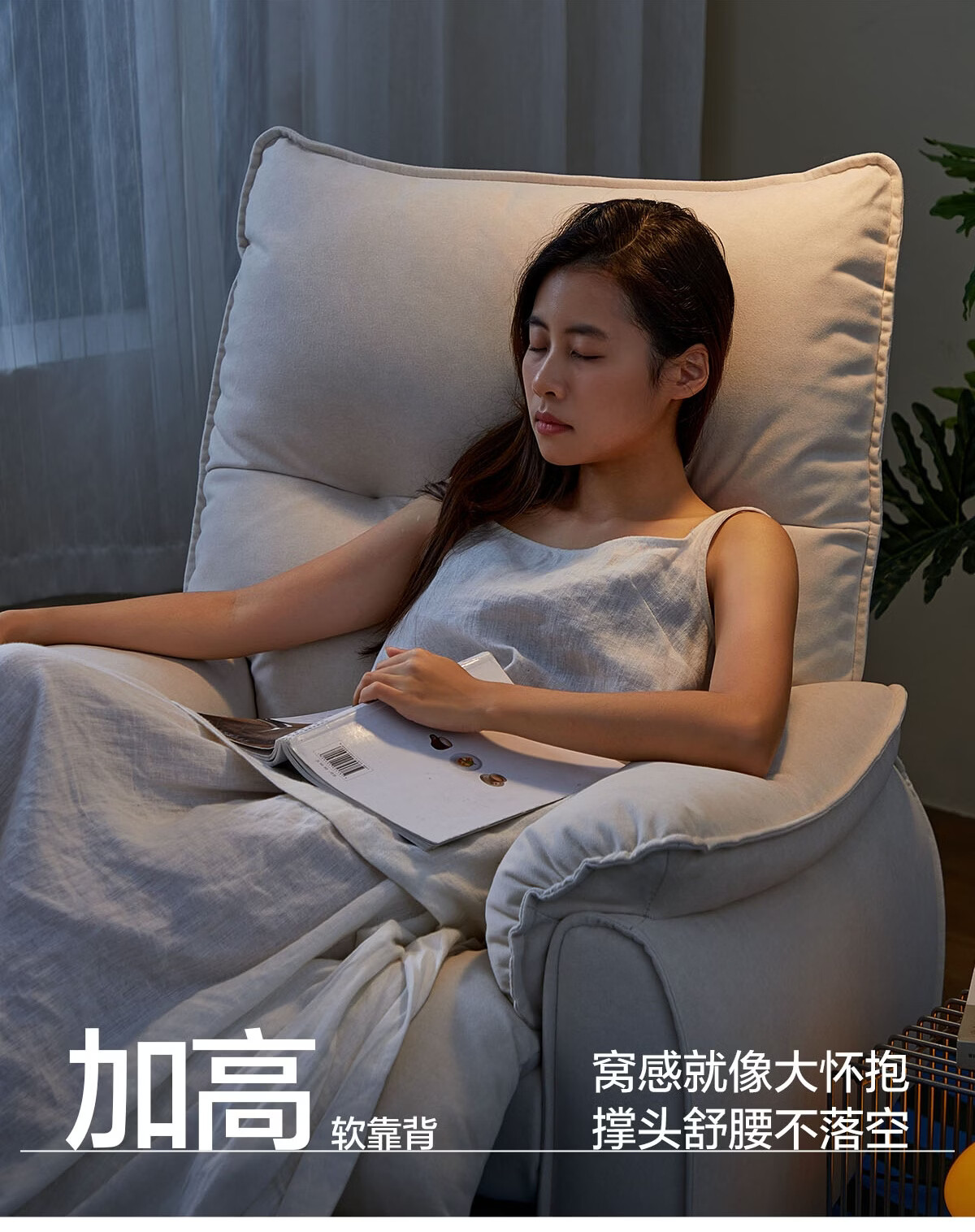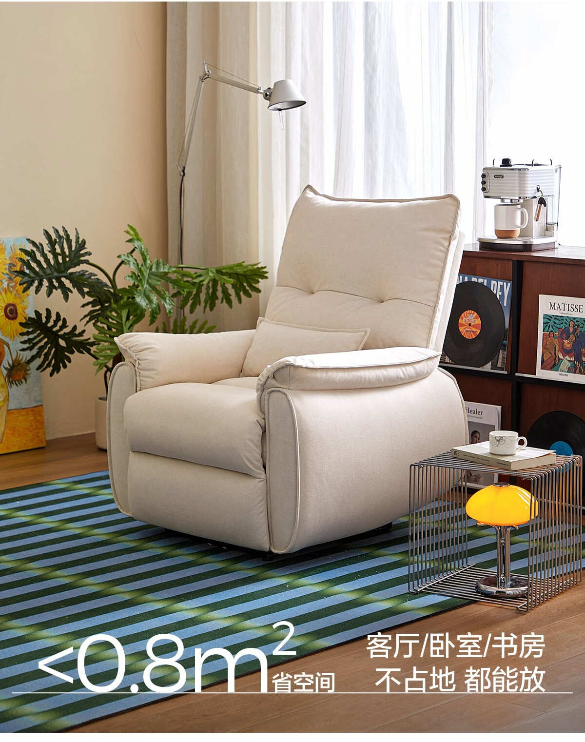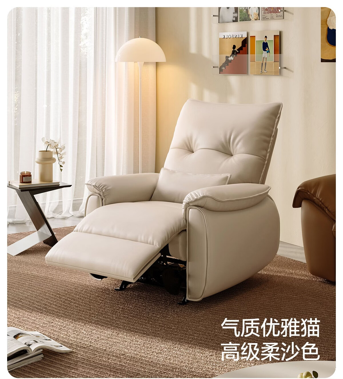 LINSY KIDS林氏家居布艺单人沙发电动多功能客厅摇摇椅懒人沙发椅可躺睡G164 (1)【12防猫抓布|手动躺+手动摇】贝母白