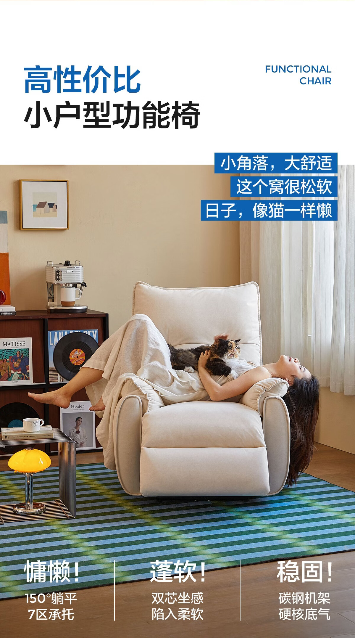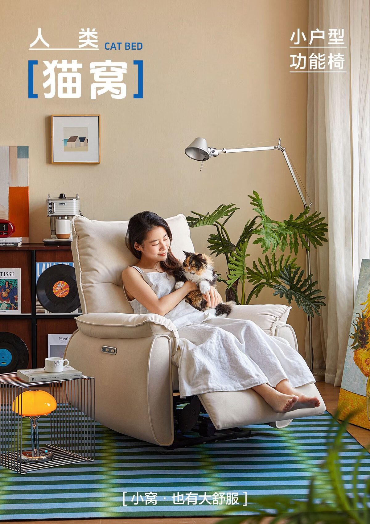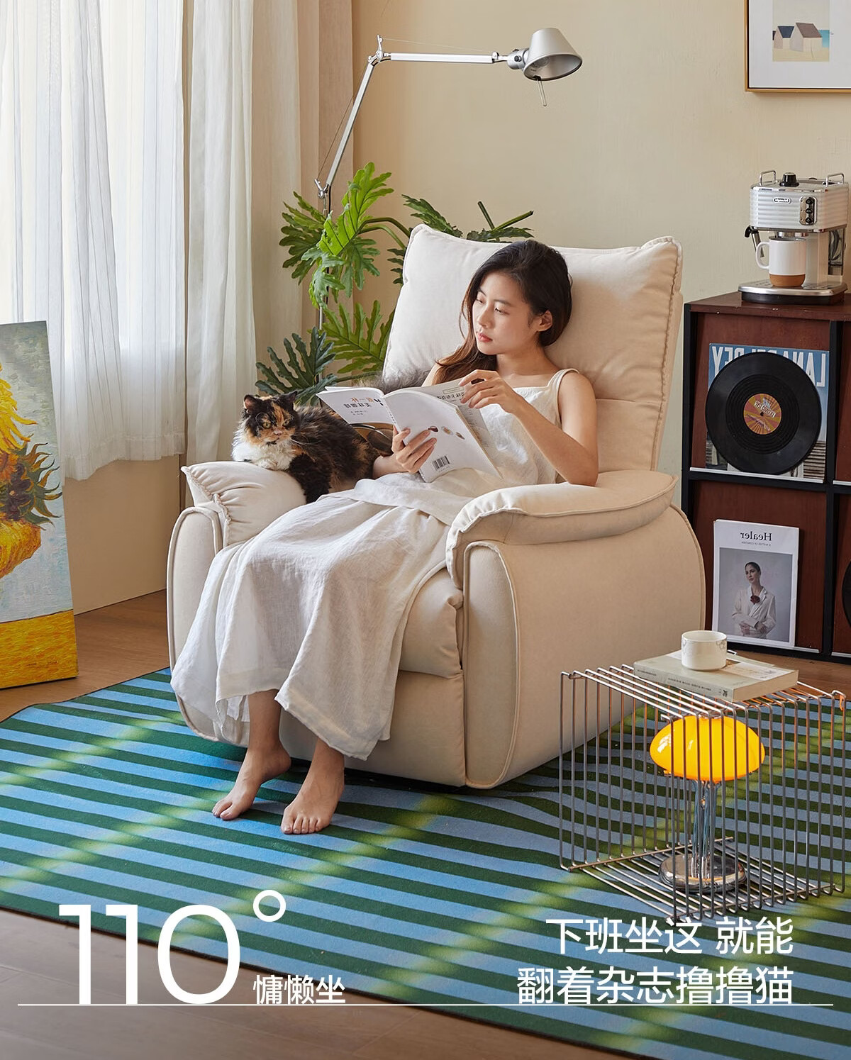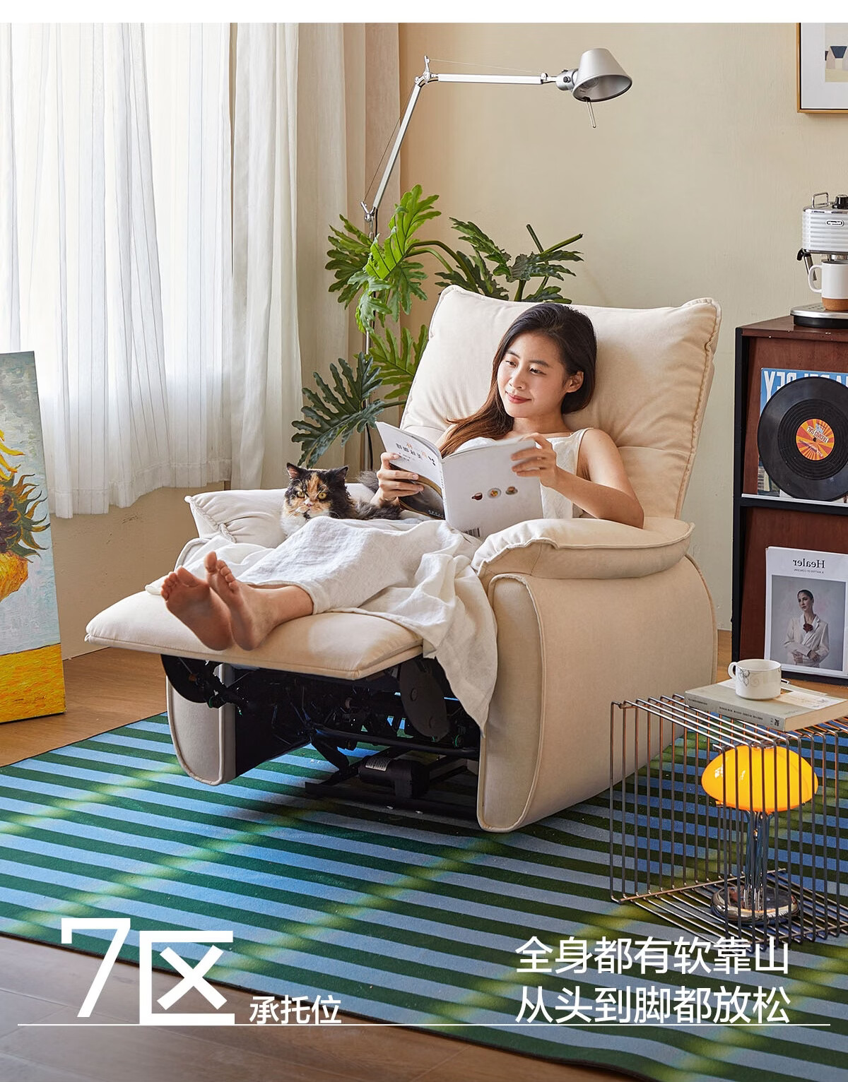 LINSY KIDS林氏家居布艺单人沙发电动多功能客厅摇摇椅懒人沙发椅可躺睡G164 (1)【12防猫抓布|手动躺+手动摇】贝母白