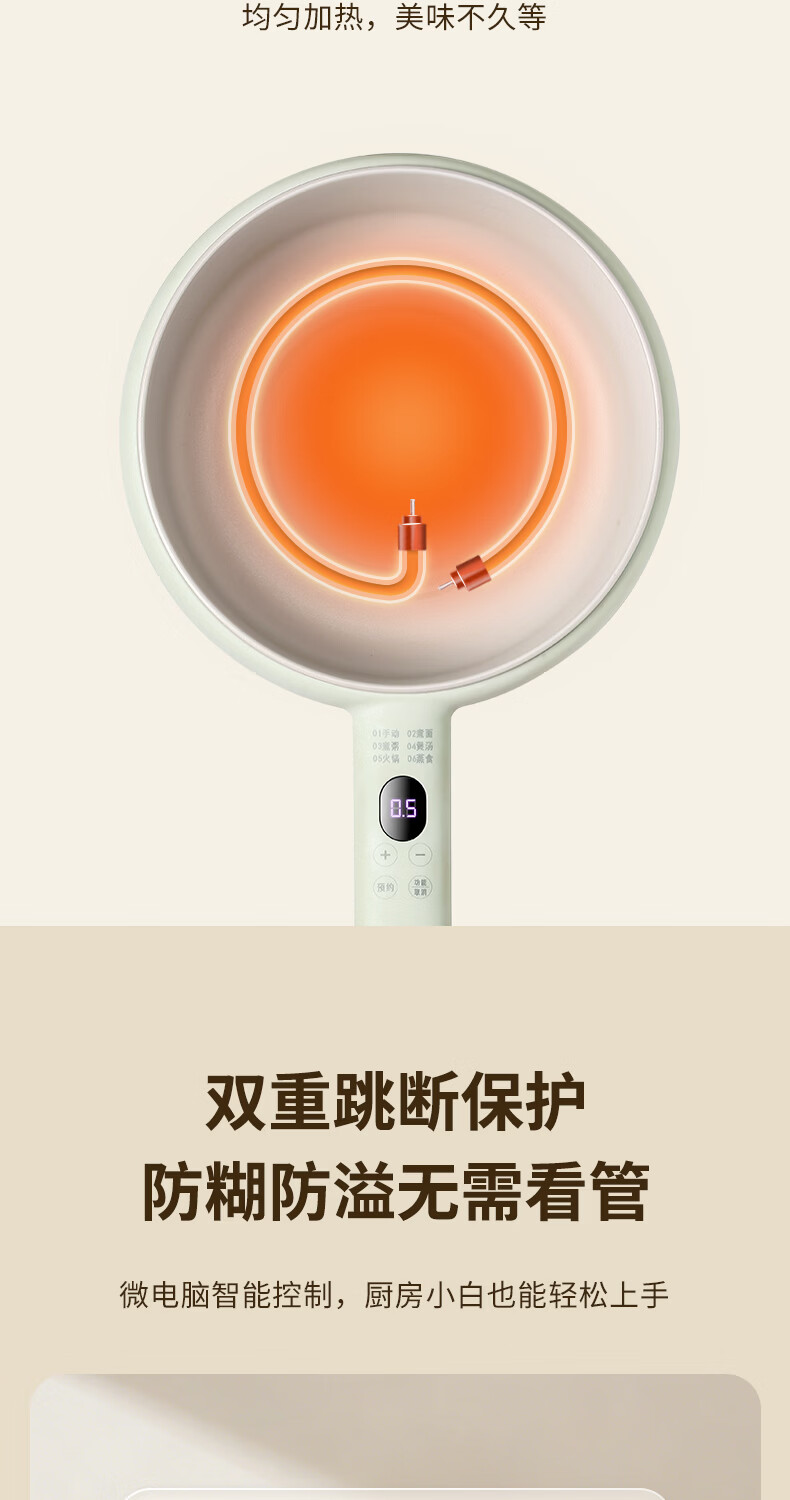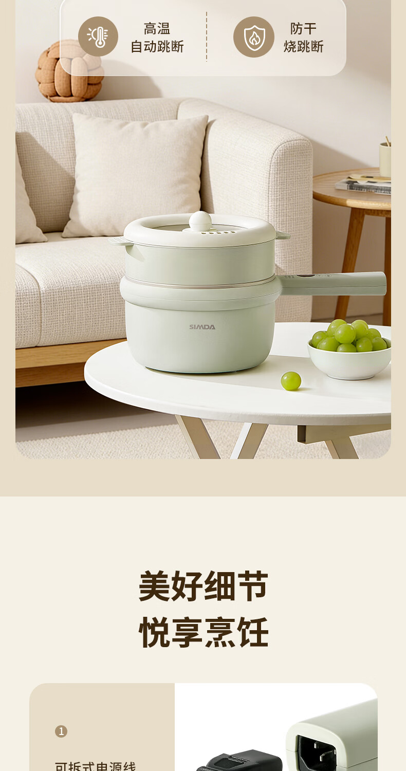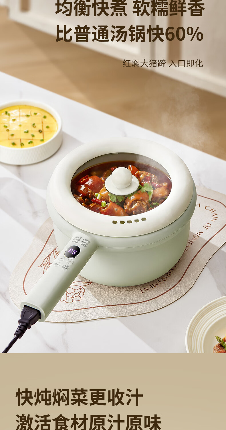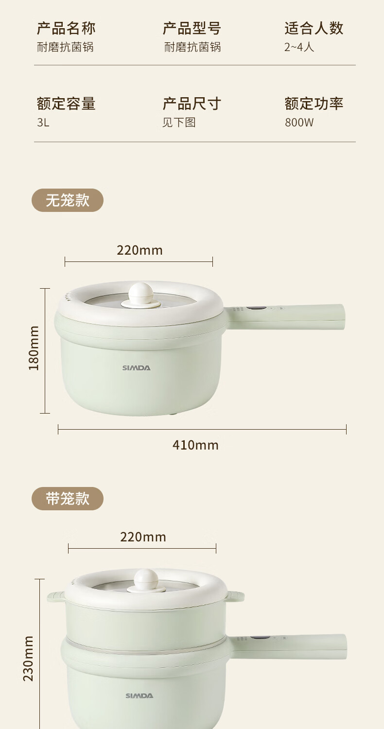 SIMDA斯密达电煮锅2-3人电火锅煎炒蒸煮一体电锅多功能锅珐琅釉电炒锅家用小型不粘锅智能款宝宝辅食锅带蒸笼新款 3L【珐琅釉内胆+12H预约】蒸笼款