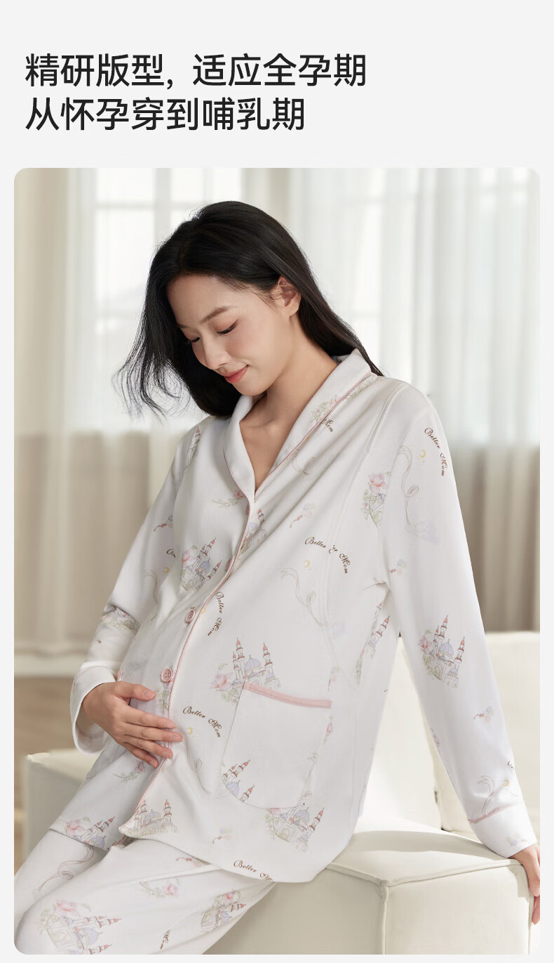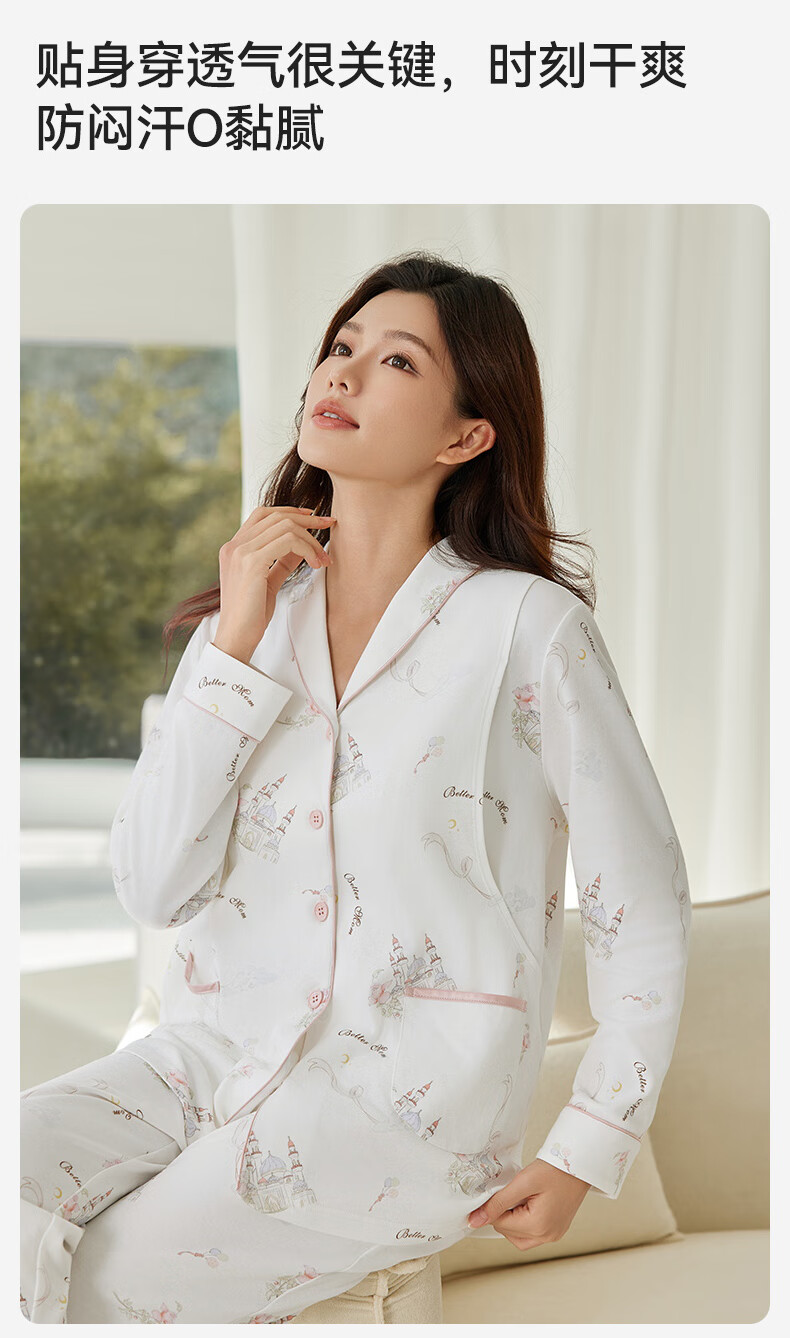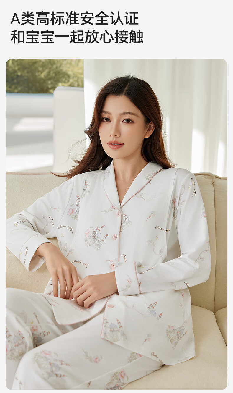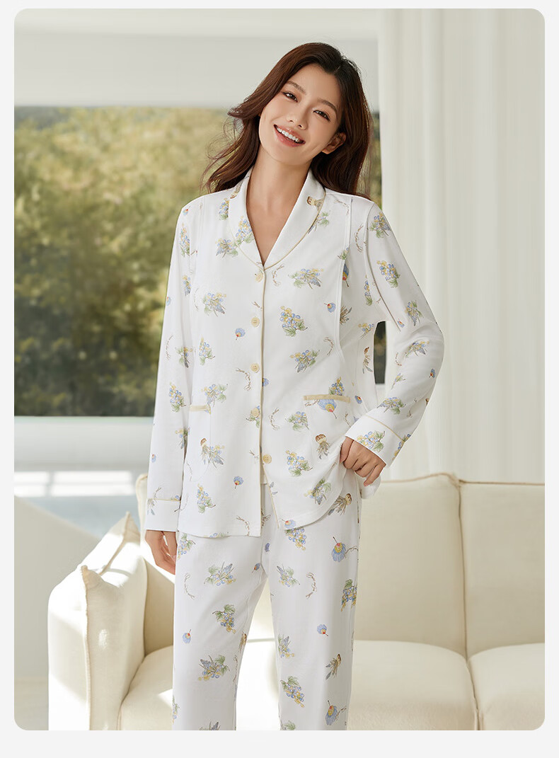 十月结晶月子服孕产妇冬季棉产后哺乳装睡衣家居服套装 玫瑰城堡L码