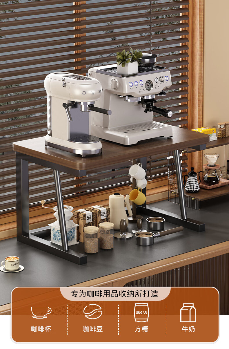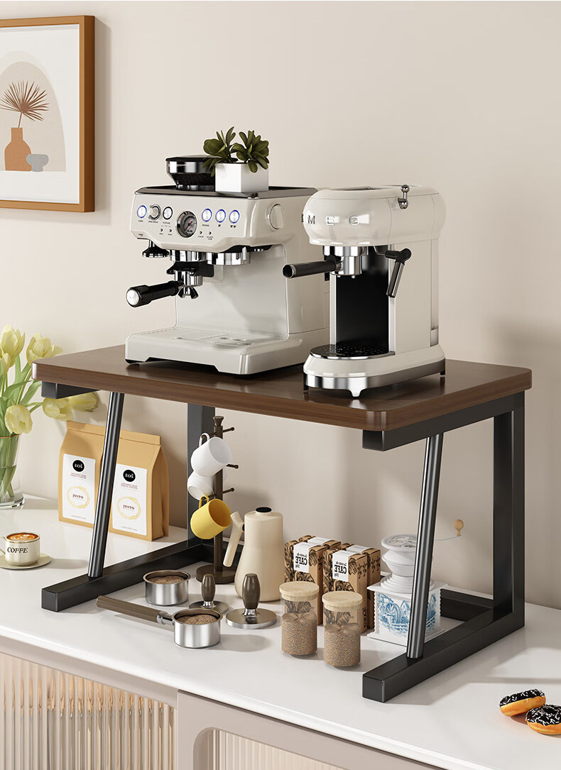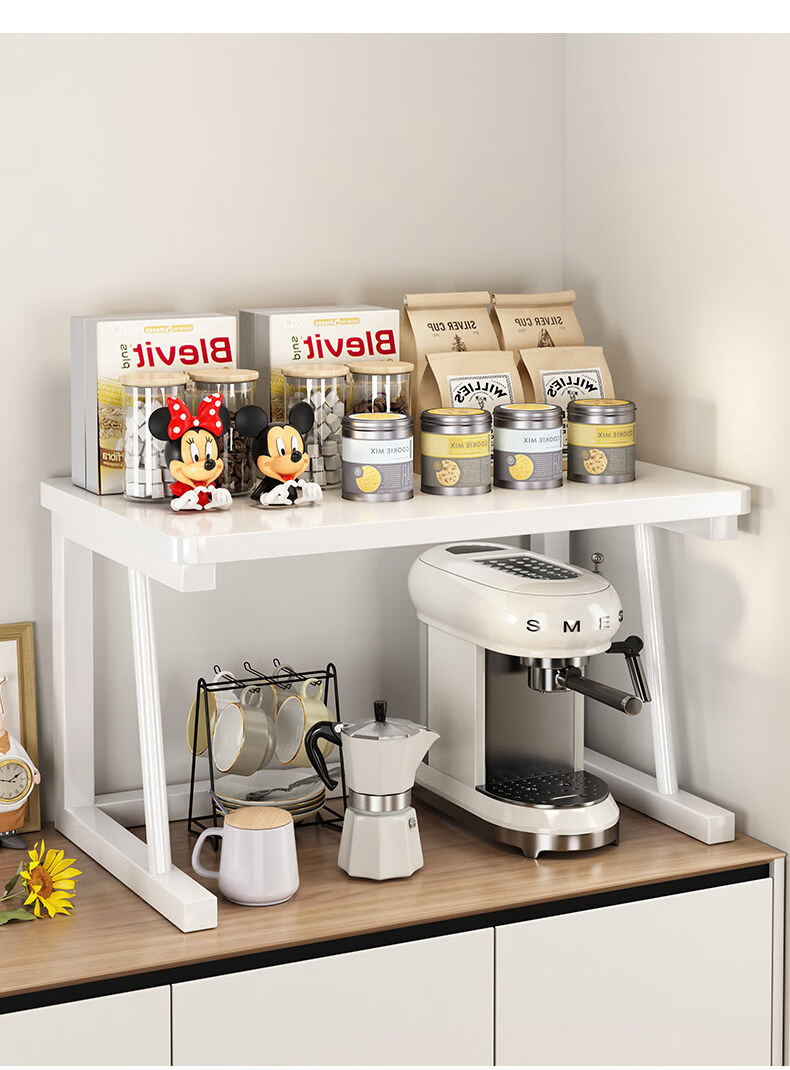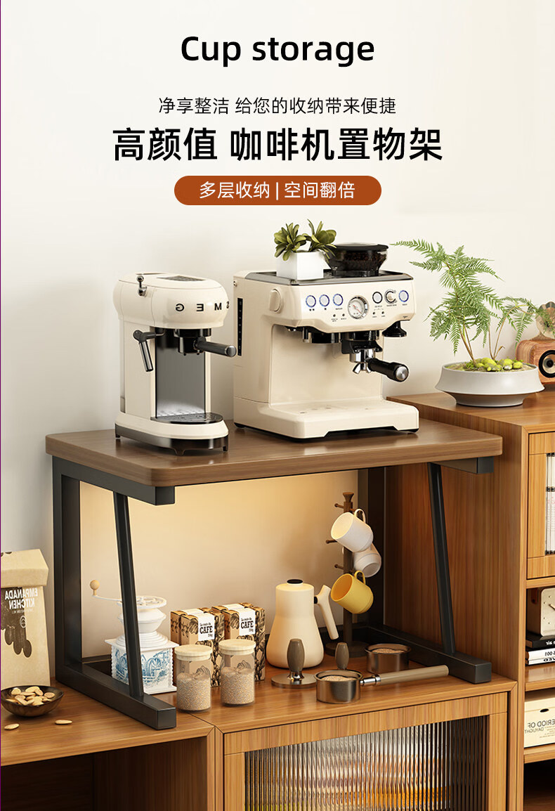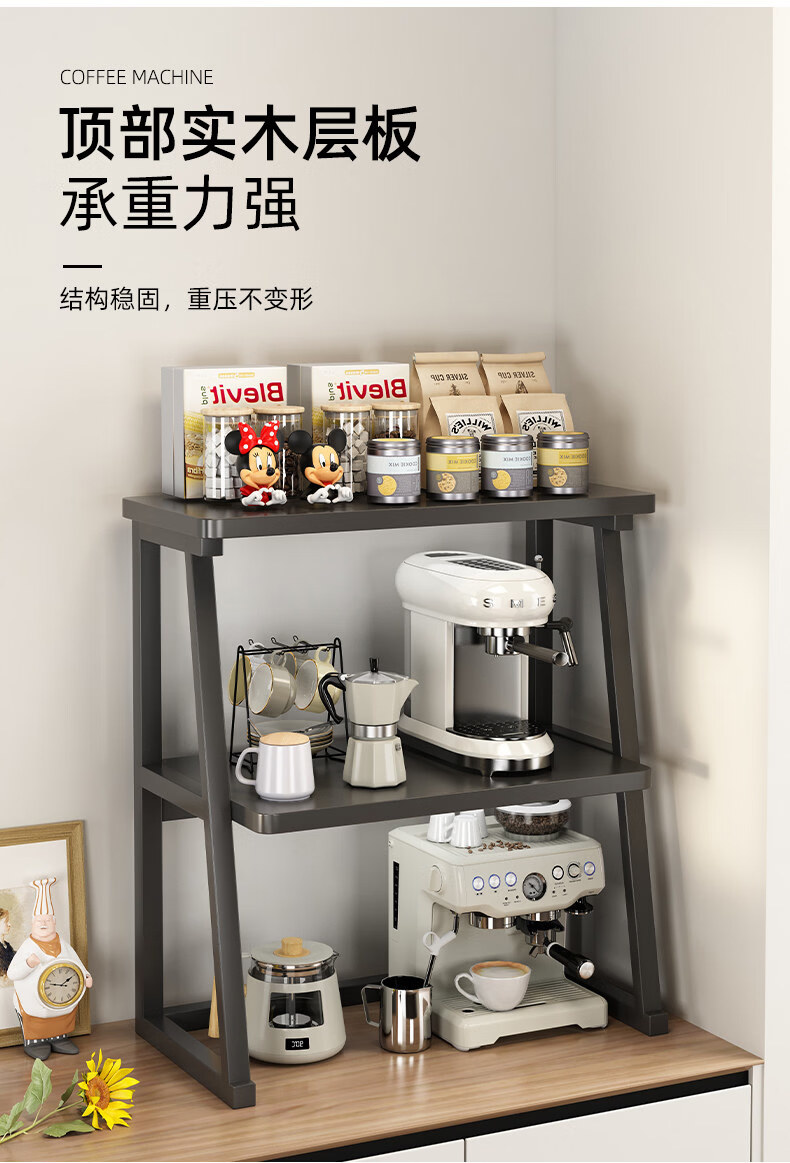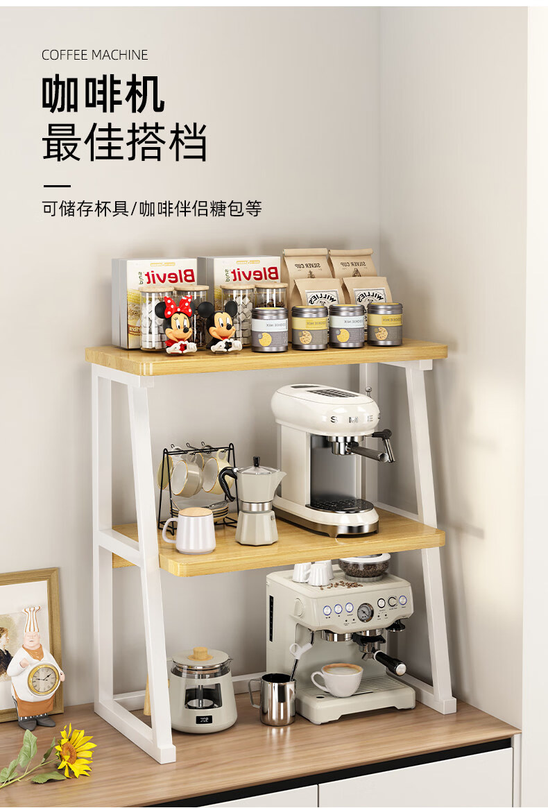 馨婺家台面咖啡机置物架水杯吧台咖啡角茶包马克杯收纳架子厨房微波炉架 原木色-双层白架【标准款】