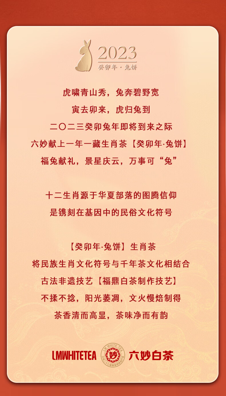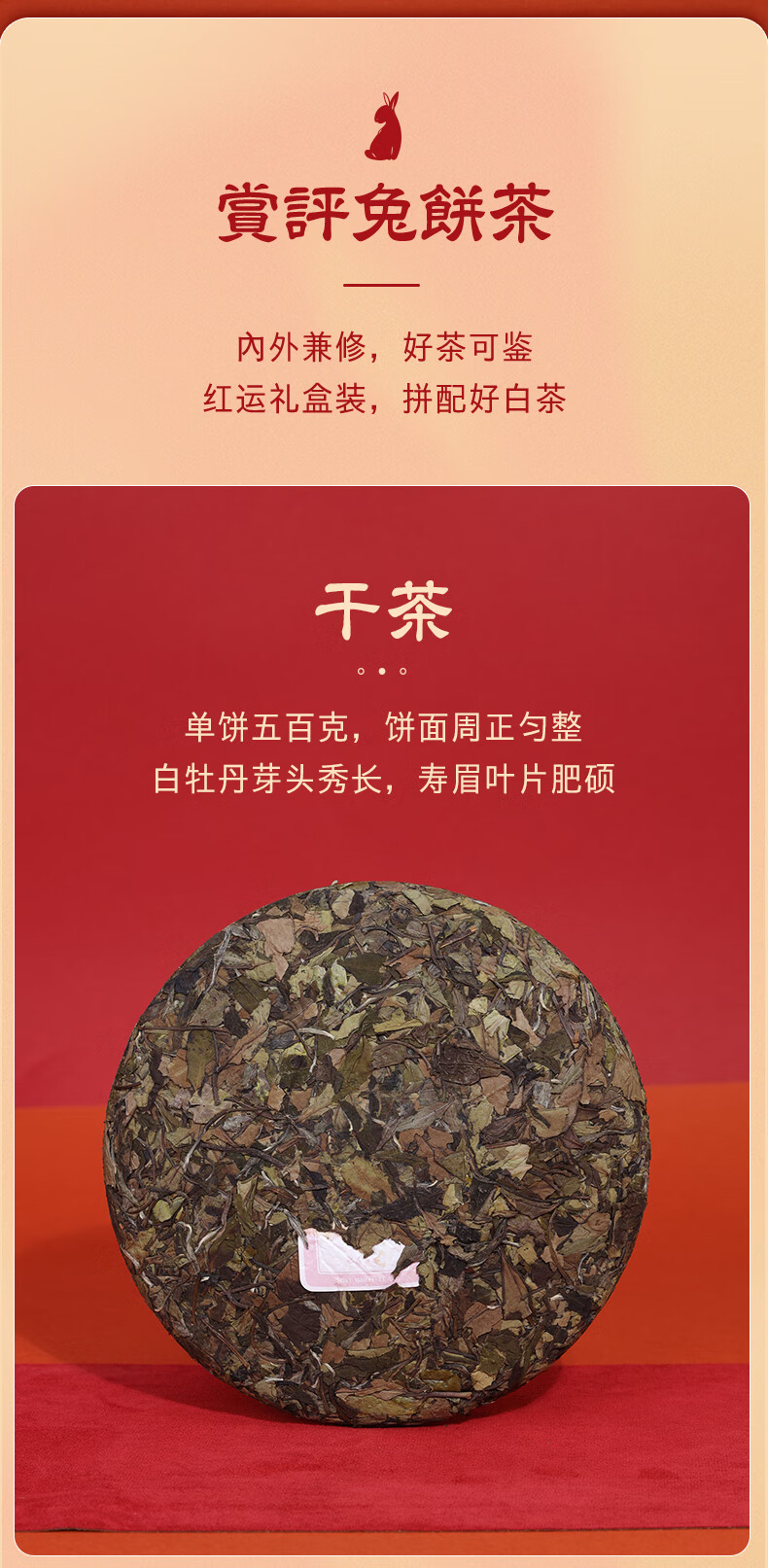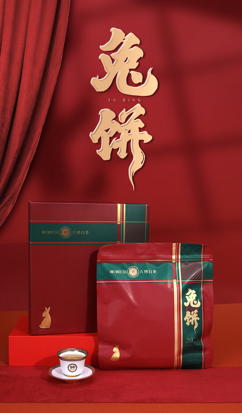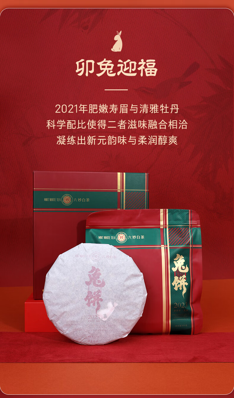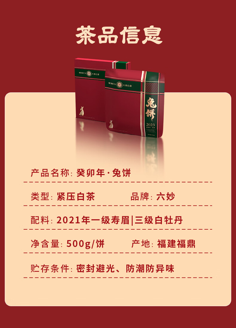 六妙白茶兔饼 2021年福鼎白茶 寿眉白牡丹茶叶年货兔年纪念珍藏礼盒装 500g*1饼